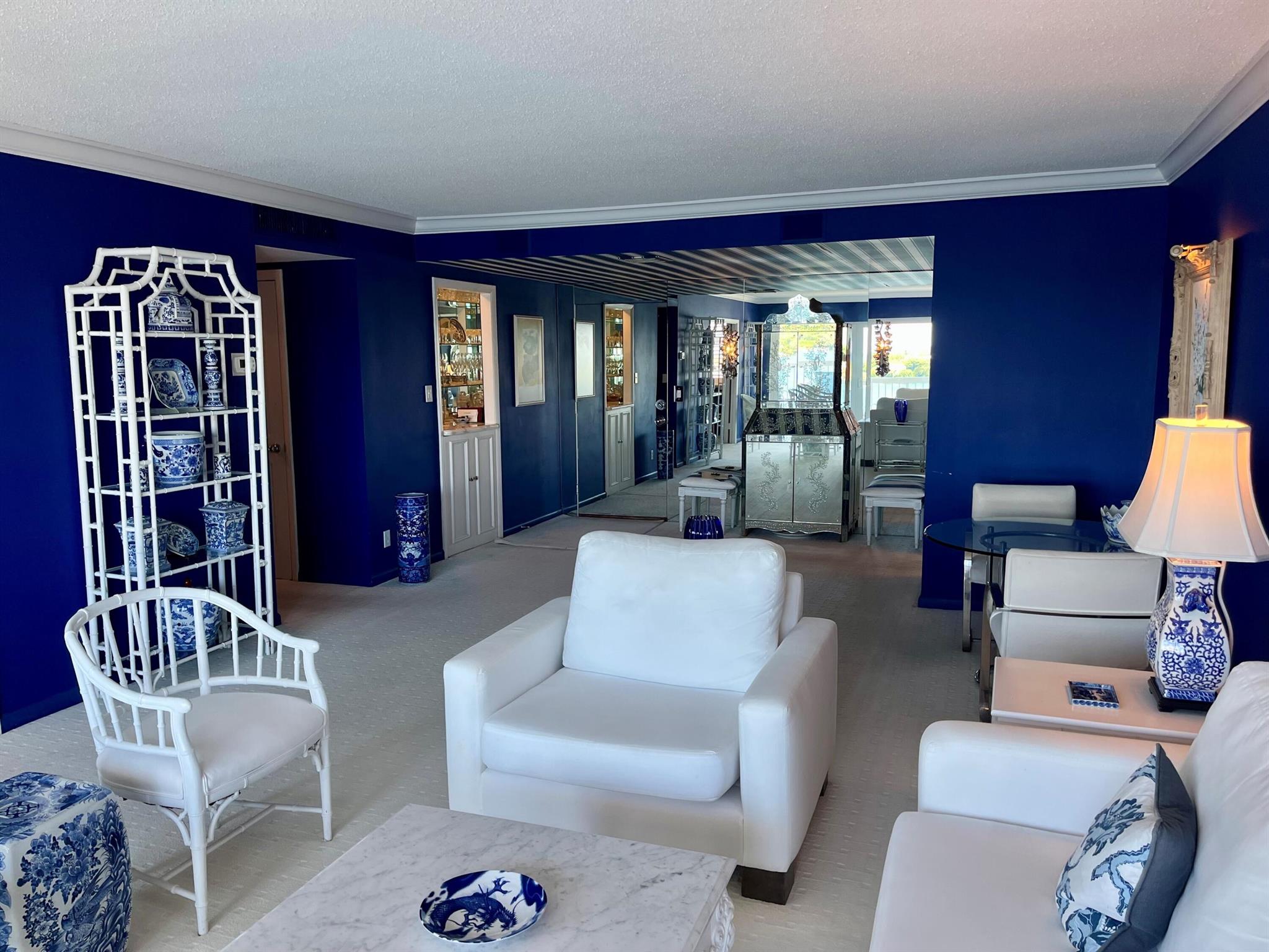 Portofino North Penthouse - A glamorous mid-century modern decorated designed 2 bedroom, 2 bath penthouse (primary has walk in shower/ guest has tub & shower). Located in West Palm Beach directly on the Intracoastal with views of Palm Beach and the Ocean. Watch yacht sail by the terrace. Enjoy the beautiful pool and the security of a gated condominium.