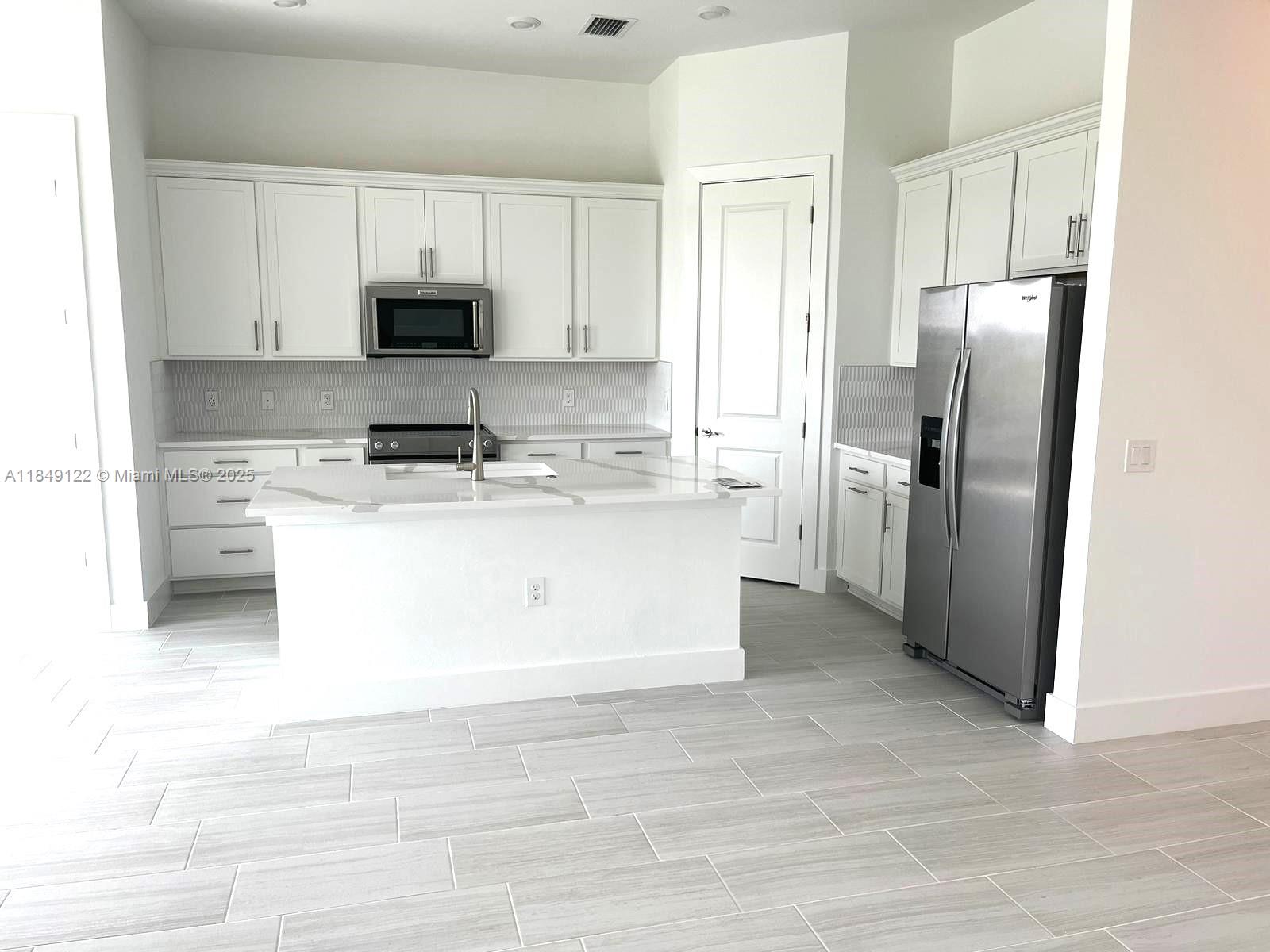 Beautiful single-family home in Ave Maria Florida, with 3 bedrooms and 2 bathrooms, featuring a spacious living and dining area with a screen porch with a view of one of the ponds in Ave Maria, where you can sit and relax. Lovely Kitchen with an island, quartz countertops, and stainless steel appliances Elegant front door, high ceilings, high-efficiency air conditioning system, and an oversized 2-car garage. Ceramic tile flooring throughout the entire home. Very close to the beautiful Water Park and the Town Center.