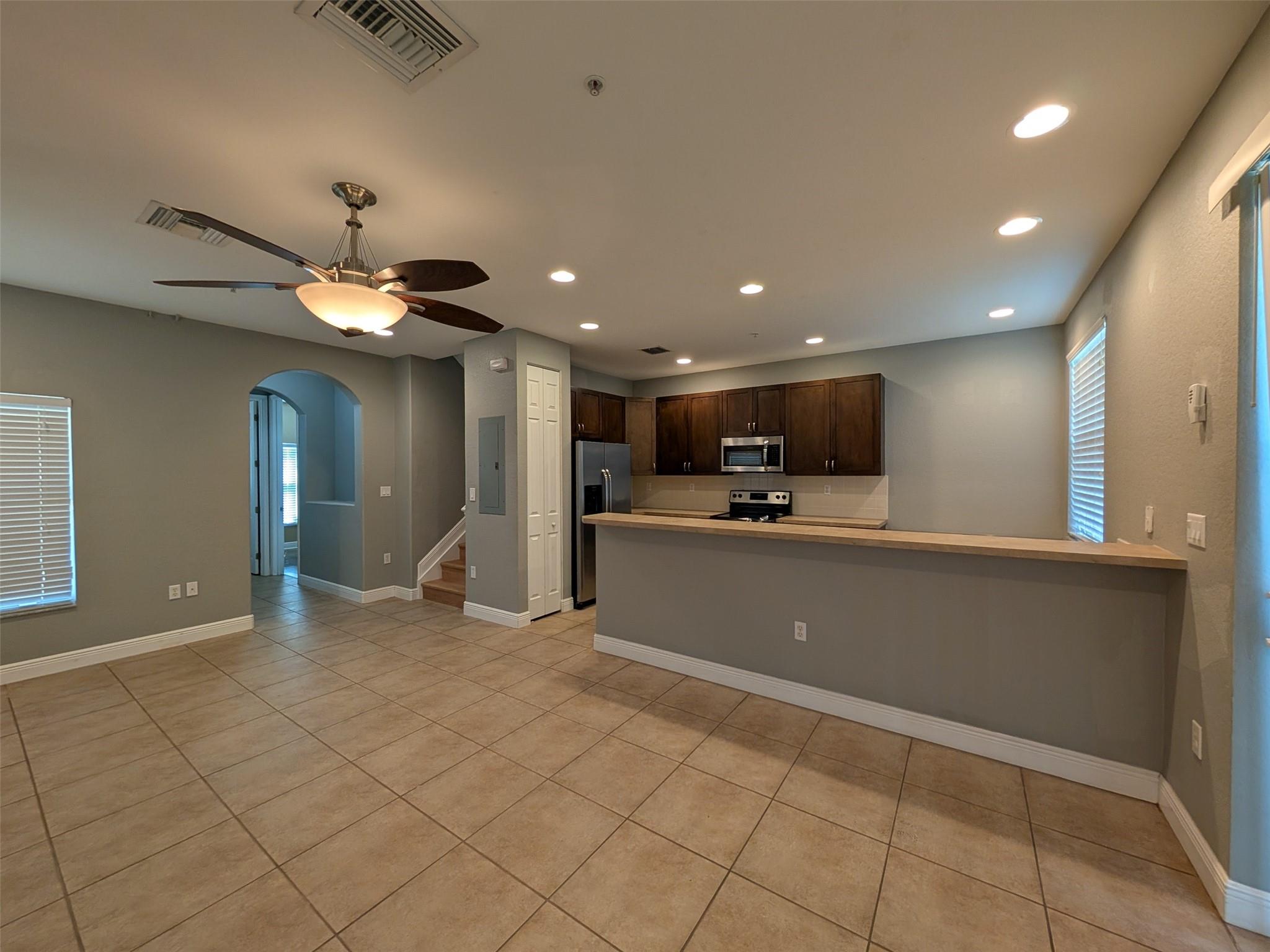 Specious three bedrooms and three full bathrooms, corner town house, One bedroom and one full bathroom first floor. Upgraded kitchen cabinets with stainless steel appliances. Brand new vinyl flooring second floor and stairs. Washer and dryer located in the second floor for your convenience. Gated community. Near shopping, and highways
