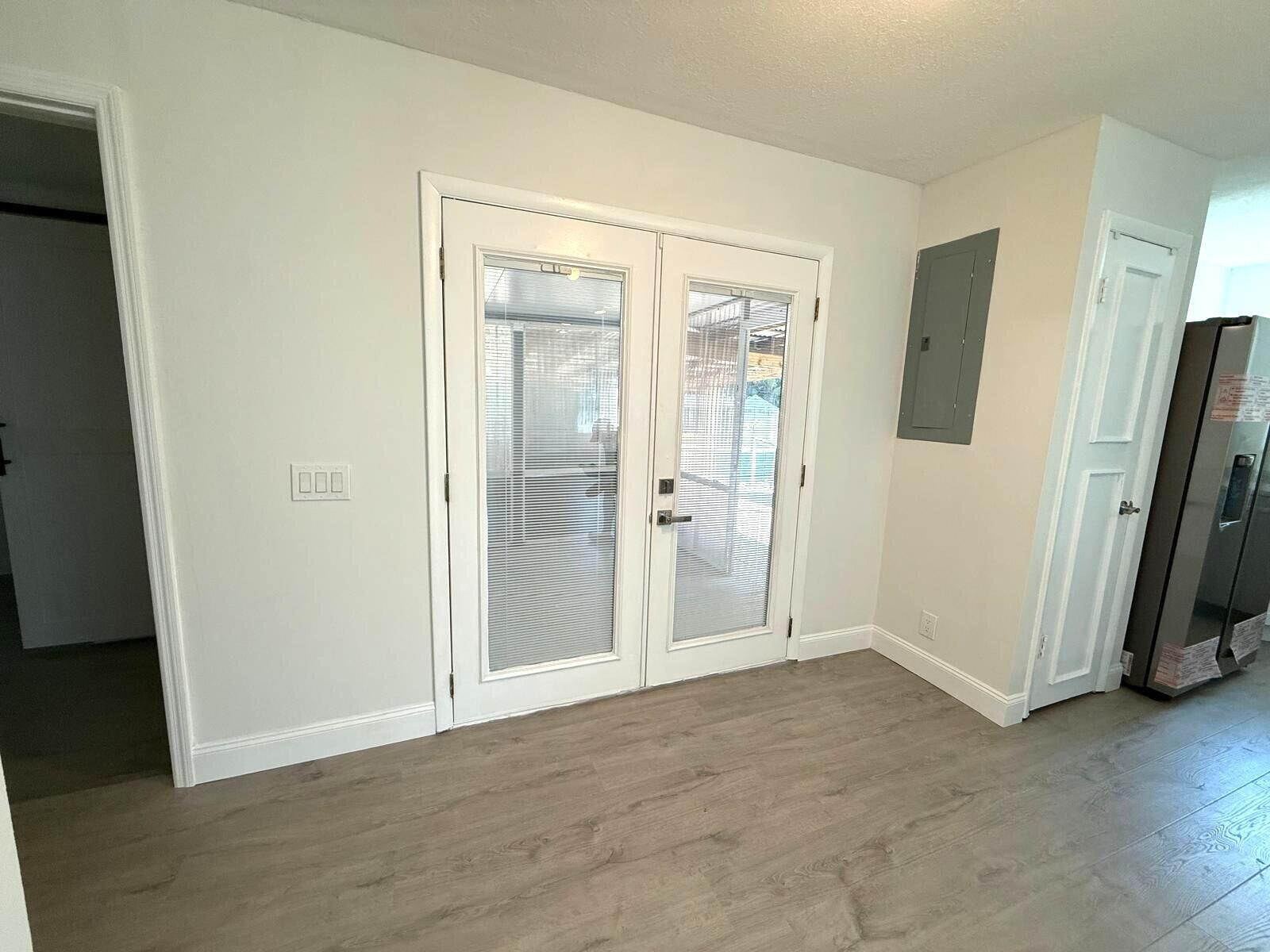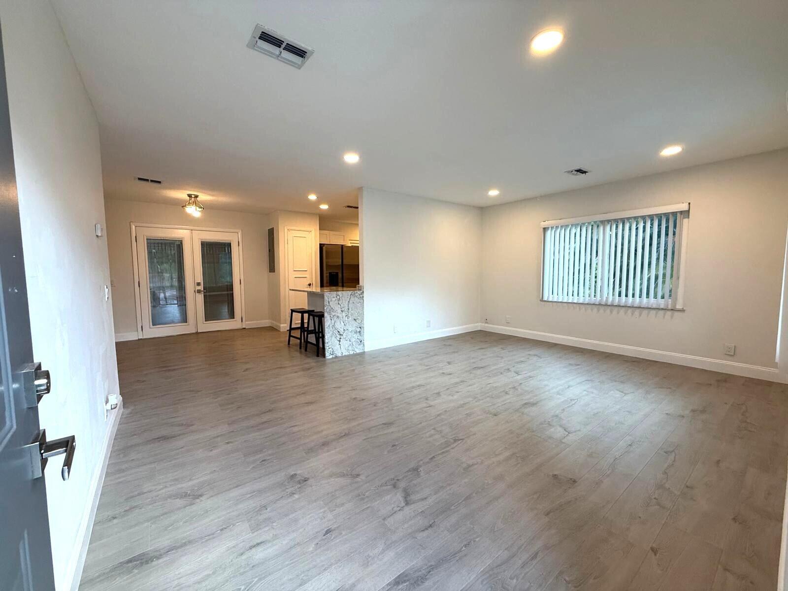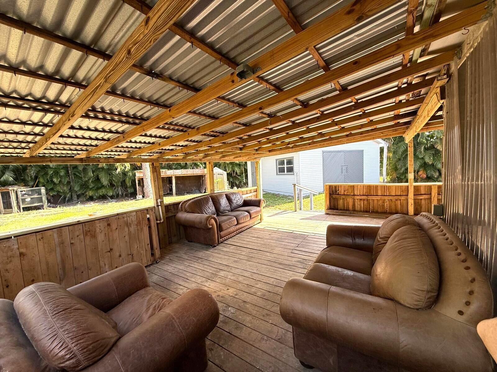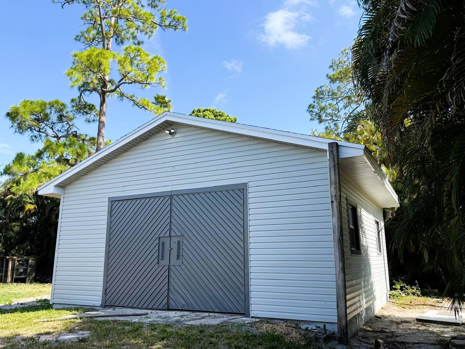 Remodeled 3 Bedroom, 2 Bath Home on Private .43 Acre Lot. New mini split a/c added, for a total 1407 sq ft under air. Enjoy all-new Pergo hybrid flooring, a stunning kitchen with granite countertops, new cabinets & stainless steel appliances, including a side-by-side refrigerator. Primary bedroom has en suite with dual sinks & large walk in closet. Step outside to a massive back patio that overlooks a peaceful yard, mango trees, with no rear neighbors-ideal for relaxing, entertaining, or enjoying nature in privacy. Has enclosed cages for birds, outdoor shed, fire pit. A separate 24x24 garage with 12-foot double doors has ample space for parking, storage & projects. Has electrical & dedicated work area in the back--perfect for a workshop or hobby space. Located at the end of a paved rd