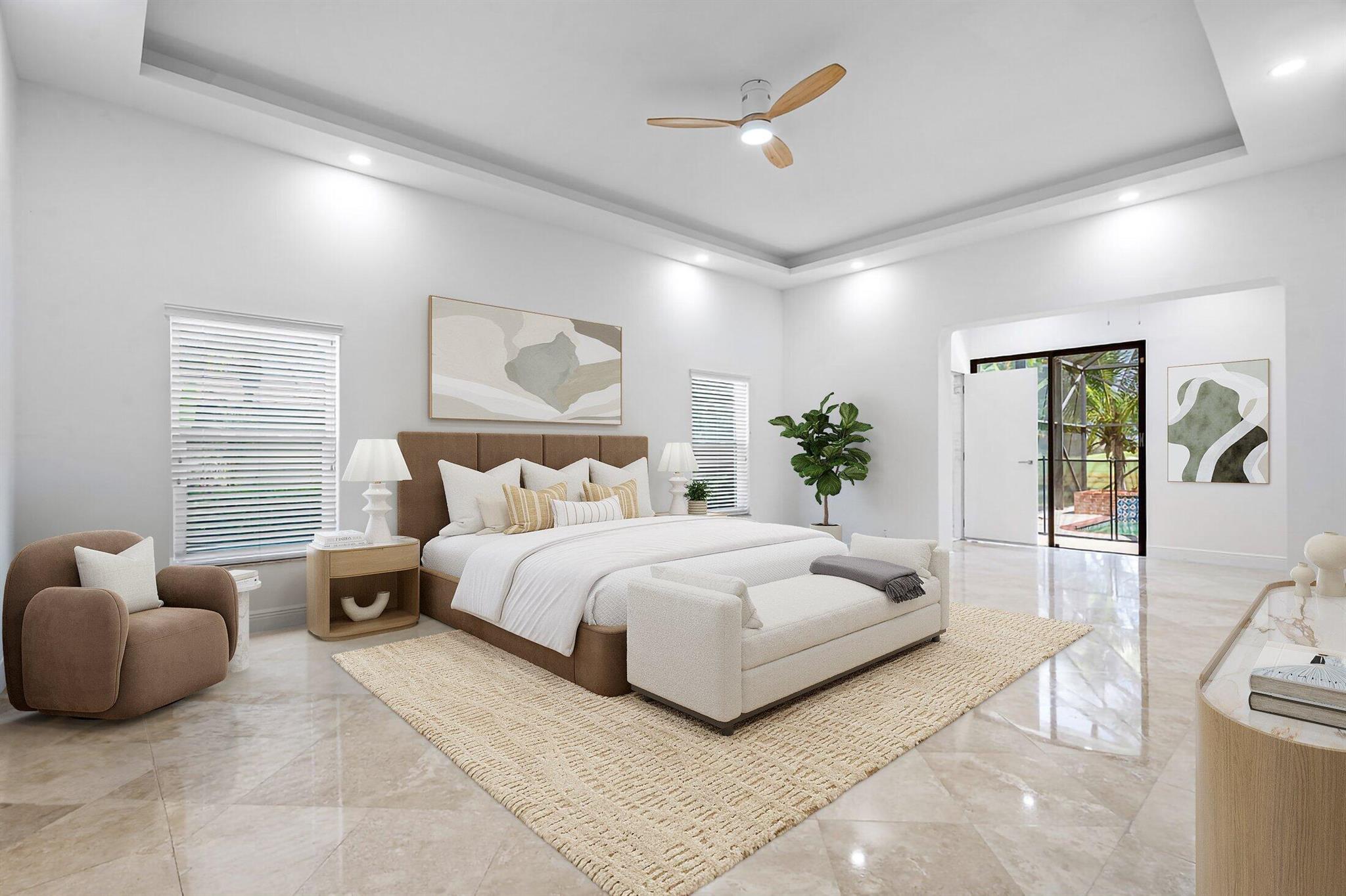Beautifully renovated 3-bedroom, 3.5-bath home showcasing stunning golf and water views. Enjoy the private, screen-enclosed pool and spacious open floor plan--ideal for relaxing or entertaining. Includes FULL GOLF membership. Boca Woods is an all age Country Club Community which offers resort style amenities, including two championship golf courses, Har Tru tennis courts, pickleball courts, state of the art fitness center, spa, game room, fully renovated clubhouse with fine dining and much more! Don't miss this incredible opportunity! Owner prefers an annual lease but will consider a seasonal rental.