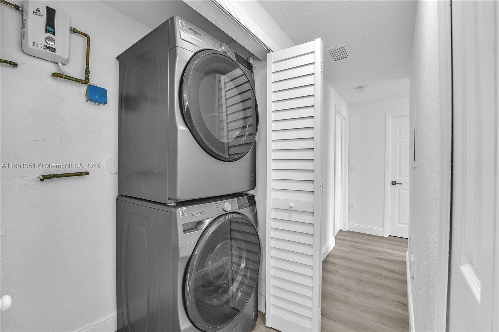 MOVE IN WITH FIRST MONTH ONLY! Corner condo with the feel of a townhome in Tropical Landings with Lake views and natural light. Features a brand new washer/dryer, stovetop/ oven. Open, airy living room, plus a patio on the first floor with storage shed and balcony on the second. Shutter panels included. Enjoy a spacious green park and serene lake right in your backyard. Two parking spots included. Move-in ready.
