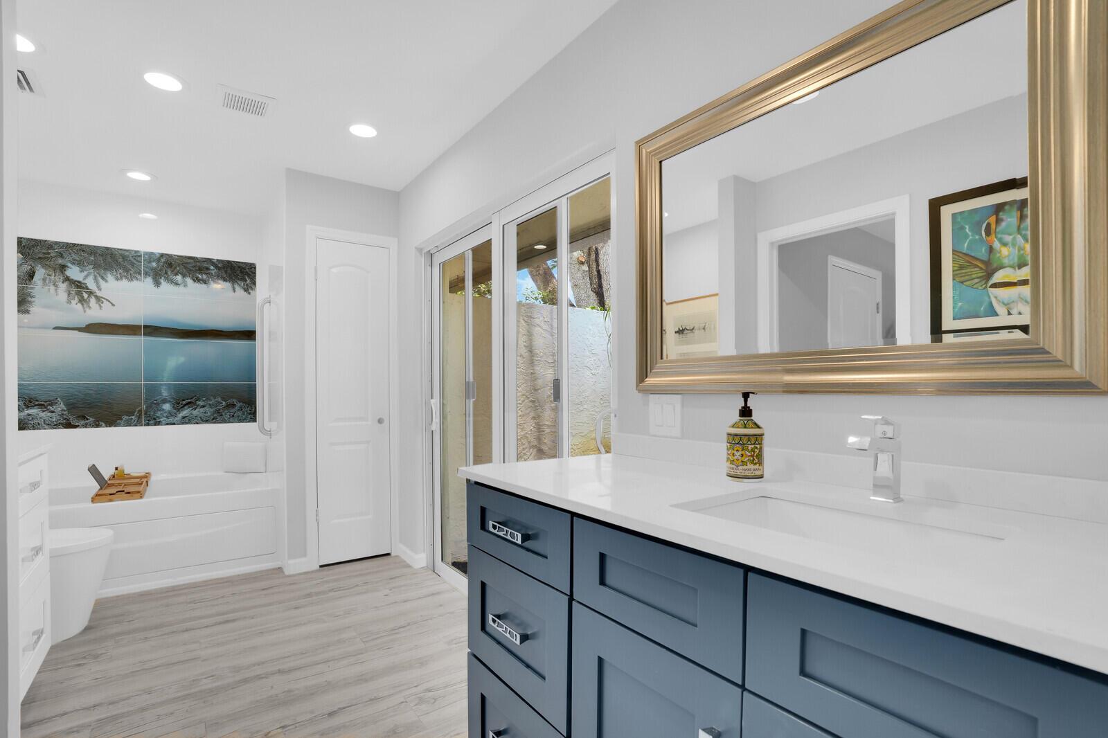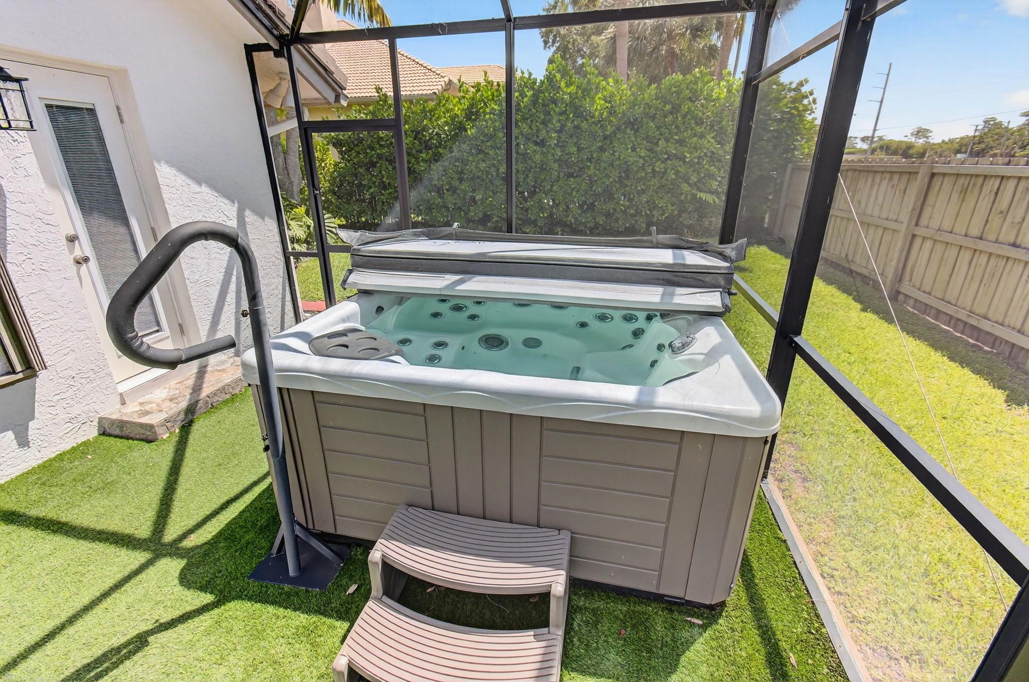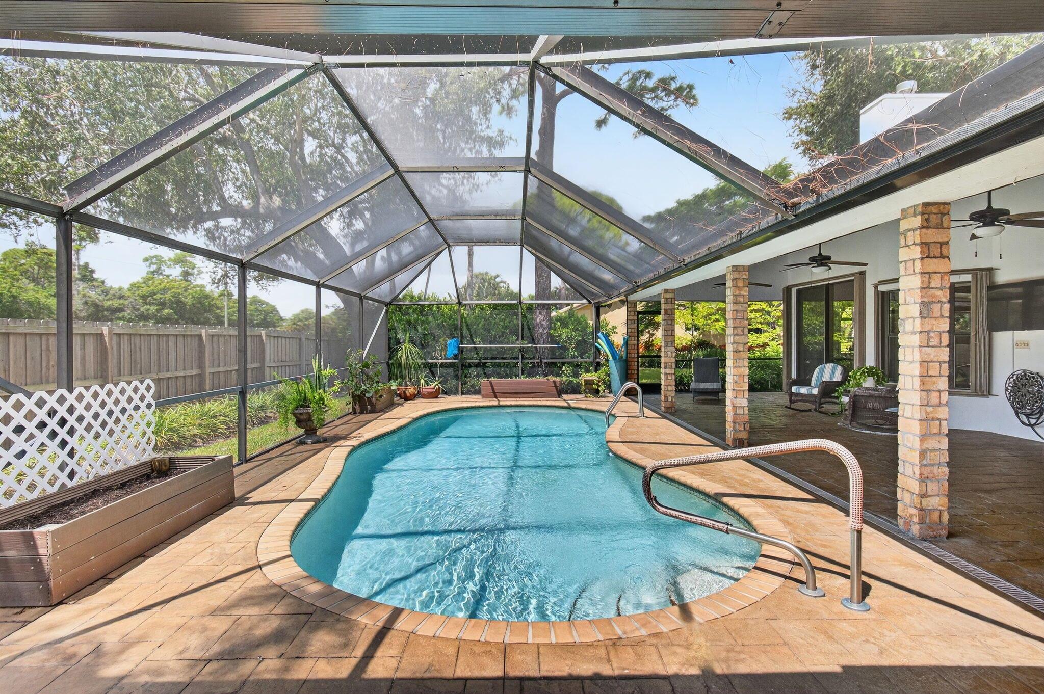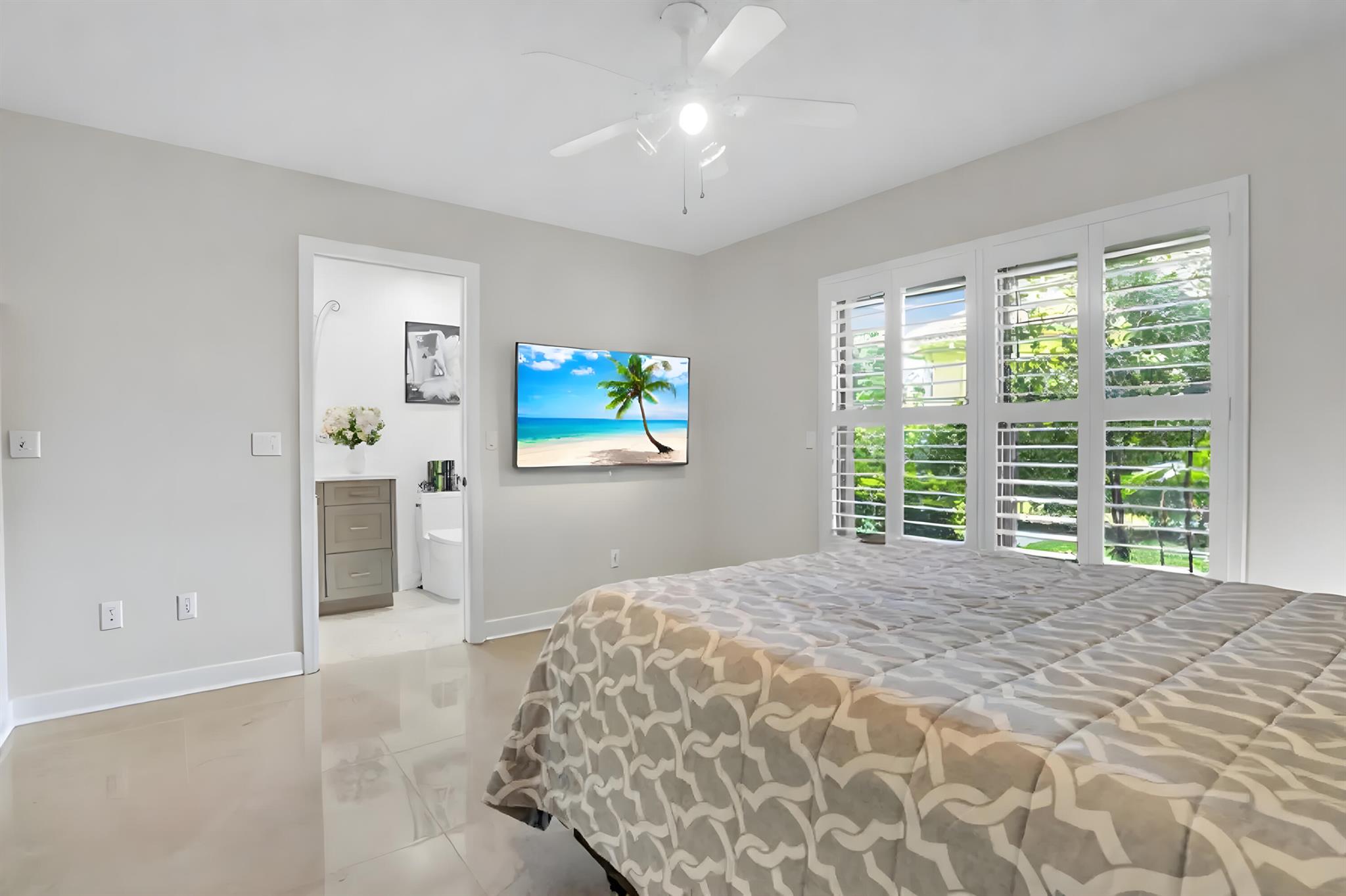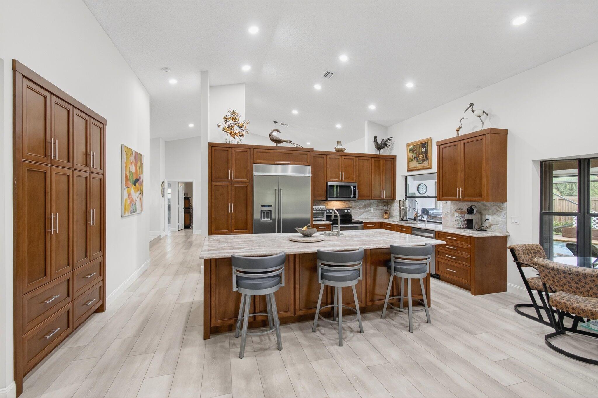 All age community! Welcome to 4256 Gleneagles Drive, a stunning, Mediterranean style 1-story residence nestled in the prestigious Pine Tree community, one of Boynton Beach's best-kept secrets! Step through the elegant double glass doors & into a spacious 4-bedroom, 4-bath home that has been thoughtfully renovated with style & functionality in mind. Newer Roof (2021), A/C units (2019), Hot Water Heaters (2021). The beautifully updated kitchen is a chef's dream, featuring high-end cabinetry, large island with prep sink, pull-out drawers, quartz countertops, a double oven, a sub-zero-style refrigerator, and an enlarged pass-thru window to the patio, seamlessly flowing into the great room with a wood burning fireplace. A custom built-in pantry adds the perfect finishing touch. The main living