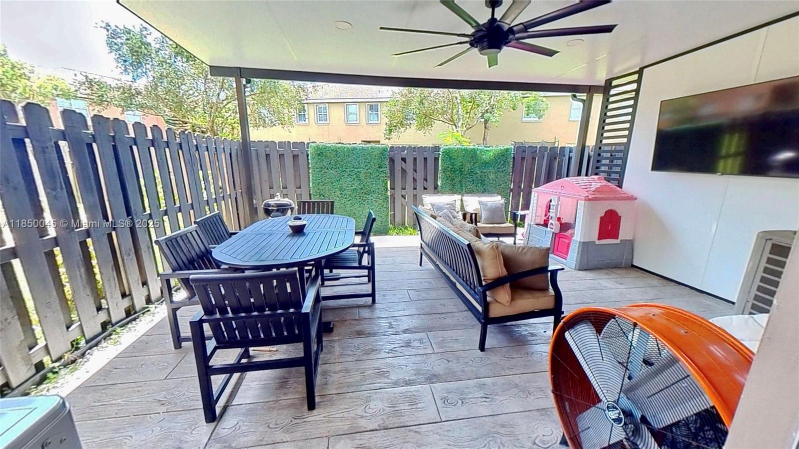 ONLY 2 MONTHS MOVE-IN! Don’t miss your chance to live in this beautifully updated 3-bedroom, 3-full bath townhome in safe gated community. Welcoming bright foyer flows into an open dining area, sleek modern kitchen with quartz countertops & custom bar. Spacious living area with tiled floors, full bath, ambient lighting, & private fenced patio with fan, ideal for relaxing & entertaining. Upstairs convenient laundry room, built-in desk nook, full bath & bedrooms - primary has 2 walk-in closets & en-suite bathroom with double sinks & a soaking tub. Hurricane shutters, 1-car garage + 2 private parking spaces, & ample storage. Enjoy community pool, gym, clubhouse, playground, dog park, & BBQ area. Just minutes from schools, shopping, Baptist Hospital, & Turnpike. Vouchers welcome. Call today!