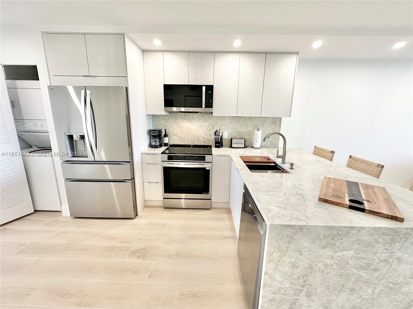 Beautifully renovated condo, a short walk to the beach and the heated pool! All NEW flooring, bathroom tile and fixtures, kitchen and bathroom cabinetry, countertop, appliances, furnishings, and more! Available for season and off-season months. This unit is located on the second floor with an elevator or stairway, only a couple steps from the door. This lovely condo accommodates six guests featuring two bedrooms, each with king beds (one bedroom can be set up with twin beds instead, upon request) and a living room sofa that pulls out to a queen bed. Enjoy an open concept with a brand new kitchen, living area with a smart TV and electric fireplace beneath it, and dining overlooking Jupiter Bay's tranquil lake.