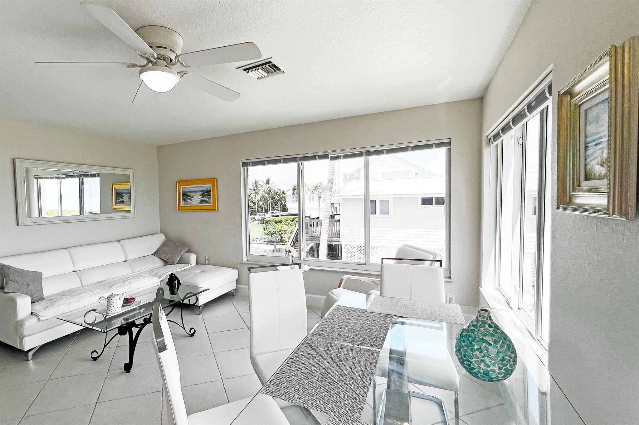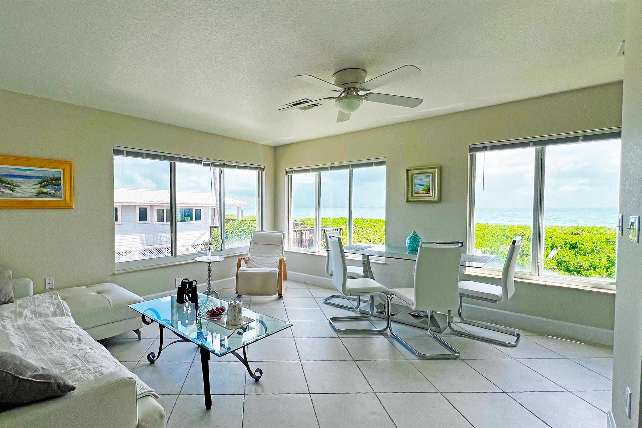 Available for seasonal lease beginning October 17, 2025 (minimum 90 days), with the option for extended or annual terms. Where Morning Walks Meet Ocean Waves - Perched along the unspoiled shores of Hutchinson Island, this charming, tropical hideaway captures the very essence of Florida's coastal living. Awash in sunshine and sea breezes, the apartment faces the glittering Atlantic--so close, it feels as if the ocean is your own backyard. Each morning invites you to step outside and wander for miles along powder-soft sands, letting the rhythm of the waves set the pace for your day. Blending laid-back island charm with refined comfort, this newly refreshed oceanfront residence offers a rare chance to call one of Jensen Beach's most coveted stretches of coastline your own.