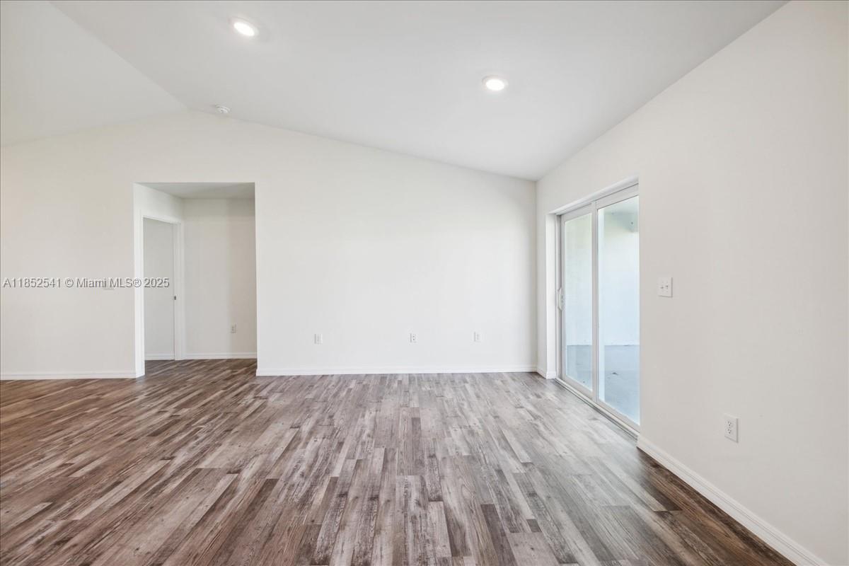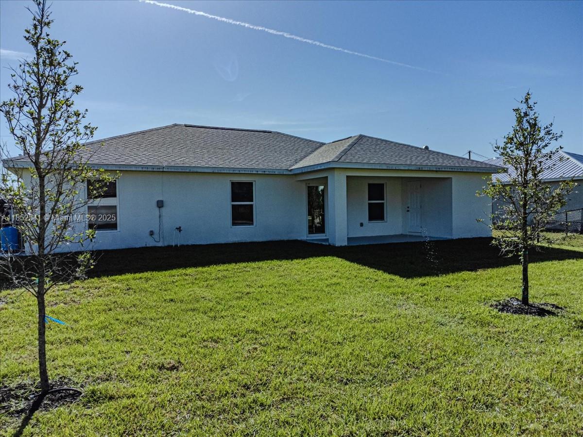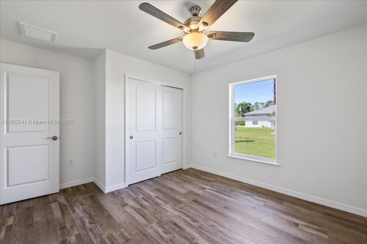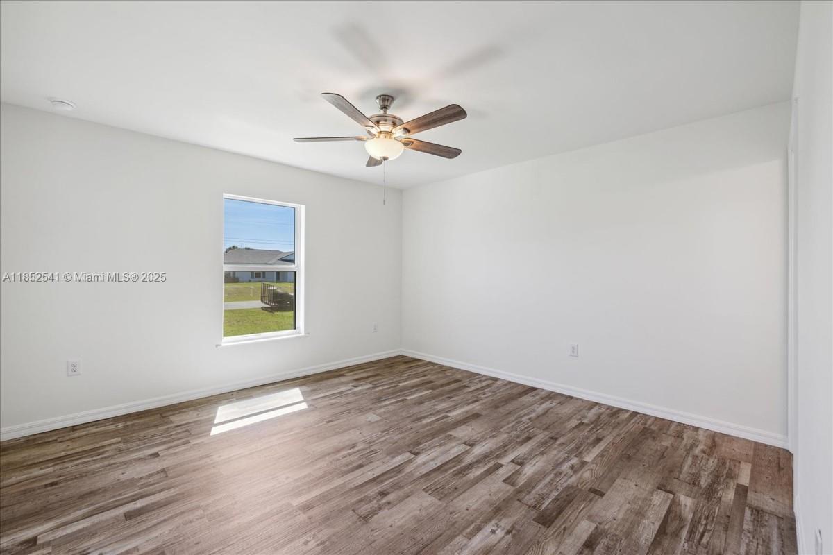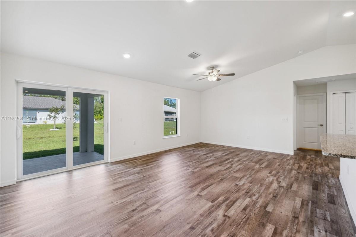 Move-in ready!!! This stunning property features 4 bedrooms and 3 full bathrooms, boasting not one but two master suites! The expansive layout with a vaulted ceiling offers an ideal setting for entertaining. Enjoy the elegance of high-end shaker cabinets in the kitchen, complemented by plank flooring throughout. Stainless steel appliances add a touch of sophistication. Step out to a generous covered lanai overlooking the spacious backyard. Plus, benefit from a full irrigation system and the convenience of impact doors and windows, eliminating the need for shutters.