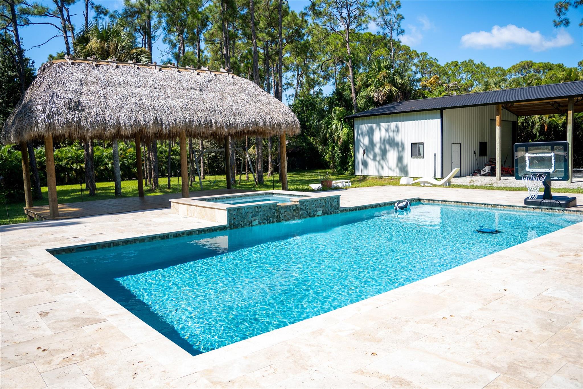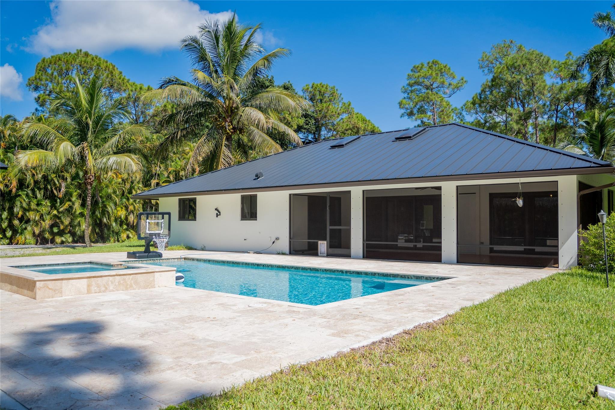 NEW PICTURES!... Experience Florida living at its finest in this fully renovated home on a quiet paved road. The private backyard oasis features a new pool & hot tub, spacious tiki hut, and a pole barn with enclosed storage—ideal for entertaining, relaxing, or storing your toys. Enjoy peace of mind year-round with a whole-home generator, impact windows & doors, and a metal roof. Inside offers modern finishes, new appliances, and a whole-home RO water system. A large concrete driveway and irrigated landscaping complete this rare Jupiter Farms rental!