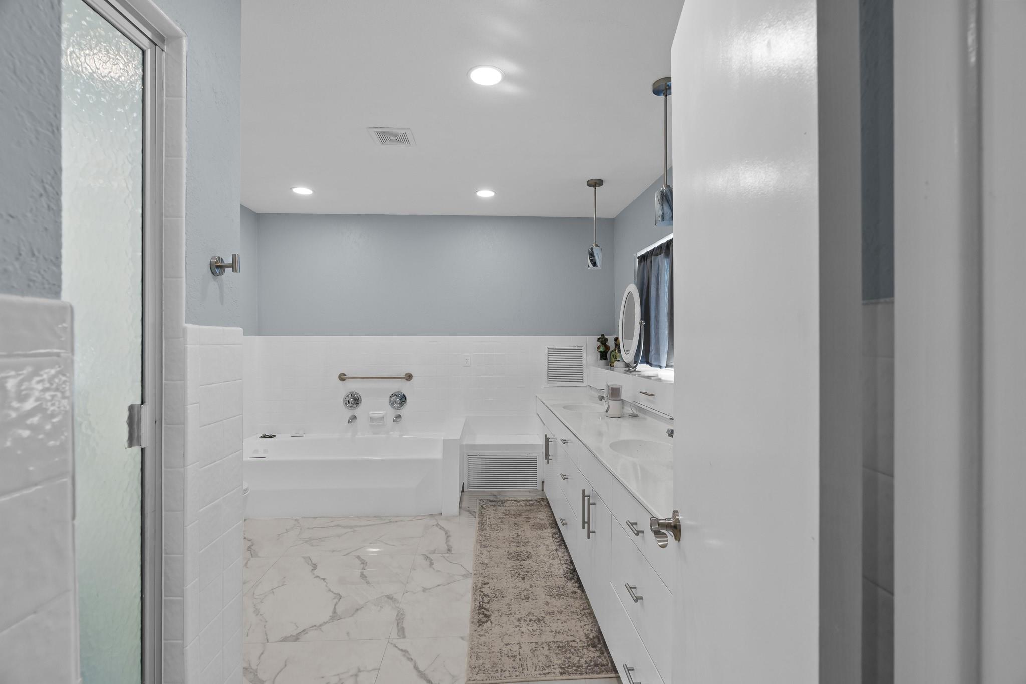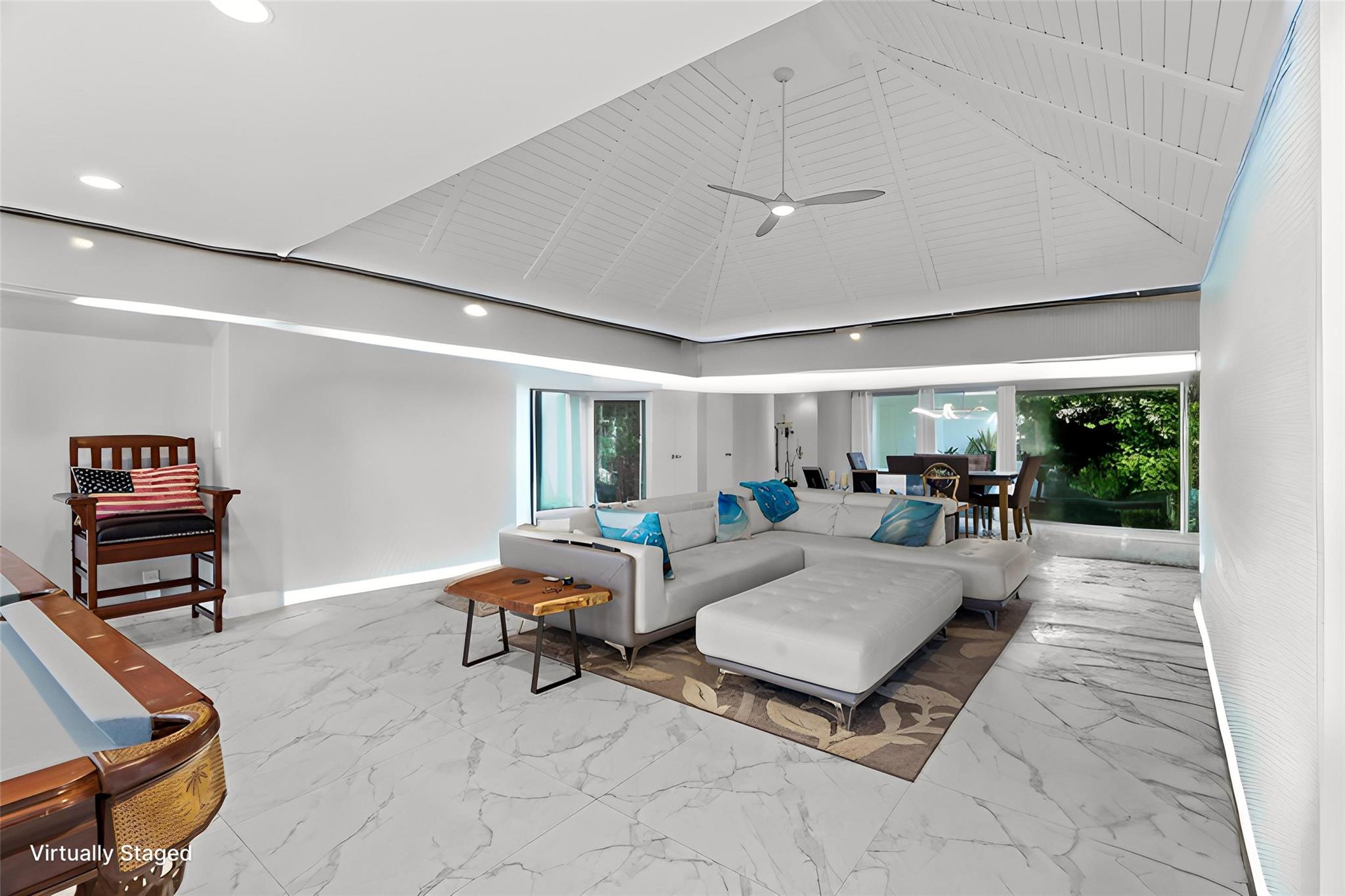 MID-CENTURY meets MODERN! This unique architectural design allows for so much natural light. Interior remodel includes 24X24 MARBLE TILE throughout, NEW KITCHEN with white shaker cabinets, SS appliances and quartz countertop/waterfall, freshly painted inside and out, Wi-Fi Smart System, updated electric, roof (2019). Split floor pan. 2 zone A/C. Open concept GREAT ROOM includes, living room, game room and formal dining room that all flow into the kitchen and screened lanai. This home is GREAT FOR ENTERTAINING! But wait, there is more - unique 4 CAR GARAGE makes for a great 800 sq. ft. "man cave", plus two driveways. Pets will be considered on a case by case basis. This home is also listed for sale MLS F10518067.