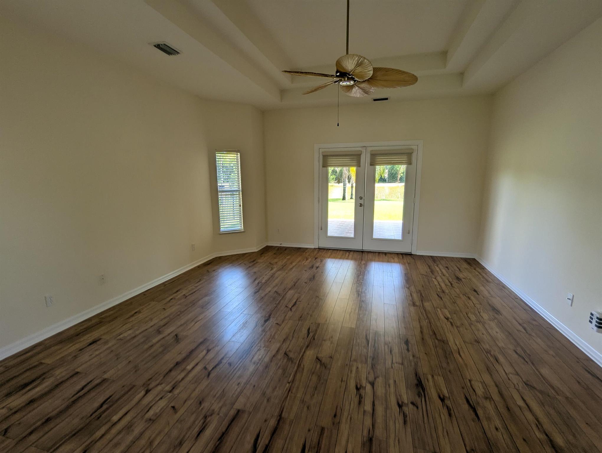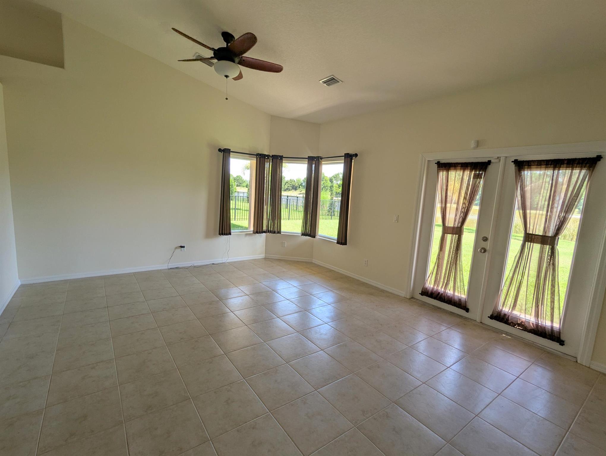 Waterfront beauty in The Estates at Sawgrass Lakes! This 3/2/2 offers a bright, open design with defined living and family rooms, elegant formal dining, and a welcoming breakfast bar. Stylish tile flows through the main living spaces, while bedrooms enjoy warm wood-look laminate. The kitchen is a chef's delight with granite counters, ample cabinetry, pantry, and newer stainless steel appliances. Step through French doors to a covered lanai, where a spacious backyard and sweeping lake views create the perfect backdrop for morning coffee or sunset gatherings. Available now! Basic cable, internet included.