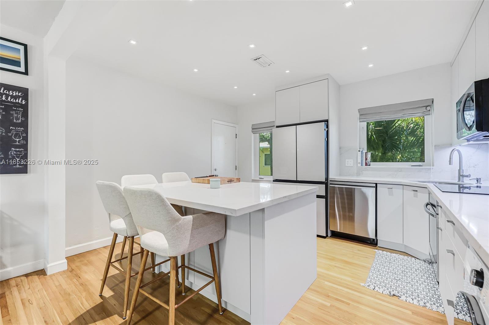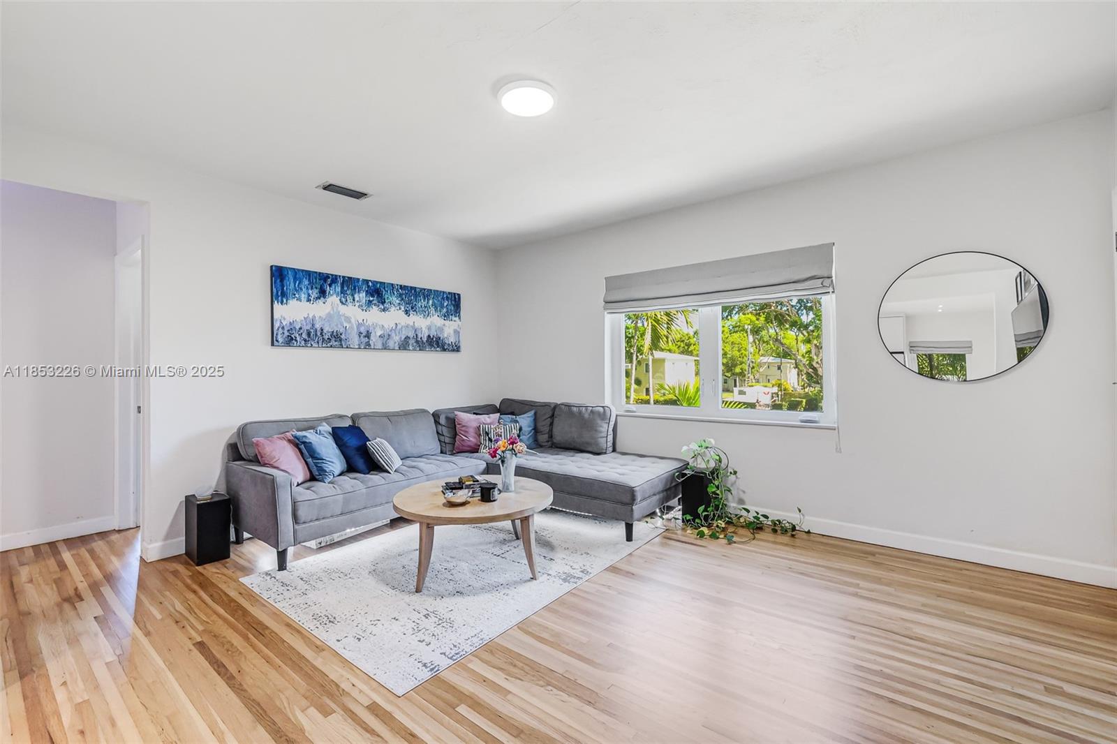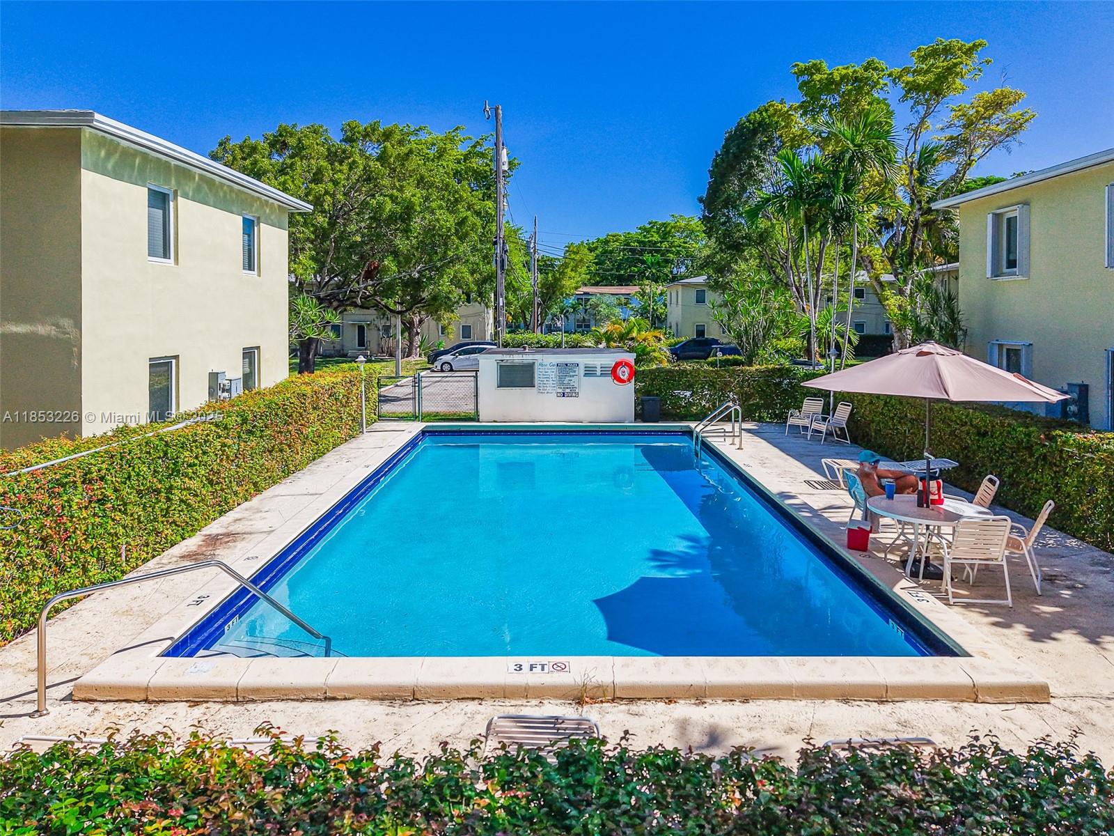 Located within South Miami's most sought-after community of High Pines, is this beautifully renovated 2 bedroom, 1 bath apartment in a boutique-style building, surrounded by lush landscaping in a family-friendly neighborhood. The tastefully designed unit has lots of natural light and open concept main living area, ideal for hosting. Kitchen features state-of-the-art appliances, sleek cabinetry, wine cooler, and plenty of storage space. The meticulously designed bathroom evokes serenity and a warm atmosphere. Washer/Dryer in unit, impact windows, window treatments & hardwood floors. The complex has a pool, easy parking, and laundry facility. Property is a short distance from Downtown South Miami, Whole Foods, CVS, Publix, shops, dining, University of Miami, Metrorail, and A+ rated schools.