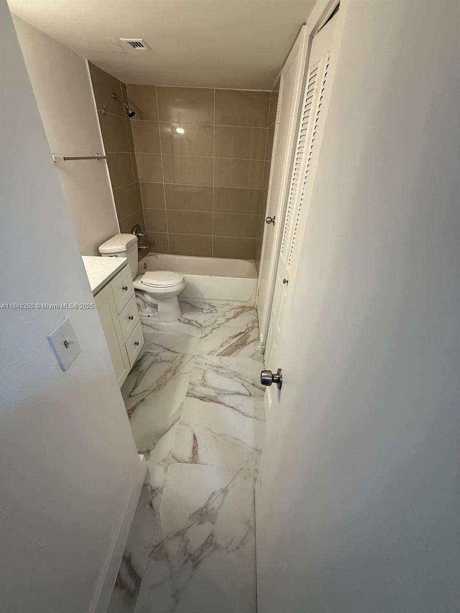 Discover this beautifully renovated apartment featuring a spacious bedroom and a stylish bathroom with dual access from both the bedroom and the living room. New floors in bathroom and kitchen. Enjoy ample storage with multiple closets throughout, ensuring everything has its place. The apartment has just been freshly painted, giving it a vibrant and inviting atmosphere. Step out onto your private balcony, perfect for morning coffee or evening relaxation.