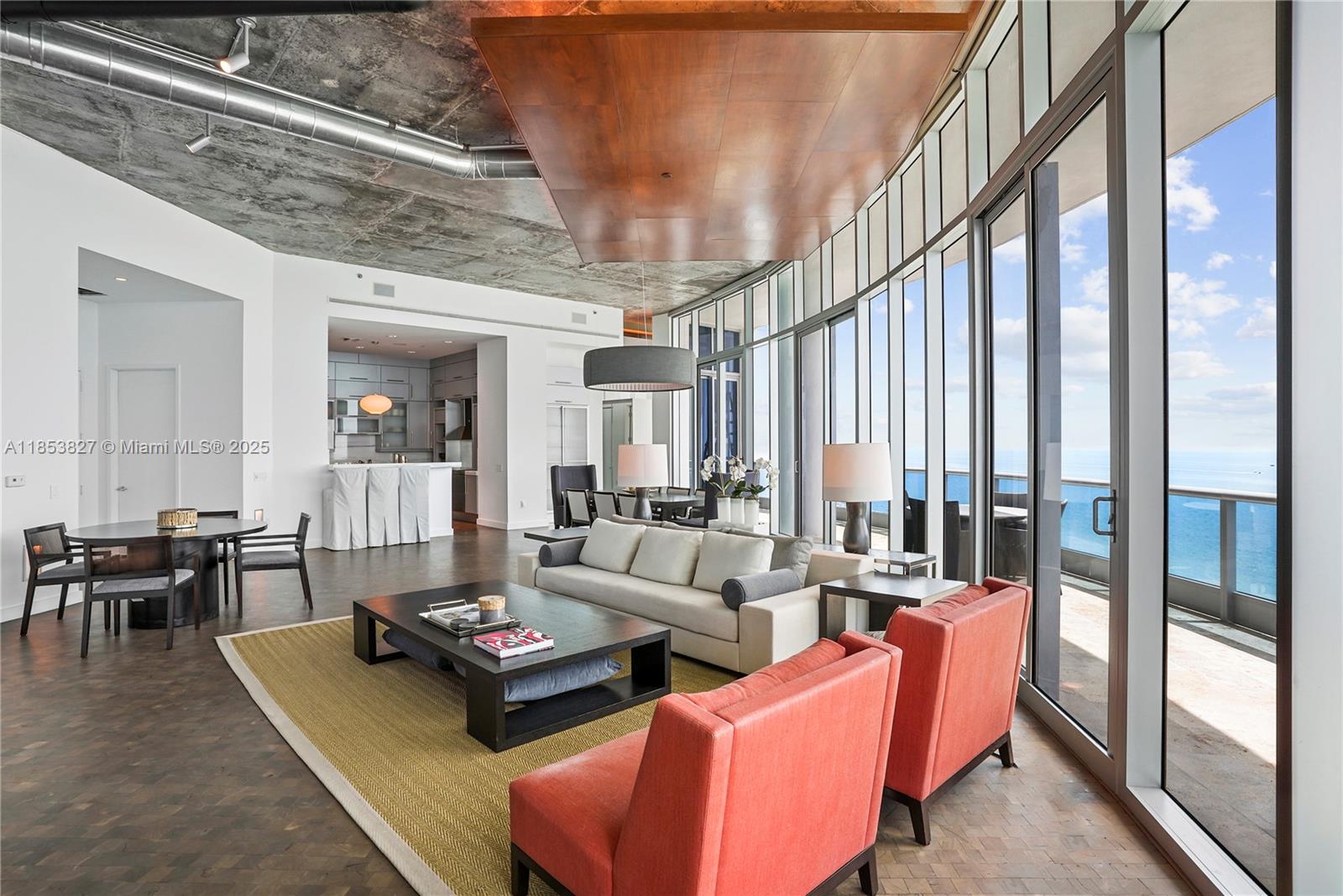 ONE-OF-A-KIND DIRECT OCEANFRONT PENTHOUSE LOFT WITH OCEAN VIEWS FROM EVERY ROOM! This 3 Beds + 3 Baths Encompasses just under 3000 SF and Furnished by Christian Liagre, Minotti, Etc & Designed by NY Architect Joe Serrins. Acid-washed Concrete 14' High Ceilings with Exposed Pipes; Ceiling Hung Walnut Boxes House Indirect Lights by Lutron; Creston AV System & Electric Shades; Linear Diffusers AC; Mosaic of Mesquite Wood Floors; Custom Grey & SS Italian Kitchen; Sub-Zero & Miele Appliances; Baths in Egyptian Limestone & Thick Onyx Tops & Mosaic; Upgraded Villeroy & Bosch Plumbing Fixtures. Luxurious Resort Lifestyle on 5.5 Acres with 530 feet of Beachfront, Pool, Spa + Fitness Center, Kidz Playground, Beach Club + European Clay Tennis Courts, Valet & Concierge Services.