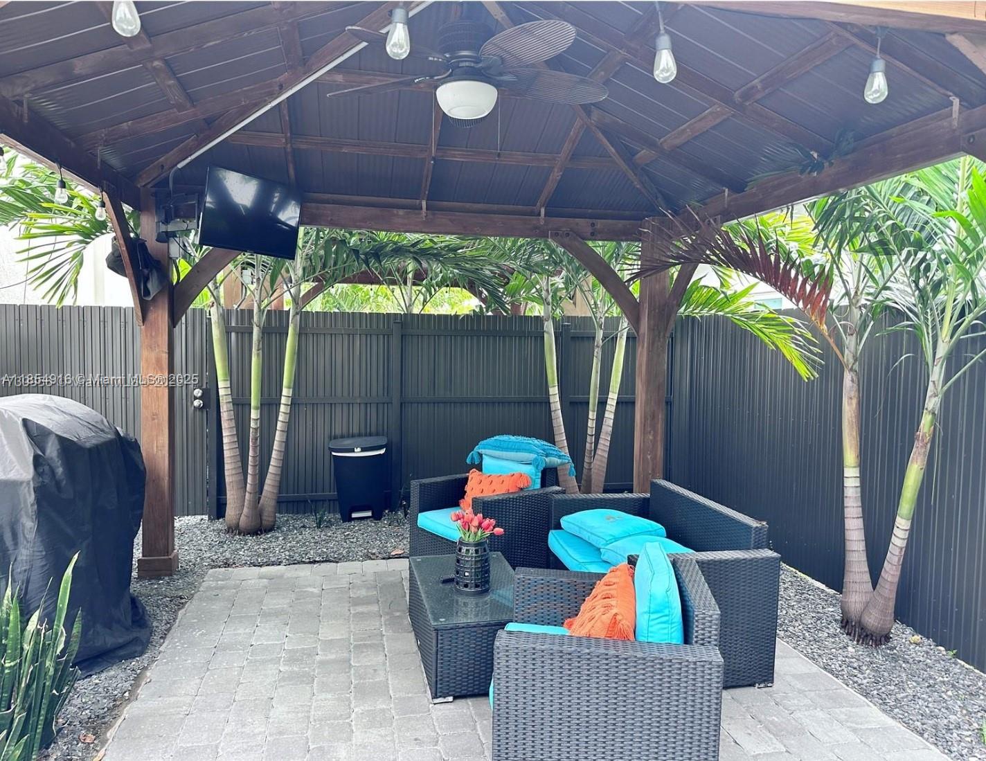 FULLY FURNISHED; Welcome to this beautiful apartment in highly-desirable Silver Bluff. Duplex with 1 unit available upstairs with 3 bedrooms and 2 bathrooms, completely remodeled. Professionally furnished and decorated combining modern elegance with comfort. This gem features a new kitchen with top of the line appliances, a cozy living room and dining room. Comfort and style in each room, modern remodeled bathrooms. Enjoy a quiet backyard with gazebo, BBQ, TV, to enjoy and relax with friends and family Washer and dryer inside the unit. Minutes away to Coral Gables, Coconut Grove & Brickell. 2 Parking Spaces