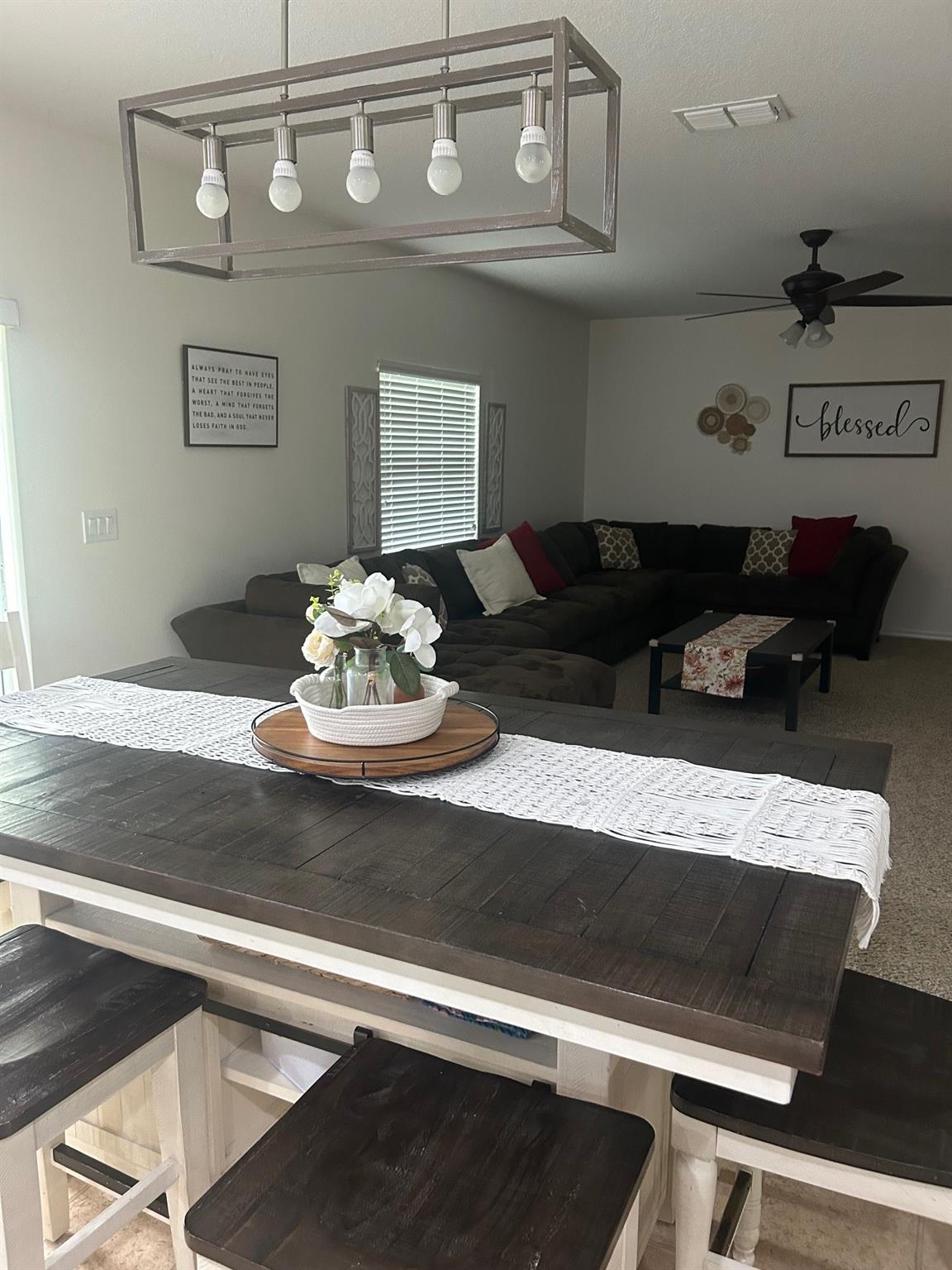 THIS IS THE ONE! Beautiful, well-kept, single-family home in WINTERLAKES, PSL, with 2,878 sq. ft. under air. 4 spacious bedrooms, 2 full bathrooms & large Loft upstairs. Ground floor has Foyer, formal Dining Room, Guest Bathroom, large Bonus Room (suitable for playroom/office/or den), Laundry Room, Huge Living/Family Room, Dining area & well-equipped Kitchen with Stainless steel appliances, white cabinets, an Island & 2 generous pantries. Floors on ground level tiled, w/ carpet in formal dining area & family room. Stairs as well as upper level carpeted except bathrooms. Water views from all 3 secondary bedrooms upstairs & from Kitchen, Dining area & Family room. Very large, screened back patio with BBQ Grill & tranquil views of the lake. Refrigerator in Garage stays. Very reasonable Rent.