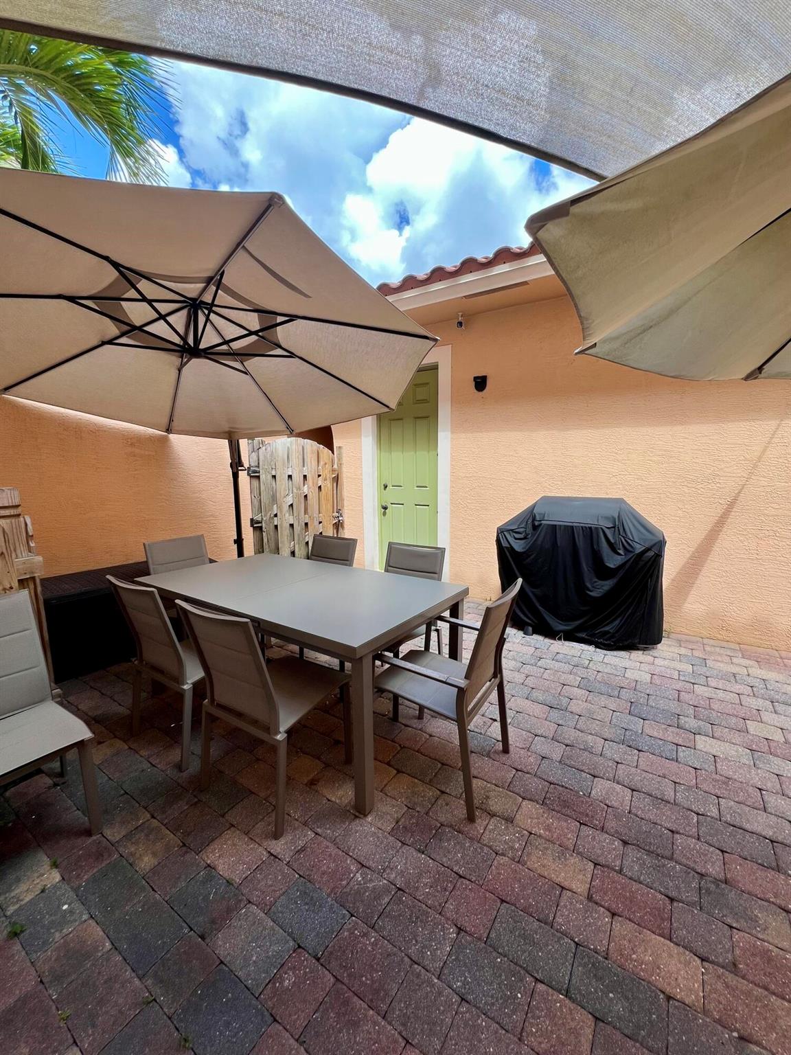 Don't miss this rarely available 2-bedroom, 2.5-bath townhouse in the highly desirable Canterbury Place neighborhood of Abacoa. Ideally situated on a quiet street in the heart of Jupiter, this is the perfect winter retreat to call home.The main level offers a spacious layout with tile flooring, an upgraded kitchen featuring granite countertops and top-of-the-line Viking appliances, and a convenient half bathroom. Upstairs, you'll find two generously sized bedrooms, each with its own bathroom, as well as wood flooring and ample closet space. The primary suite includes a generous bathroom with a soaking tub and separate shower.Step outside to your private, fully enclosed patio--complete with a grill--perfect for enjoying the Florida weather. Additional highlights include a newer
