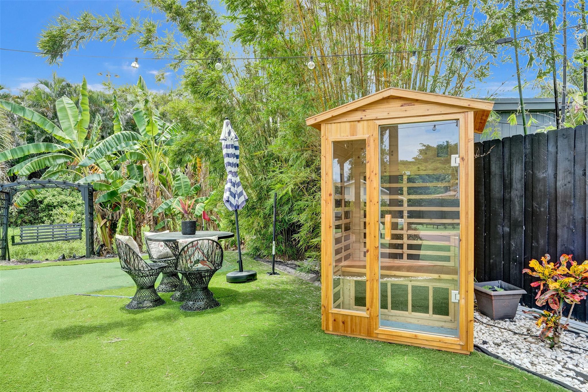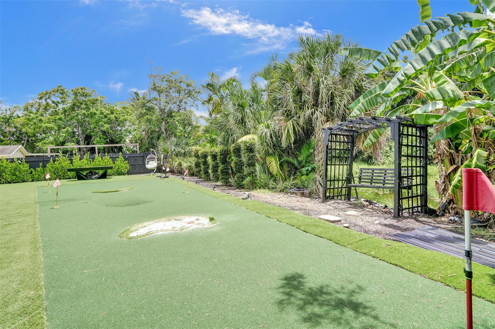 Luxurious 4BR smart home for annual lease in exclusive Palm Aire Village, tucked away on a quiet cul-de-sac. Fully remodeled with soaring vaulted ceilings, spacious bedrooms, and a gourmet kitchen with high-end finishes. The resort-style backyard is an entertainer’s dream, featuring a heated pool, spa, sauna, large putting green, artificial turf, two covered patios, multiple outdoor TVs, pool table, and luxury day-club-style furnishings—all set against a tranquil waterway. Solar panels and a 2-car garage with smart charger. Backyard furnished; interior unfurnished. No subleasing. Available starting September 1, 2025!
