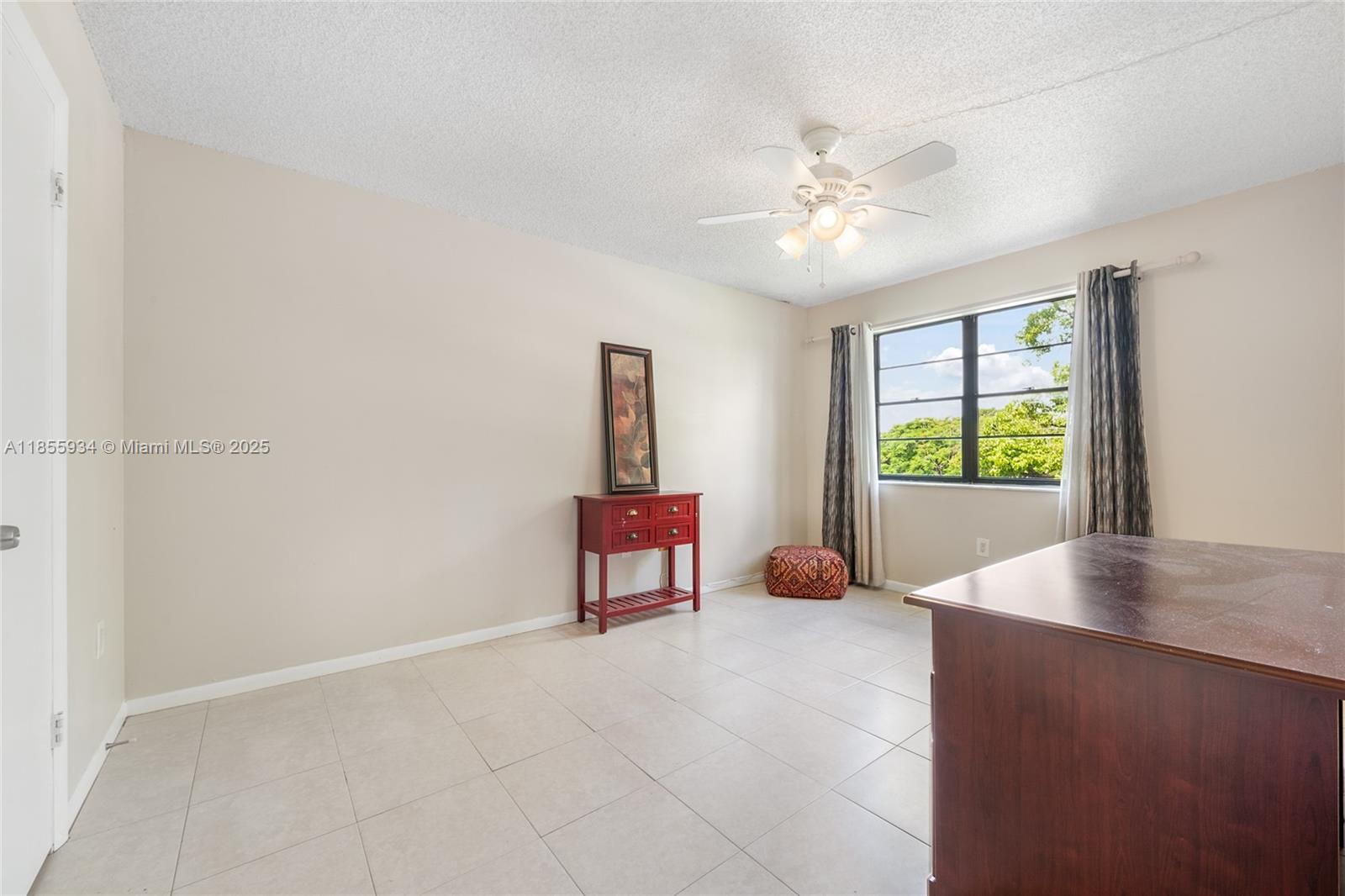 Bright and spacious unit 2bed/2 full bath, storage room, 2 walk in closets one parking space and plenty of guest parking. Lush community with beautiful interior garden, pool, tennis courts, club house and recreation center. The unit is offered unfurnished or partially furnished for $100 extra. Community offers a Great Location close to commute, across the street from Miami Dade college, Planet fitness and shopping. Laundry room on each floor...Great corner unit located on the top floor but there is an elevator.