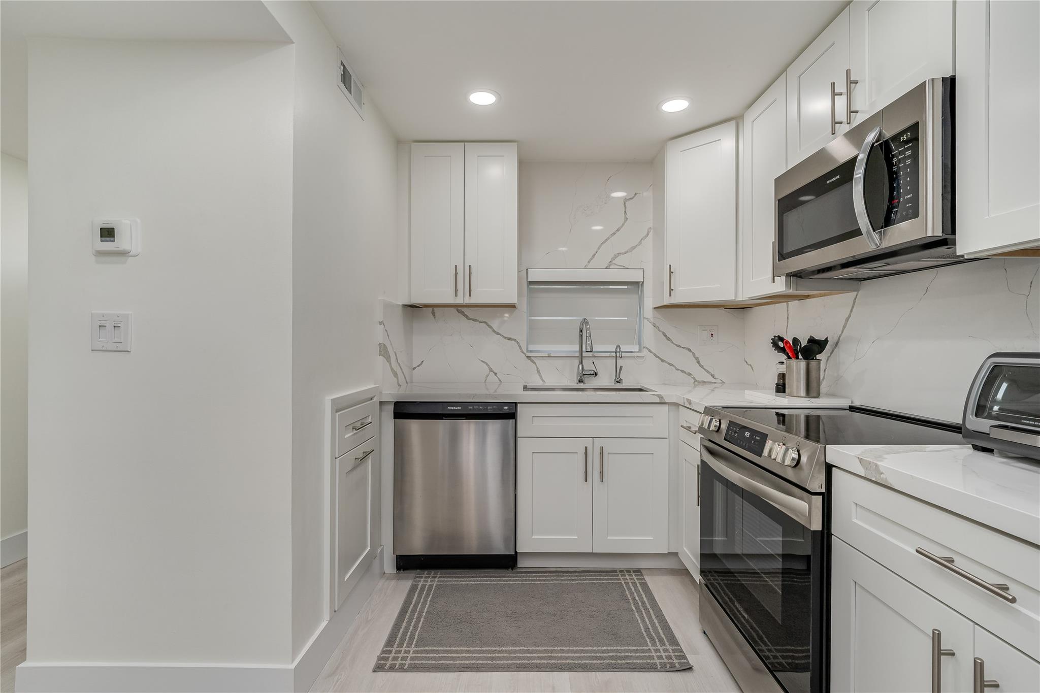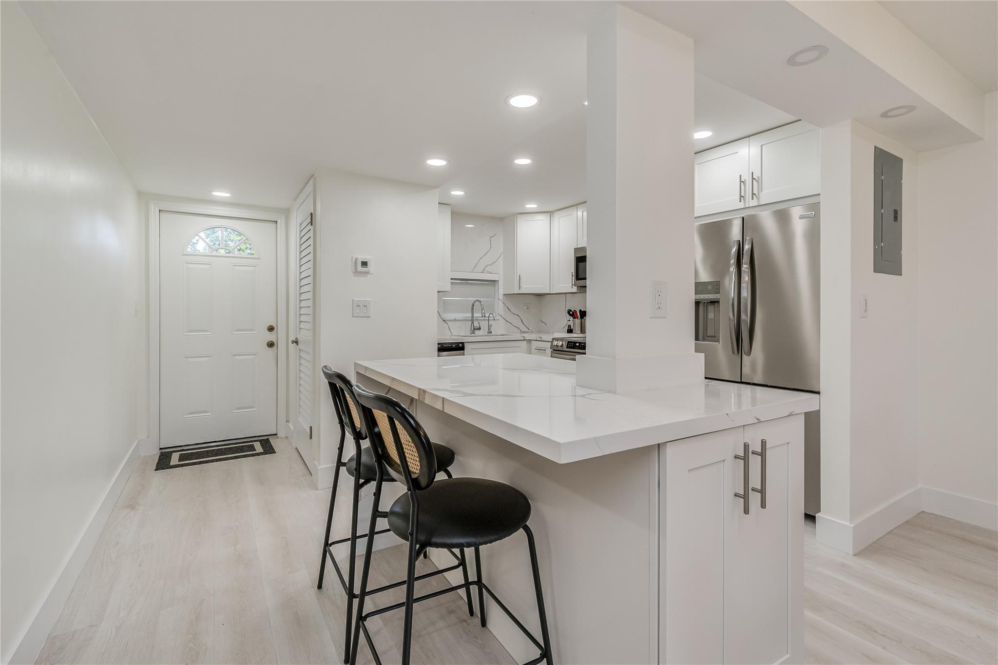 TRULY BEAUTIFULLY & TOTALLY RENOVATED SEASONAL RENTAL! 1st floor 2BR/2BA featuring OPEN KITCHEN w/ Stainless Steel appliances, Quartz countertops and backsplash, Quartz-topped Island. WASHER/DRYER, Porcelain tile throughout, Tastefully and fully furnished. 3 large TV's. Enjoy the SUNSET VIEW of the Par 3-17th green and large, long and wide waterway. Steps across from Pool and BBQ. FREE golf (except cart fees) on two 18 hole courses (PGA & Par3); Amenities include Restaurant, Billiard Room, Bbq/Picnic Area, Clubhouse, Courtesy Bus, Exercise Room, Heated Pool, Library, Putting Green, Sauna, Shuffleboard, Tennis, Pickle Ball, Bocci, Vehicle Wash Area, Electric Car Charging Station. Close to shopping, dining & highways. 15 min. to the beach. 55+ age required; JUST PERFECT! LIKE NEW!