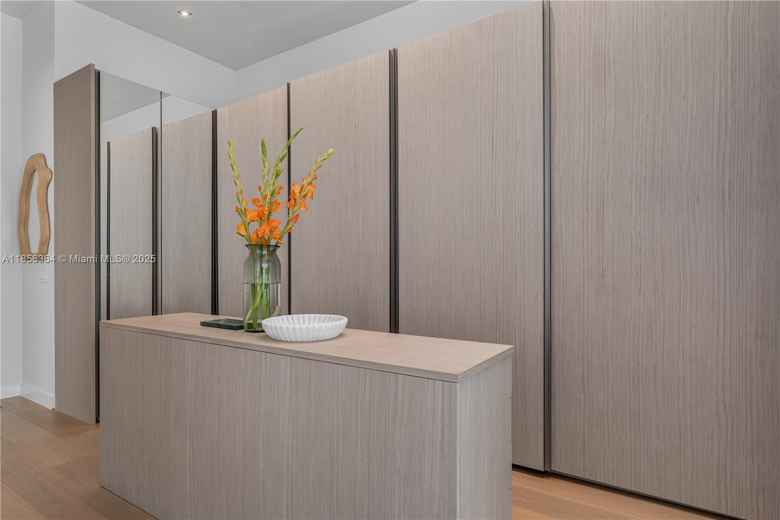 Experience resort-style living at The Ritz-Carlton Residences Miami Beach in this exquisitely renovated 2-bedroom, 3.5-bath residence with an oversized den. This rare first-floor home offers the ultimate in privacy and convenience, featuring direct backyard and water access plus your own private plunge pool. Designed with meticulous attention to detail, the residence boasts custom built-ins, designer millwork, and comes fully furnished for the perfect turnkey rental or effortless move-in. Floor-to-ceiling windows flood the open living and dining areas with natural light, while the primary suite frames serene water views. Enjoy world-class amenities including a half-acre rooftop pool with restaurant service, private art studio, state-of-the-art fitness center