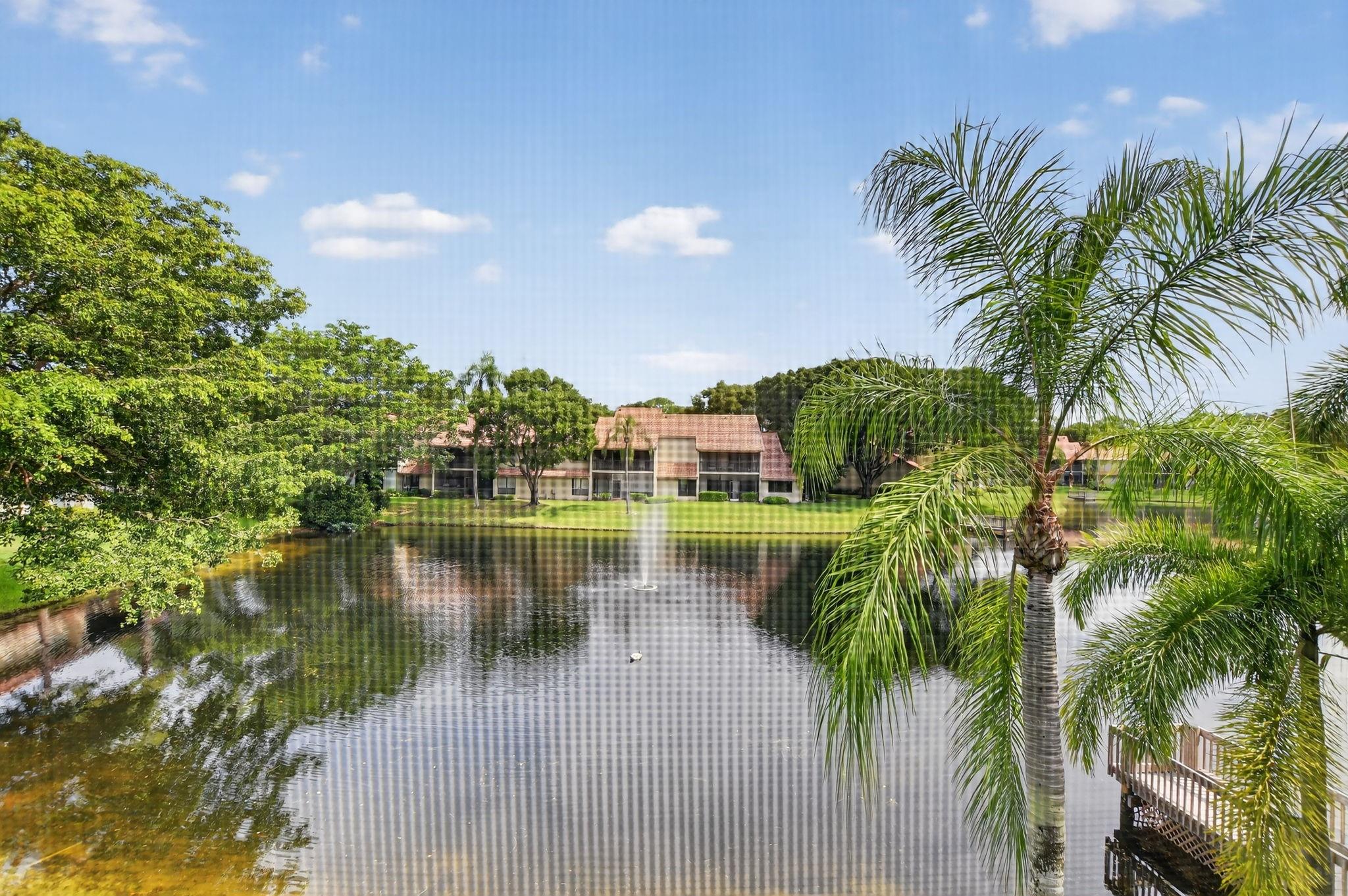 Boca Raton Condo living at its finest! Desirable 3-bedroom condo in Coach Houses of Town Place II offers direct lake and fountain views, open kitchen with granite countertops and large pantry, tile floors throughout, extra spacious master and ensuite bathroom, spacious bedrooms with updated bathroom, utility room w/washer and new dryer, ample closet storage, newly painted 1-car garage. Located on the 2nd and top floor, close to the community pool. Conveniently close to A+ Schools, I-95, FL Turnpike, Town Center Mall and Mizner Park in Boca Raton. Water and cable included. Unfurnished.