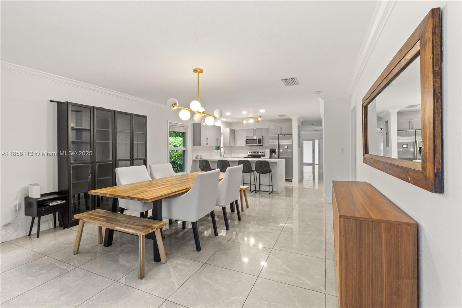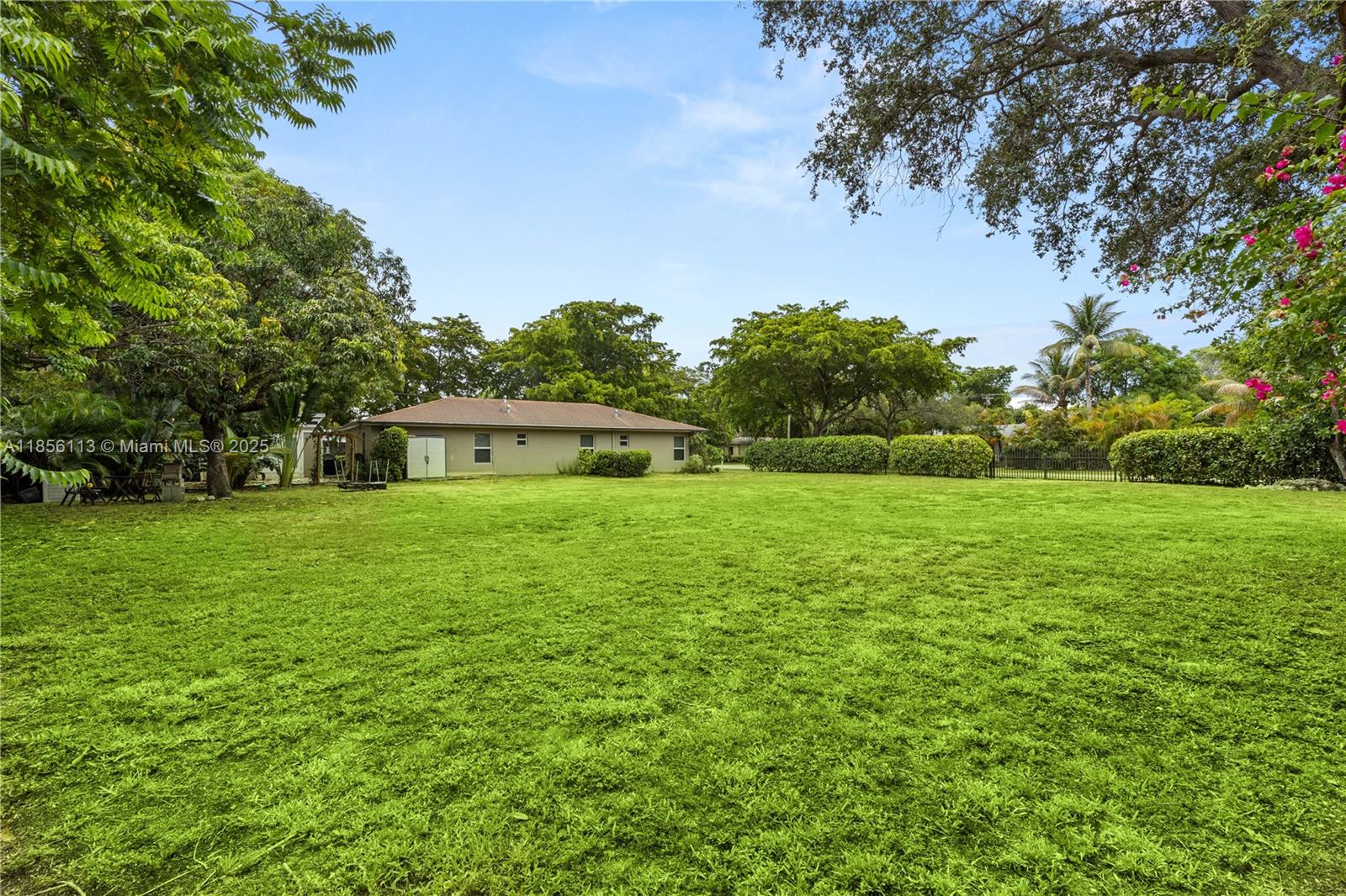 Exceptional 2019 home on an expansive 18,600 sqft corner lot, designed for comfortable living and effortless style. An open floor plan filled with natural light from hurricane-impact windows connects spacious living and dining areas to a sleek kitchen with high-end appliances, including a glass cooktop and dishwasher. Three generously sized bedrooms and two thoughtfully designed bathrooms offer comfort and privacy, while inside laundry adds convenience. Step outside to a patio and yard framed by mango and avocado trees, creating a peaceful, tropical setting to enjoy year-round. A detached backyard structure provides versatile space for a studio, guest space, or workspace. Ideally located in North Miami with quick access to Oleta River State Park, Biscayne Blvd, and local dining.