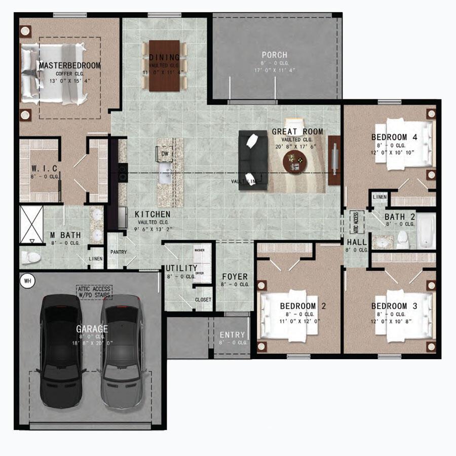 This meticulously designed single- family residence offers over 1900 sqft of comfortable living space. Vaulted ceilings and natural light create an inviting atmosphere. The kitchen features solid surface countertops, stainless steel appliances, and ample cabinetry. With four bedrooms, including a master suite with his and hers closets, and two bathrooms with modern fixtures, tub and standing shower. Energy-efficient features include double-pane, insulated low-E windows and sliders, along with a high-efficiency AC system, 40 gal quick recovery tank. Step outside to a covered patio with ample yard space. Minimum credit 650 required and background check. Home is vacant and professionally cleaned.