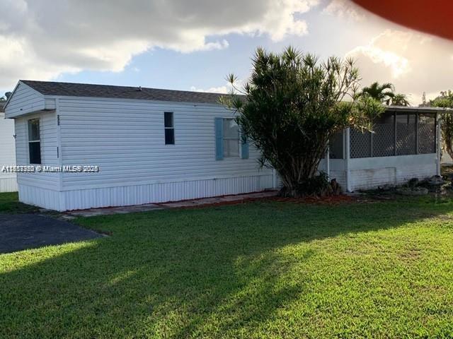 2 bedrooms, 2 Bathrooms . Large living room, new kitchen cabinets. Large corner lot with utility shed. The FL Keys is only minutes away. Gateway Estates is a gated community with several lakes, a community pool.
