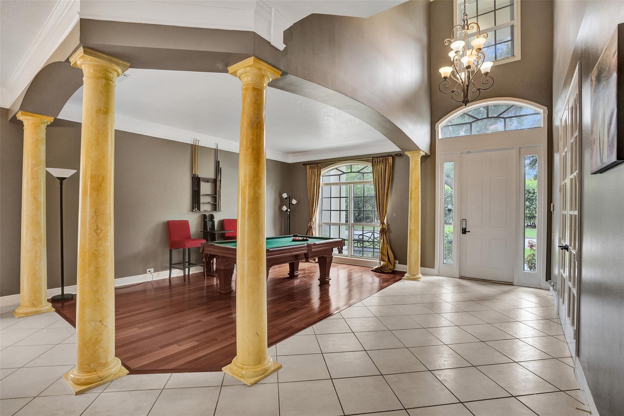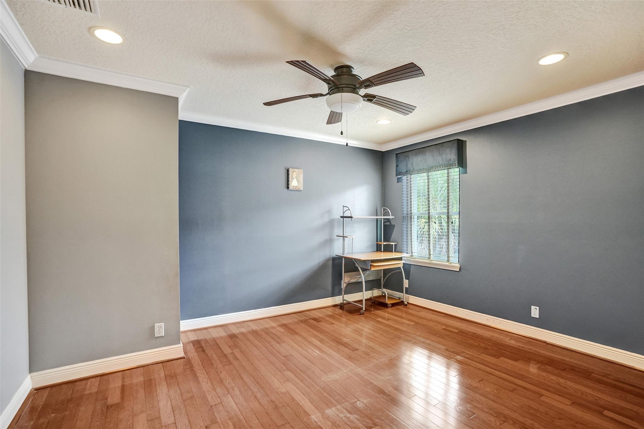 Beautiful 4 bedroom + OFFICE, 3.5 bathroom home with screened-in pool and lake view in a gated community close to A+ Parkland schools! Chef's kitchen, Stainless steel appliances, Sub Zero refrigerator, powerful modern hood vent, kitchen island with wine cooler. Volume ceilings, crown molding, large walk-in closets with custom cabinetry, real wood floors on stairs & 2nd floor. Large primary bedroom with sitting area and huge closet, New Samsung Washer & Dryer, Accordion hurricane shutters, Bose surround sound, all 4 bedrooms upstairs and office downstairs. Furniture can stay or go. Tandem 3 car garage was converted to movie theater/playroom with AC units - landlord is willing to convert back to garage if renter wants.