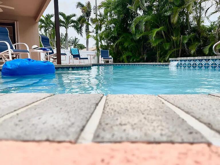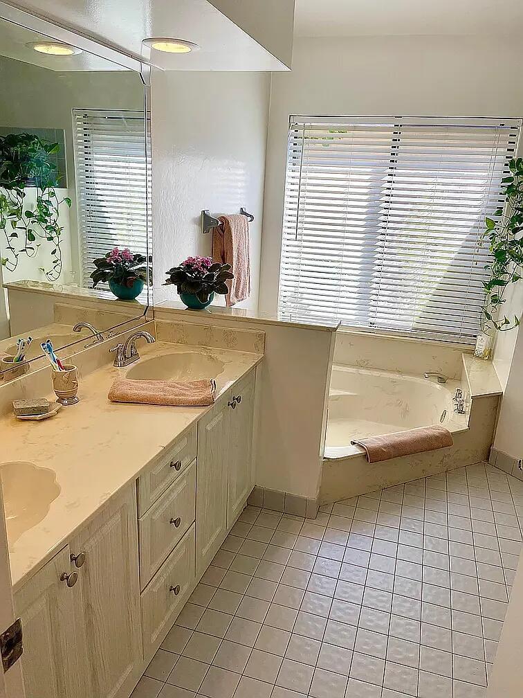 Great Swimming pool and Spa Tub with new heater behind Fantastic Just Painted home with open floor plan, vaulted ceilings and split bedrooms in the perfect location. Tiled and/or wood laminate floors for easy cleaning. Newer kitchen with granite loaded with cabinets. Secondary bathroom remodeled with new floor to ceiling tile.Newer AC. W/D included. Home is meticulously maintained. Sod with sprinkler system with lawn maint. included. Beautiful Pool with maintenance included. Pass through from kitchen to pool area with granite bar. Fenced yard. 2 Car garage. **Property occupied by tenants. Will be available to move in Sept 15, 2025**