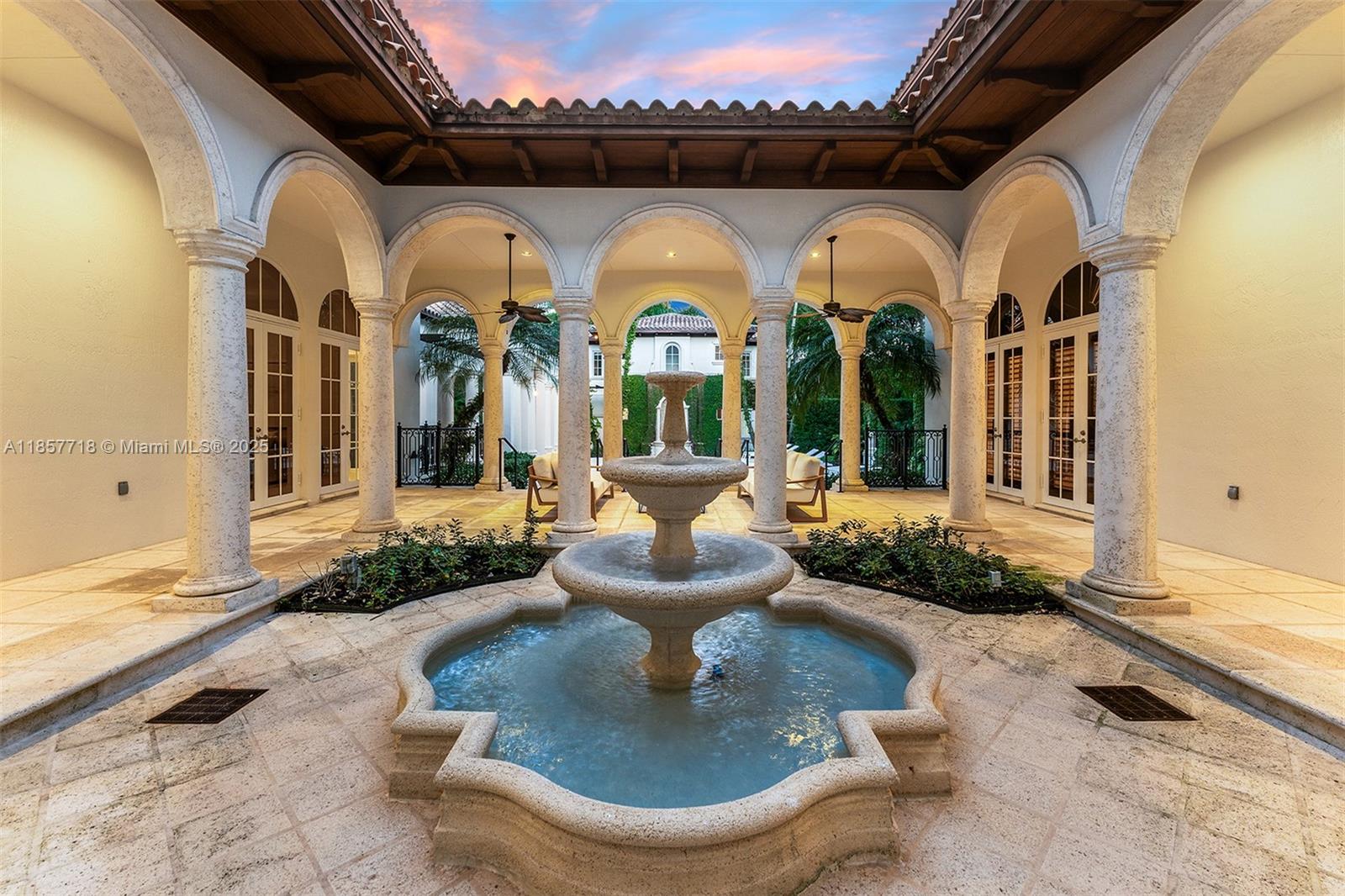 Luxury estate on esteemed Suburban Dr in Pinecrest, boasting a through-lot design. Ideal for a large family, w dual staircases that divide the foyer & formal living rm w soaring ceilings. Main level includes entertaining space, formal dining rm & open-style kitchen. Family rm is enhanced w a bar, fish tank, & workspace. Primary suite on main level enjoys its own wing, w a sitting/nursery rm. Staircases lead to distinct wings, one side 3 beds & 3 baths, and the other w 2 beds & 2 baths, featuring hardwood floors & renovated baths. Backyard is a paradise, w pool, jacuzzi, basketball court, & putting green. Additional luxuries: outdoor courtyard, water features, summer kitchen, detached guesthouse w 2 beds, living, & kitchen area, 3 car garage, & spacious motor court.