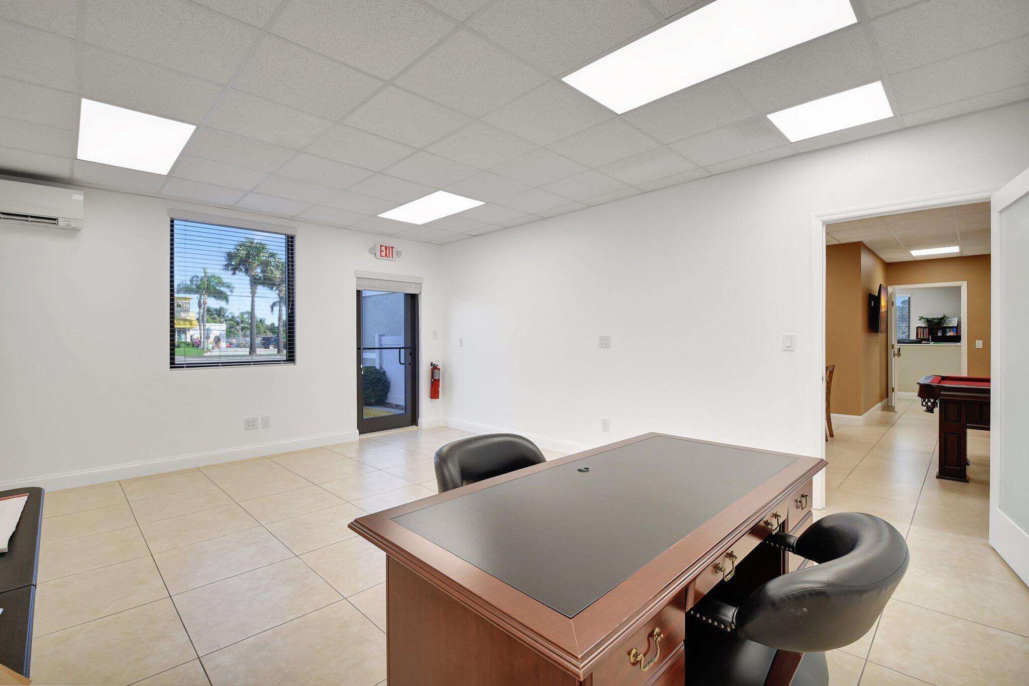FOR LEASE: 305 SF of Office space right on Military Trail Blvd. This unit comprises the Unit 2 on a huge corner lot and right on Military Trail Blvd facing Military Tr. provides a comfortable office environment with 4 separate rooms/conference areas, a kitchenette area, and 1bathrooms. 4 parking spots provided as pictured. Lease Tenant pays their share of Property Tax, Insurance, Electric, Maintenance, Water and sales tax. Tenant must maintain liability insurance. All newly renovated, New A/C, New Bathroom, New Kitchenette and employee Lobby. Outside security cameras, ring door bell, 24 monitored alarm. Also additional office space for parking in rear of complex.