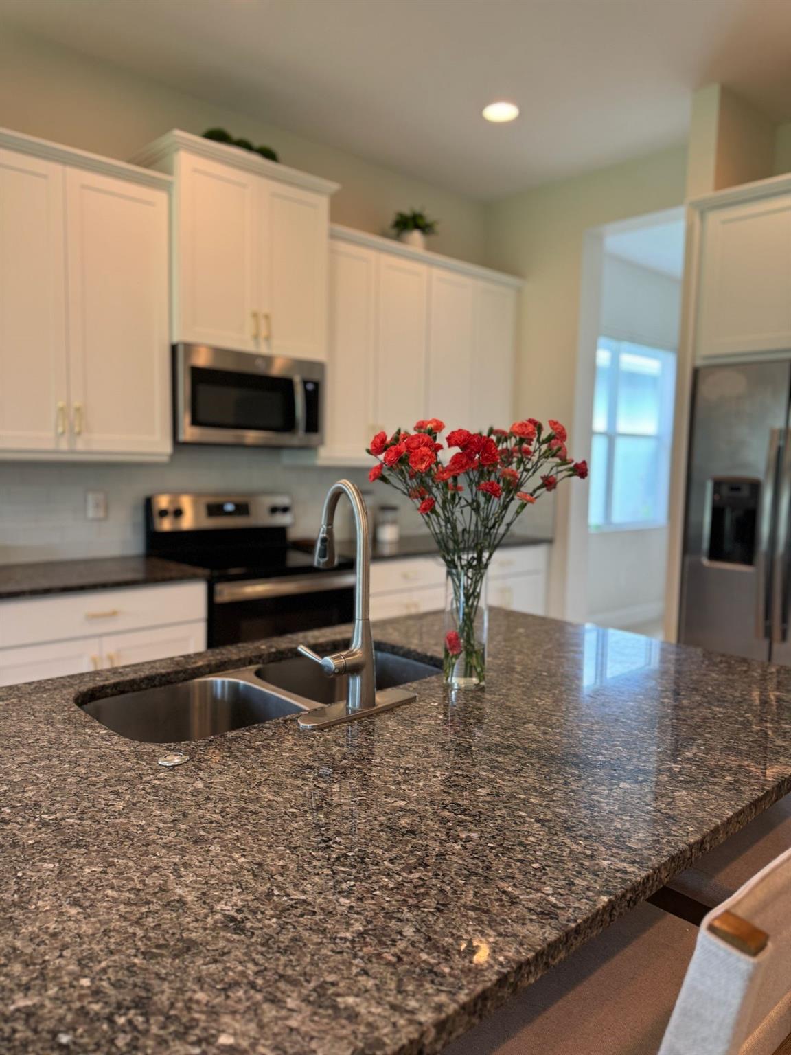 Open-Concept 3/2 in Westlake – Water Views & Resort Living! Live in style in this spacious 3-bedroom, 2-bath home with impact windows/doors, and one of the largest lots in the community—offering wide water views and extra backyard space. The open layout and flexible living areas flow into the kitchen with expansive granite countertops, stainless steel appliances, bright white cabinetry, and tons of storage. Master suite with large master bathroom and double walk in closets. Laundry room with sink, covered patio area, huge back yard with canal view and more! Enjoy Westlake Adventure Park with resort styled pool, cabanas, oversized waterslide, pump park, park and café—your vacation starts at home!