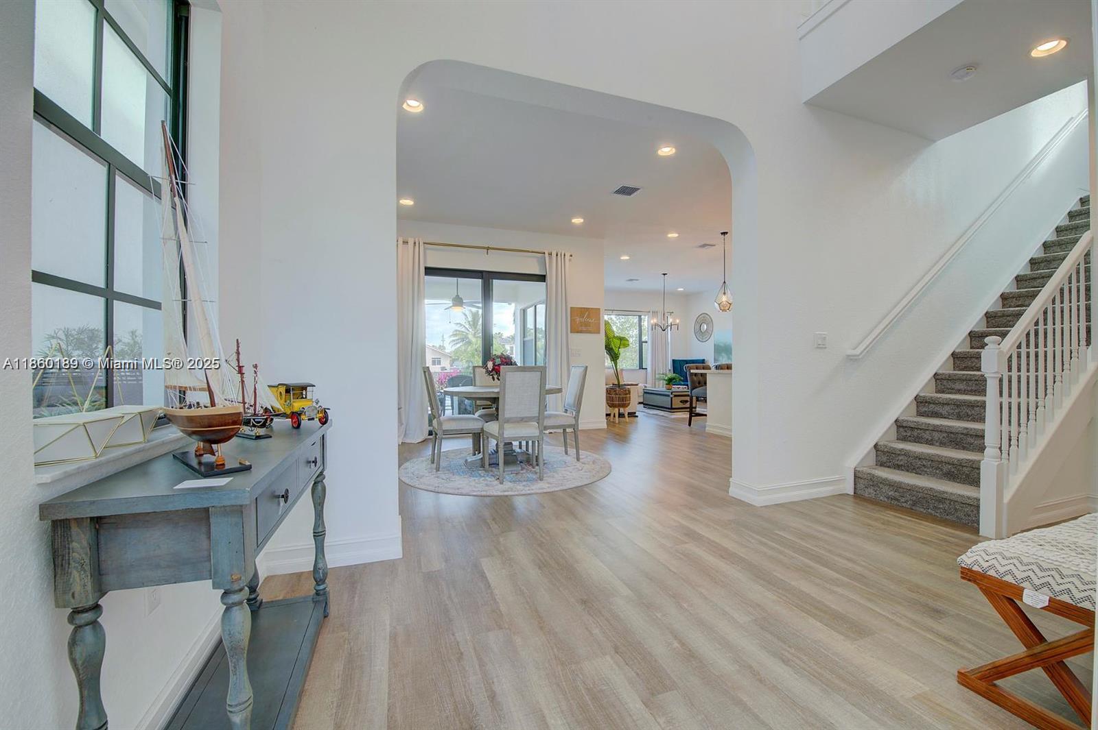 -Welcome to this beautiful, modern, bright and airy, newly constructed (2020) water-front Single Family Home located in the highly desirable community of Raintree with easy access to primary highways and interstates, entertainment venues, parks, golf courses, restaurants, businesses and retail/commercial destinations. -This home features 4 bedrooms + additional den, 3 bathrooms, a two car garage, a brand new heated salt water swimming pool, water softener filtration system, impact resistant door and windows and fully upgraded kitchen and bathrooms. The master suite as well as the living room, kitchen and dining room areas overlook stunning lake views. -Amenities for the whole family includes: Resort Style swimming Pool, Fitness Center, Social Room and Tot Lot.