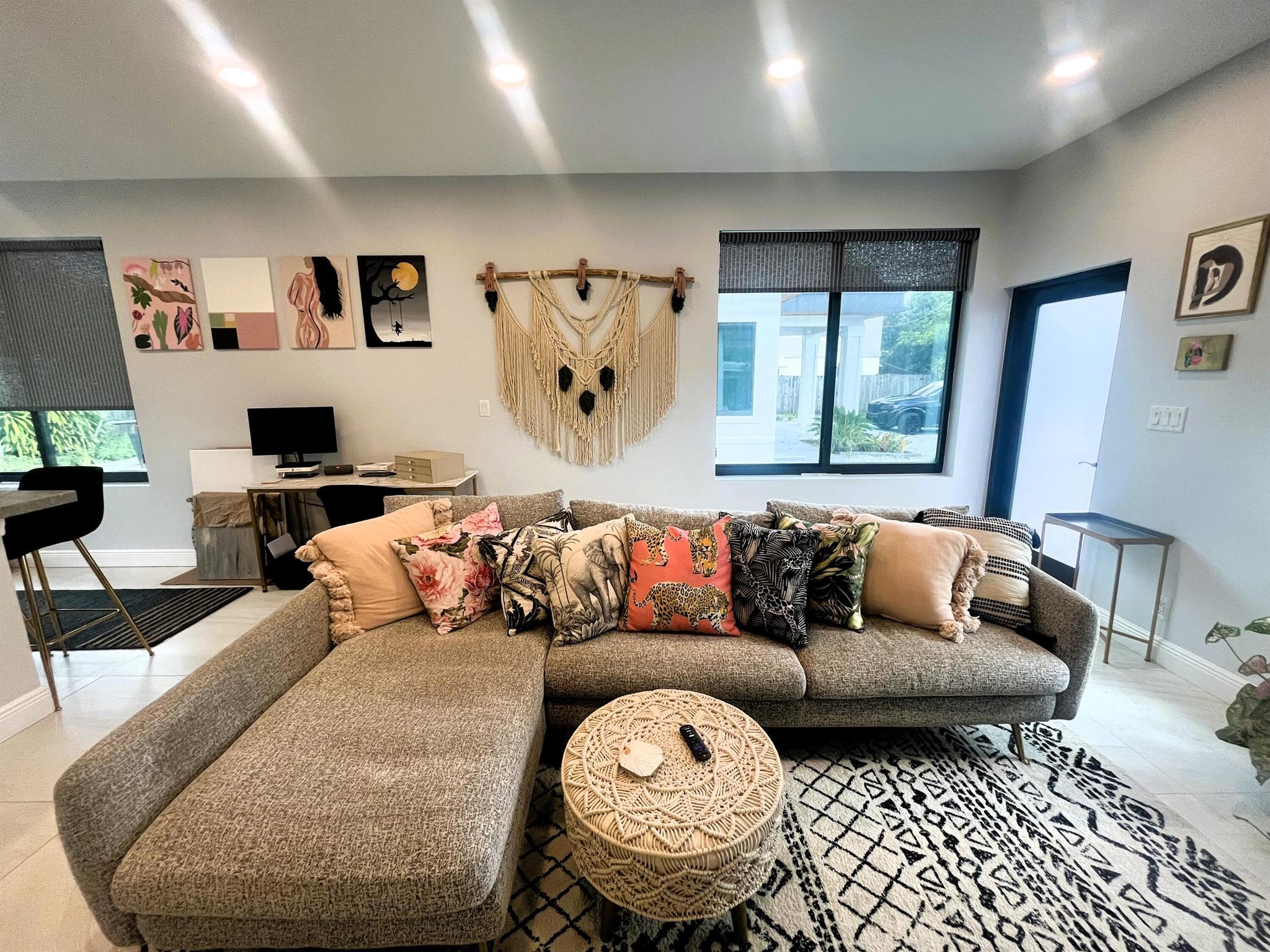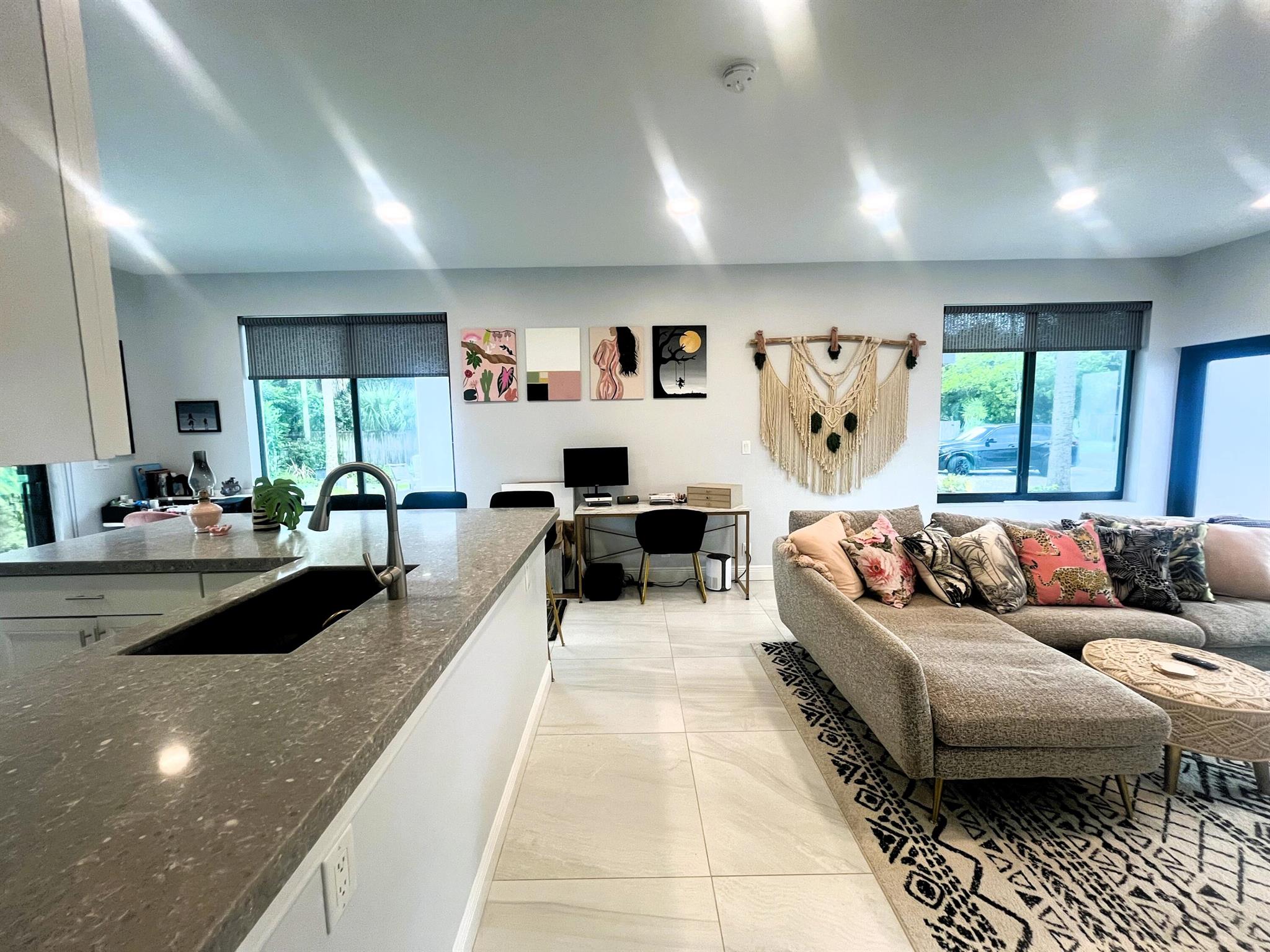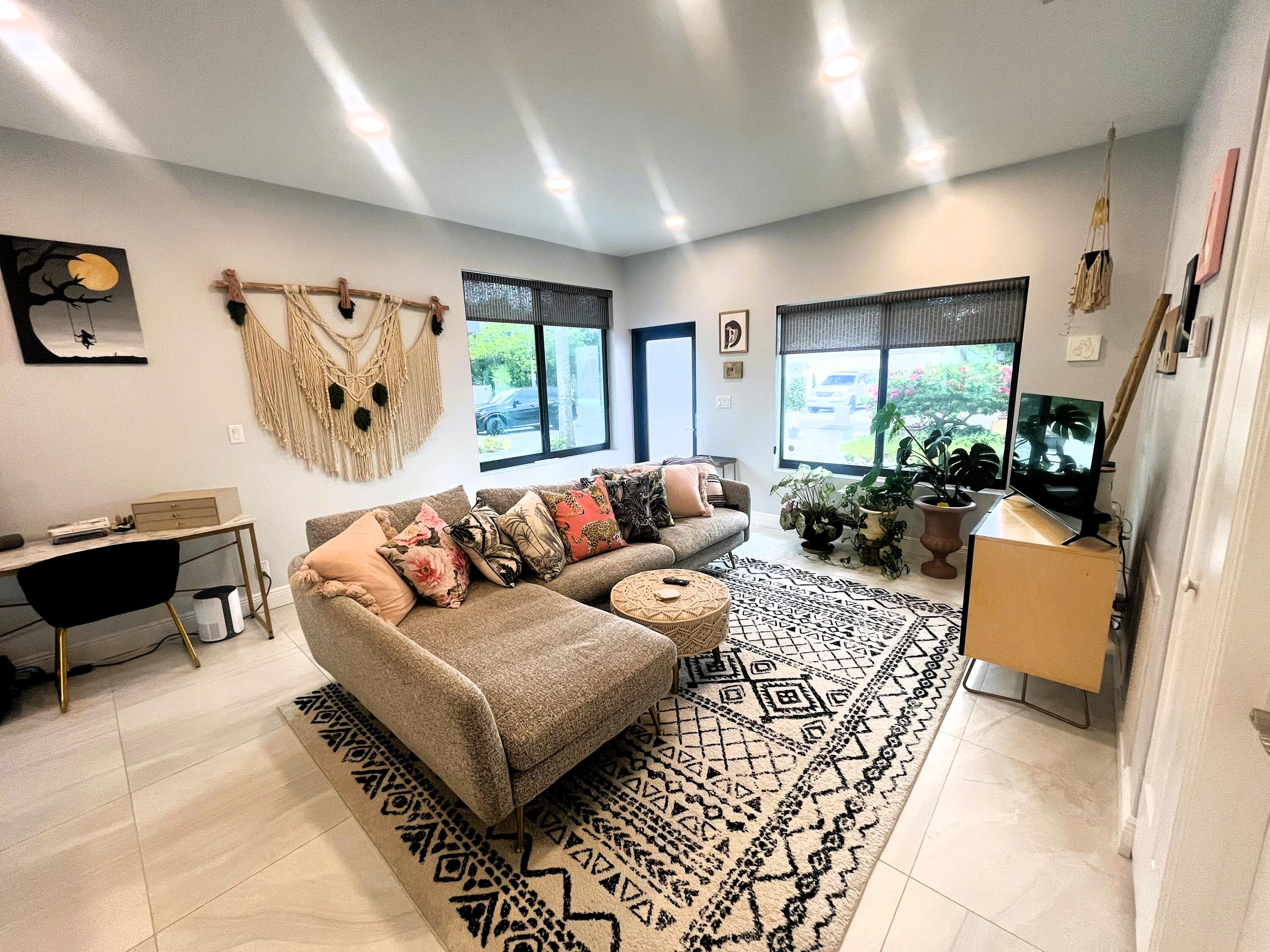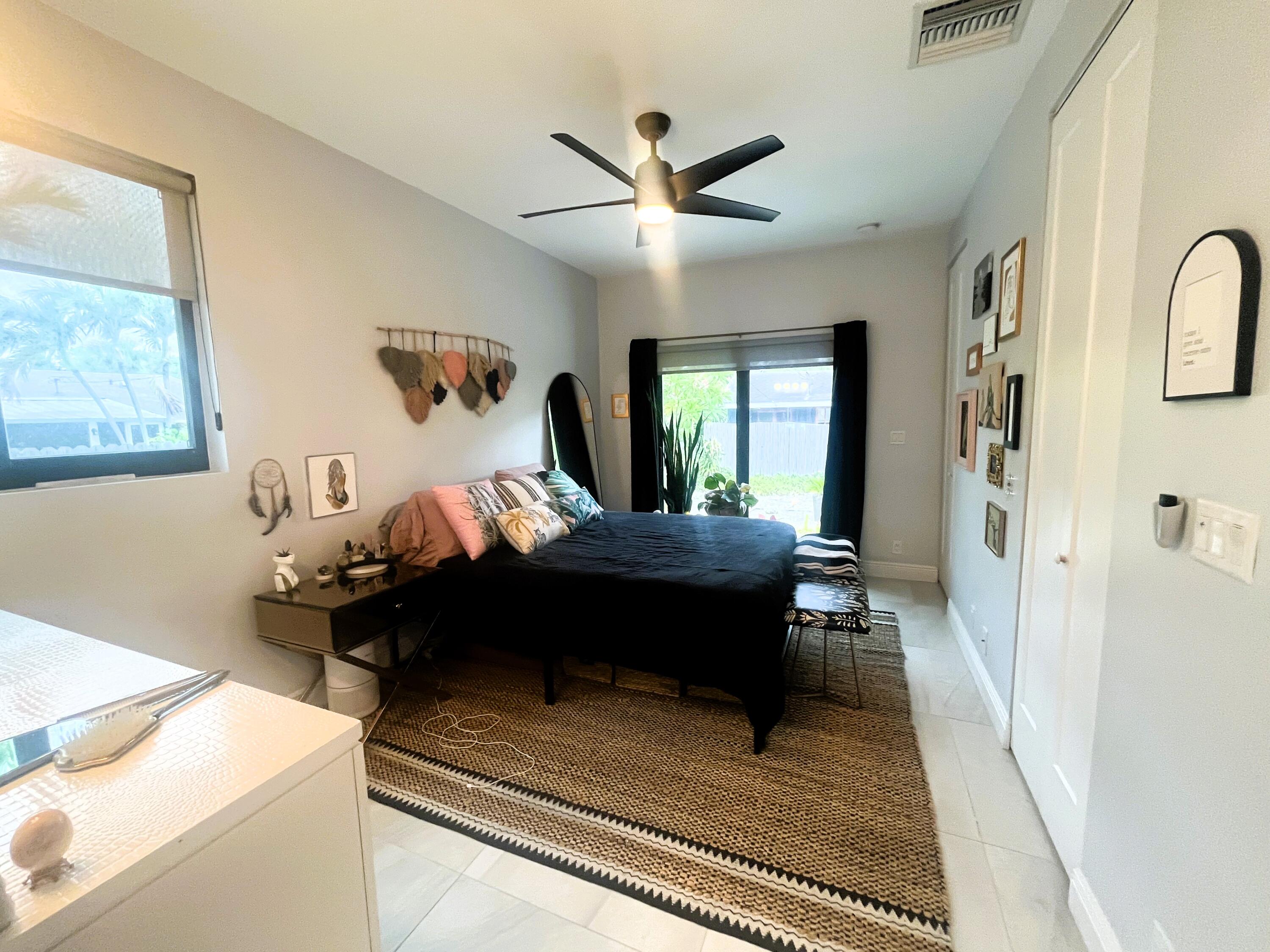 Modern single-family home built 2021. Located near downtown Delray Beach in quiet historical neighborhood near US1/Federal Hwy & Beaches. Large open kitchen and spacious floor plan for a with private washer & dryer. Everything new 2021! Front covered patio & back patio. Hurricane impact windows & doors. High ceilings with recessed lighting! Custom roll-down shades. 24x24 tile wall-to-wall. New appliances, central air-conditioning, instant tankless hot water system, serene lush landscaping with exterior artwork throughout, whole house water filtration system, off-street parking for 2 cars. Quiet serene area. No HOA! Quick Approvals! Water/sewer included in rent. Pet-friendly