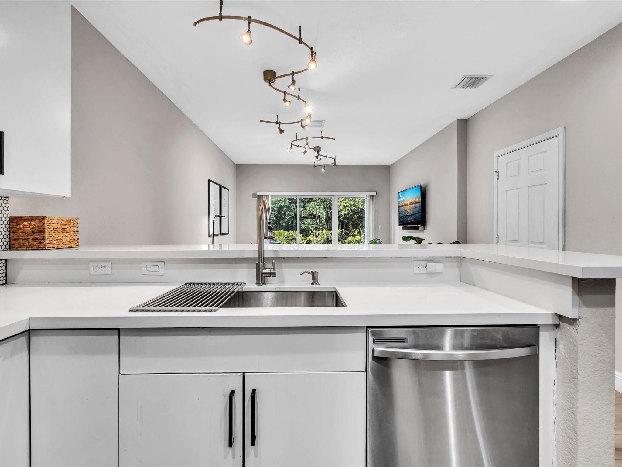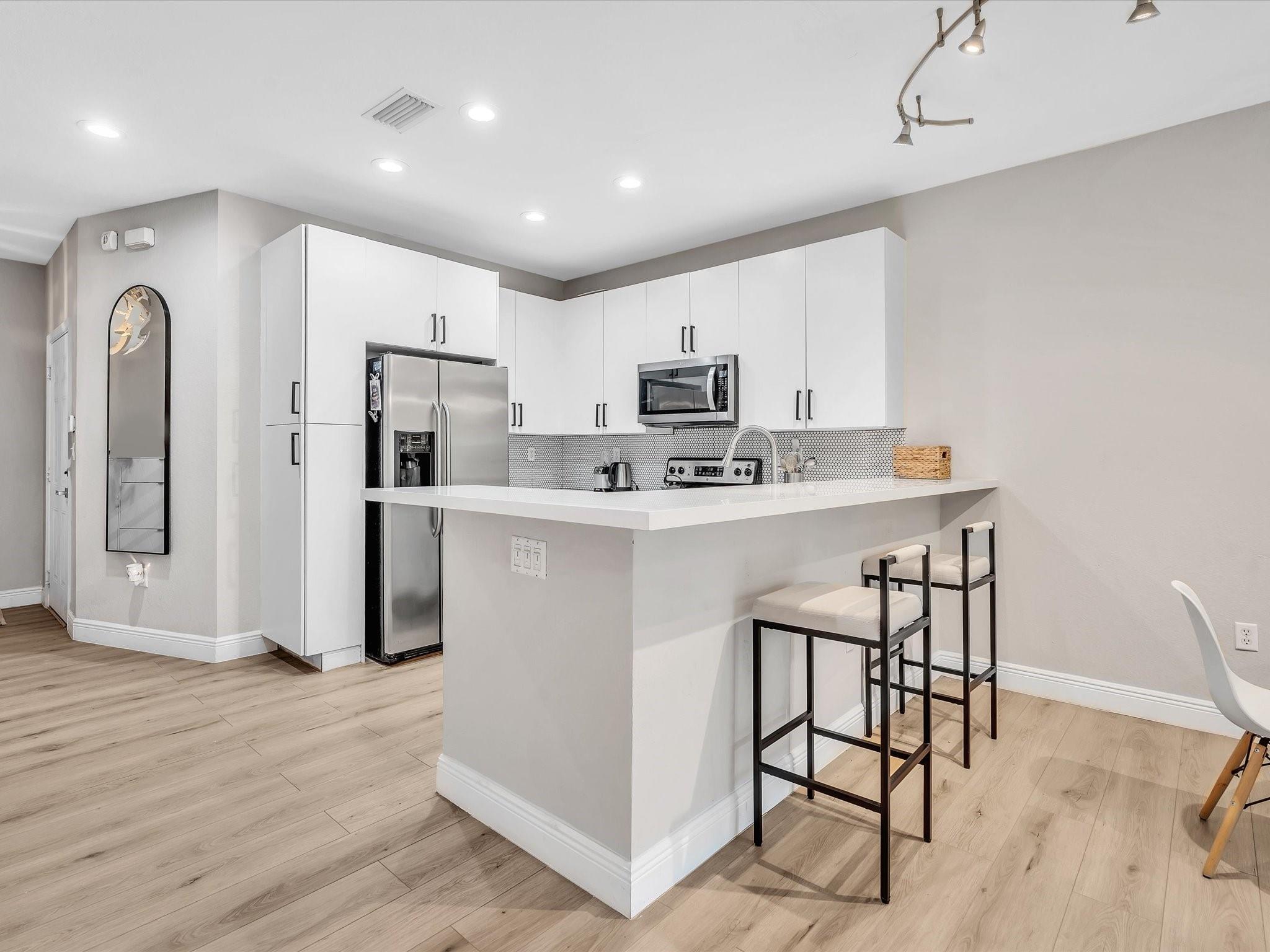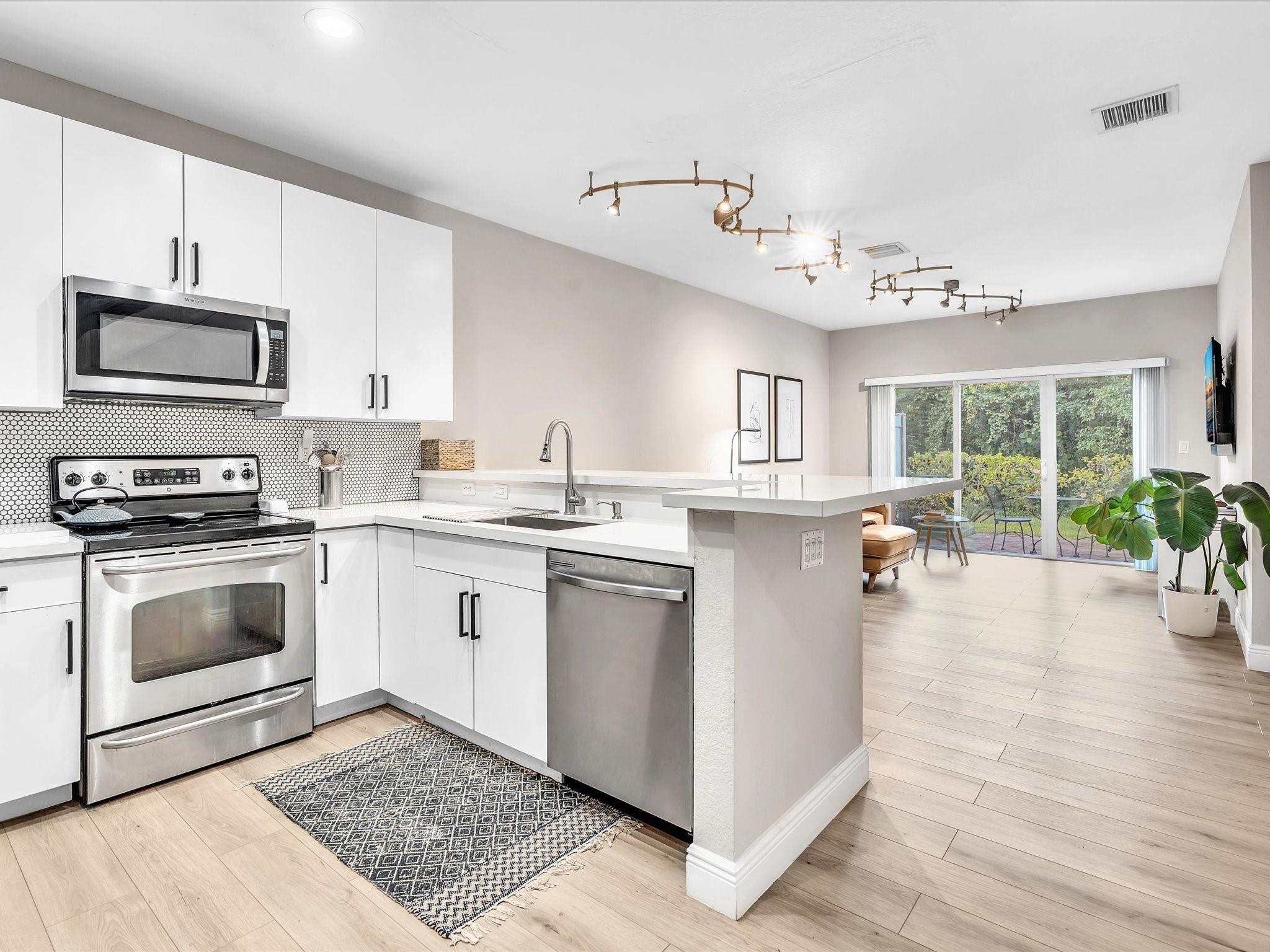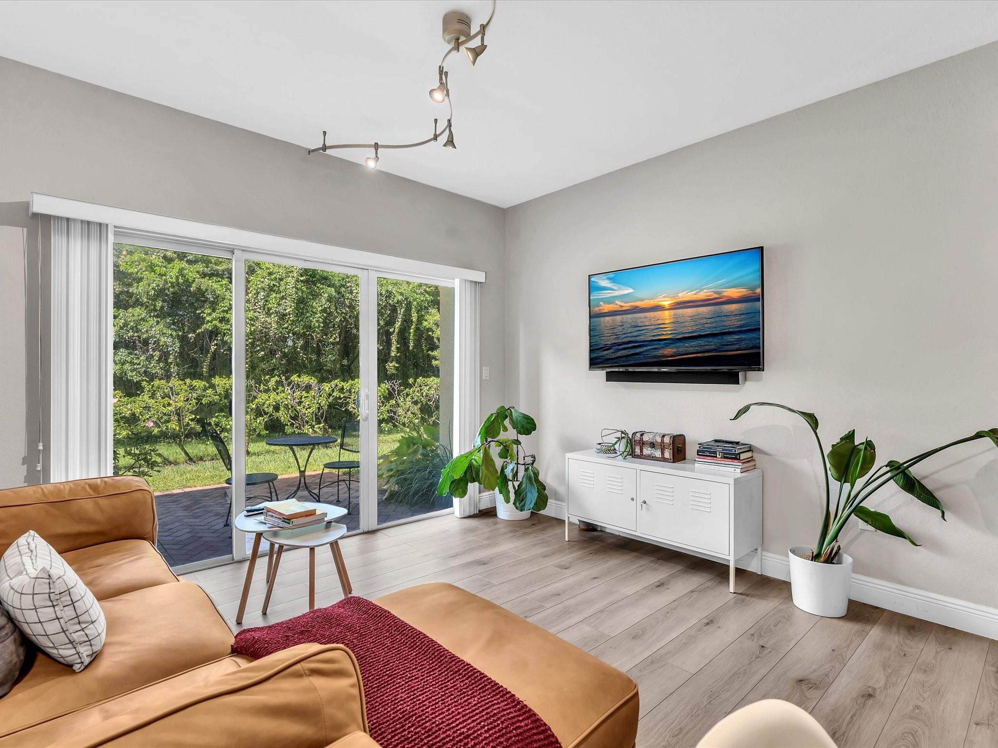 Substantially updated with style and quality, this town home is move in ready! Enjoy the serene back patio with just green and flowers to see. With its open concept, this home feels open and airy. Almost all appliances, flooring, and the kitchen is updated and newer. Ample parking is featured with both a garage, driveway, and guest parking. Full size washer and dryer is located upstairs for ease of doing laundry. The upstairs features the bedrooms split at opposite ends of the hall so everyone gets quiet and privacy. Plenty of closet space and abundant storage here! Great location with easy access to major roads, just off Oakland Park Blvd. The gated complex offers security, and a heated pool. HOA: 700 credit score and interview for approval. First, and one month security to move in!