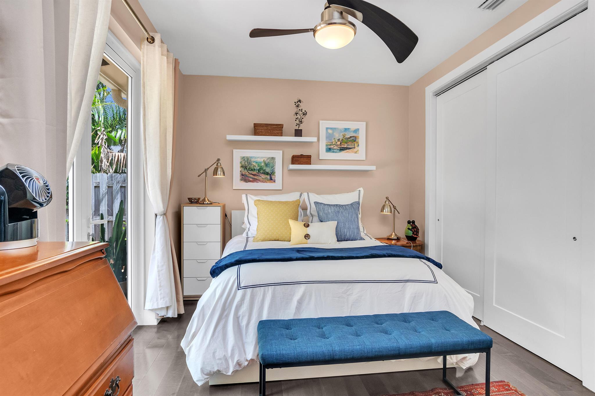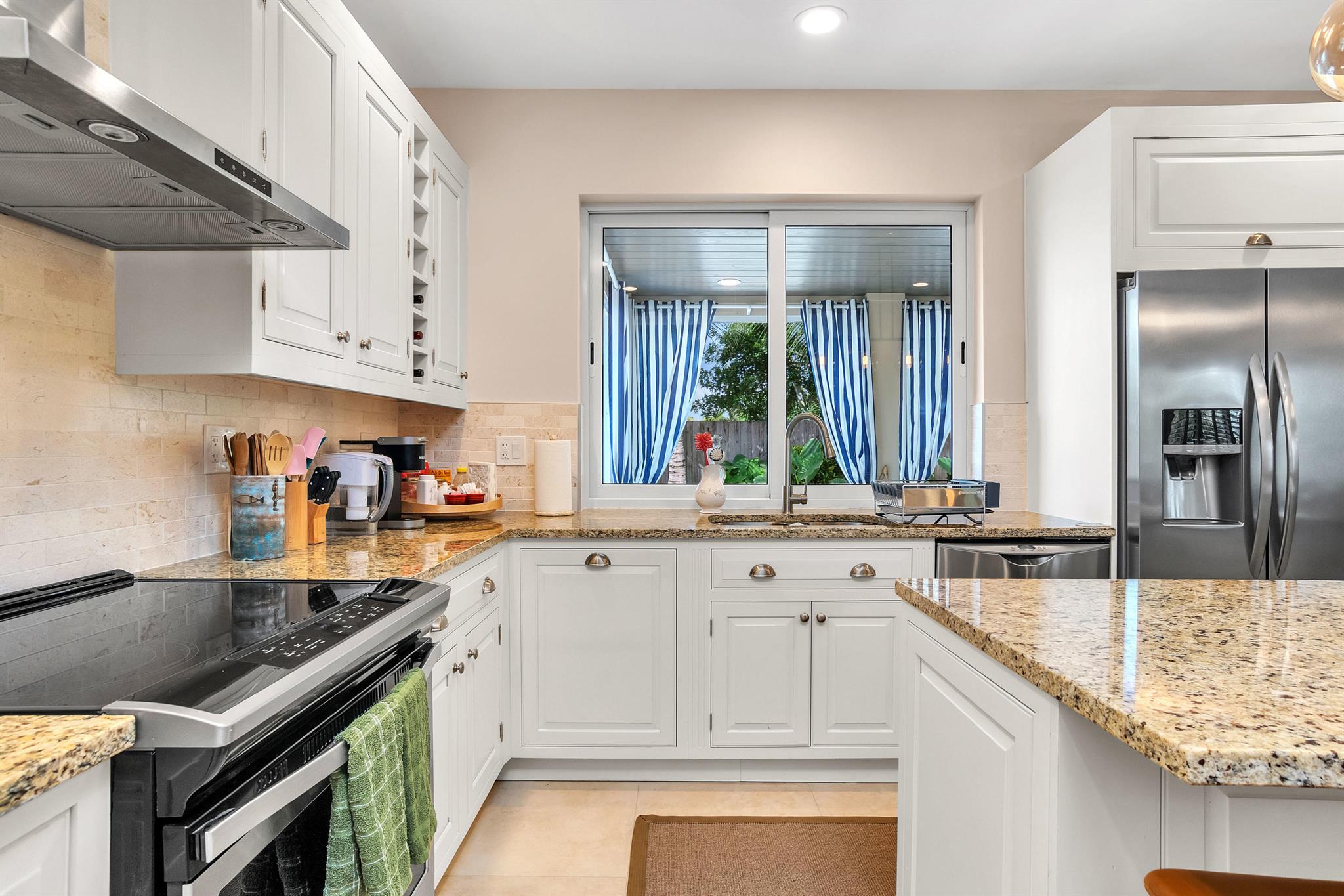 Absolutely turnkey and beautifully renovated, this move-in ready home delivers a luxurious, like-new living experience with every detail thoughtfully upgraded. Featuring 2 bedrooms, 2 bathrooms, and a 1-car garage, the home offers a spacious open floor plan with soaring ceilings and enlarged door openings that enhance its modern, airy feel. The property showcases top to bottom renovations, including a fully updated kitchen with white custom cabinetry, granite countertops, stylish backsplash, and a center island ideal for dining and entertaining. Enjoy elegant finishes throughout, such as large-format porcelain tile, rich hardwood accents, and recessed dimmable lighting. Both bathrooms and the laundry room have been completely redone with high-end finishes.