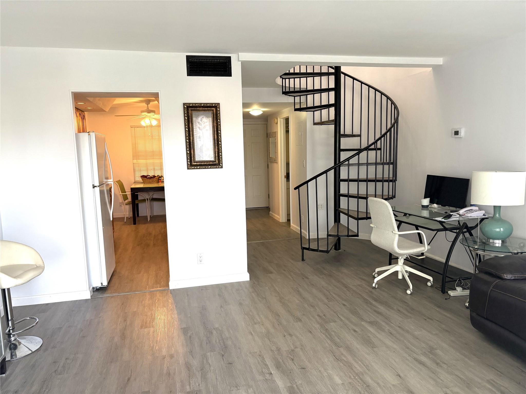 Located in the famous Tennis Club of Fort Lauderdale along the Middle River, this updated townhouse-style Apt., has a fabulous balcony view of the tennis cts. & clubhouse. Vinyll plank flooring throughout, makes for a very clean-looking Apt. Open Kitchen with seperate dining area. Lge bright living room has a spiral staircase leading up to 2 roomy split bedrooms, with an updated bathroom in between. The Apt. is literally a step away from 20 clay tennis courts (10 Lighted), 3 hard cts., heated pool & spa, fully equipped gym, plus a full service patio bar & grille- all reachable via an adjacent private walkway. Gated 24/7 makes you feel so safe here. Close to Wilton Manors, downtown Ft Lauderdale, & beautiful beaches. It is Ft Lauderdale's best kept secret. You'll love it here!