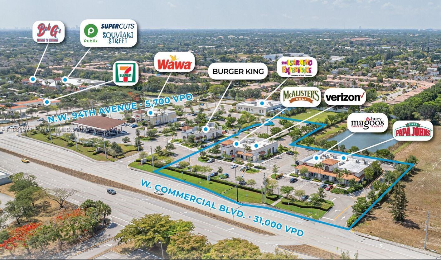 1,500 SF available for lease Prime location next to Burger King, Wawa, The Learning Experience, and directly across from a Publix-anchored shopping center Exceptional visibility and access along W Commercial Boulevard Strong parking ratio of 7 spaces per 1,000 SF Just one mile from the Sawgrass Expressway Situated in a high-density area of Sunrise, with over 147,000 residents within a 3-mile radius High traffic exposure with over 41,500 vehicles per day on W Commercial Boulevard Total GLA (Gross Leasable Area): 11,700 SF