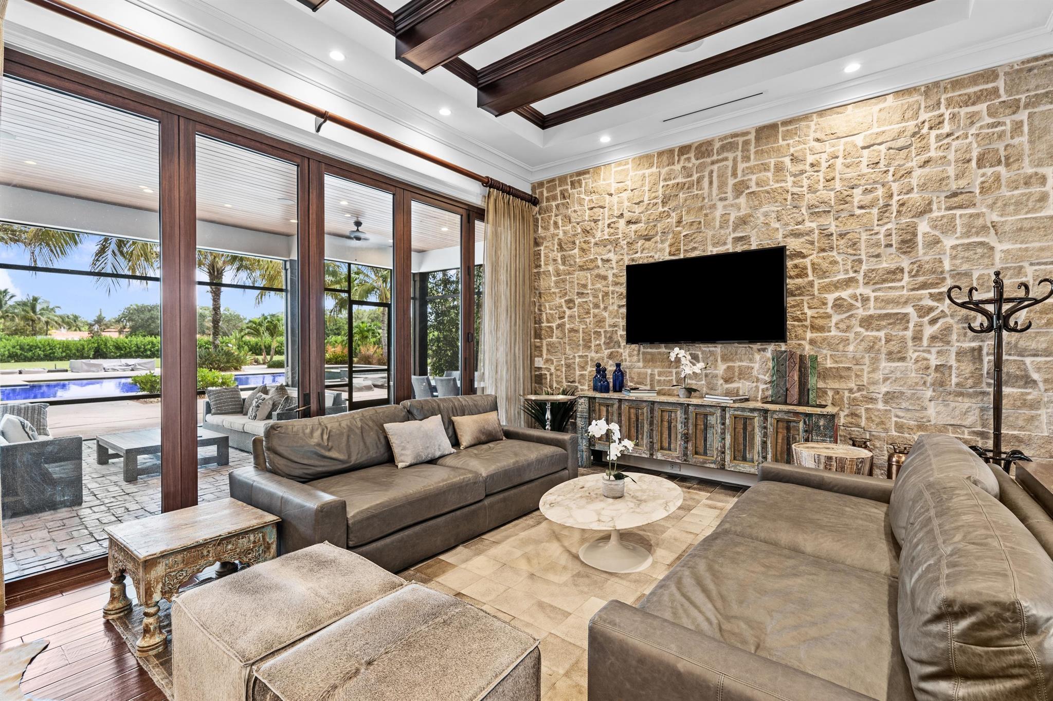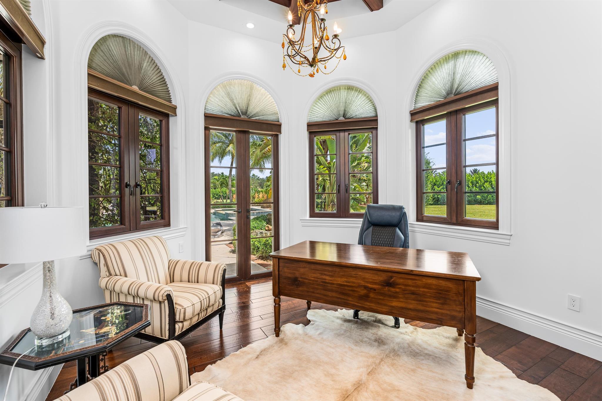 Experience the equestrian season in unparalleled luxury in this stunning 3,700 sq ft Main home and Guest House included, located just steps from Wellington International! Built in 2015, this home boasts 5 spacious bedrooms and 5.5 bathrooms. An open living room and kitchen equipped with premium Sub-Zero and GE Monogram appliances.The expansive primary suite offers a dedicated office space, dual walk-in closets, and a spa-inspired bathroom.Guest house: separate 1-bedroom, 1-bathroom pool house awaits, complete with a full kitchen, gym, and sauna. Unwind by the impressive 25' x 50' heated pool or relax in the large screened-in patio, which includes a summer kitchen perfect for entertaining. Enjoy convenience with just a quick, under-five-minute golf cart ride to the show grounds.