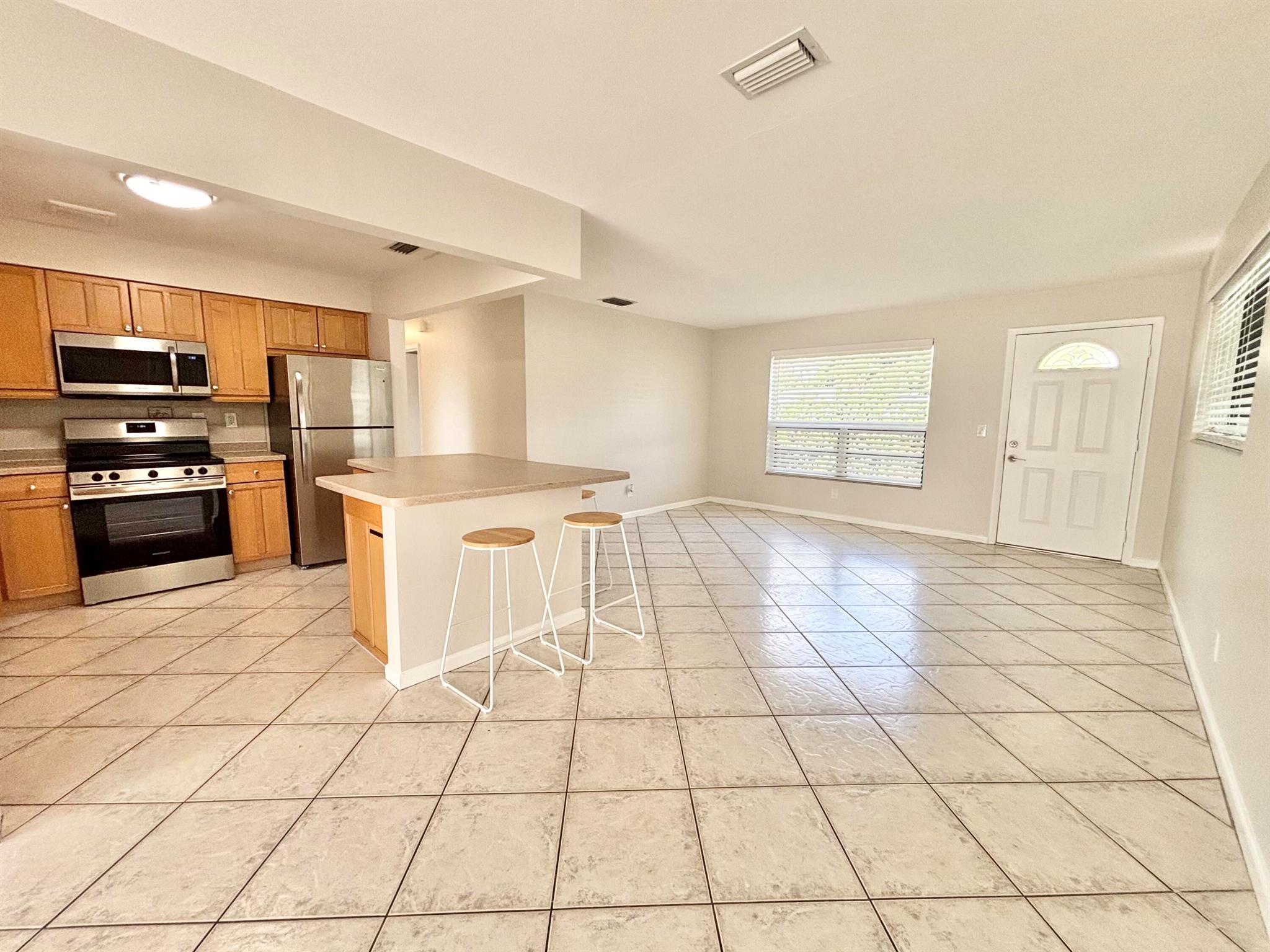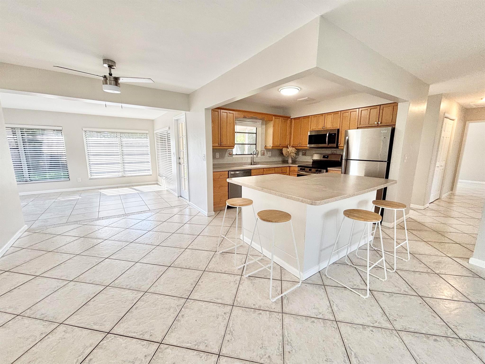 Immediate move-in! Beautiful single-family home in East Boca! This property has been extensively updated and is ready for immediate occupancy. It boasts 3 bedrooms, 2 baths, a laundry room, sunroom, open patio in the front, covered & screened patio in the back! Interior features an open kitchen concept with SS appliances. Tastefully done bathrooms. Entire property has been freshly landscaped with lush grass. Excellent location close to beaches, Mizner Park, schools, shops, restaurants, major roads and more! Listing subject errors, omissions, & change without notice. Room Measurements approx.