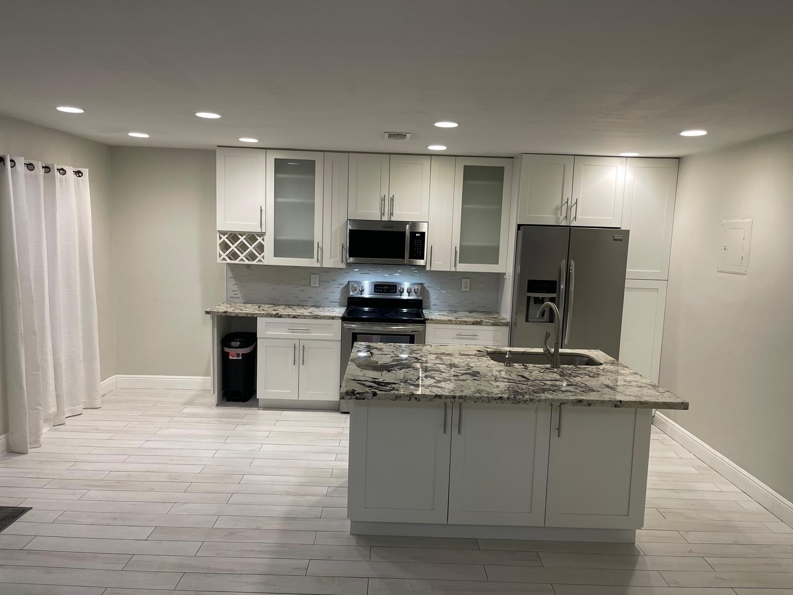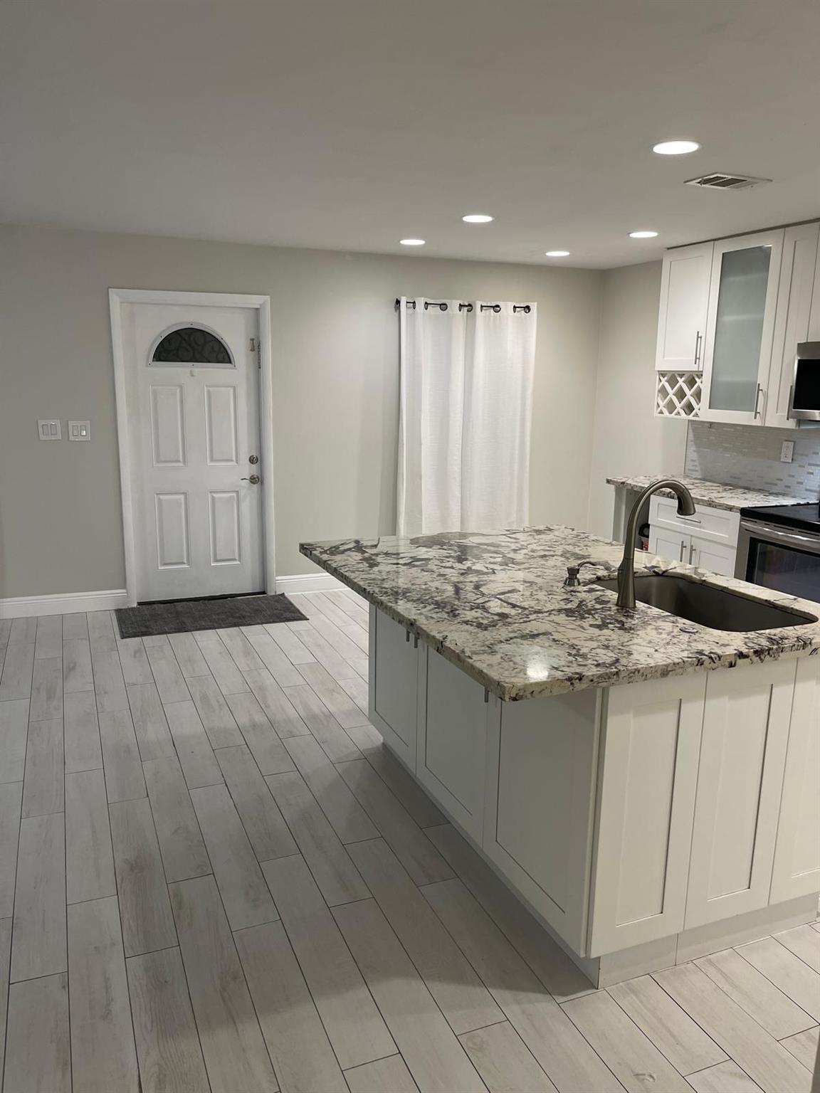 discover this beautifully remodeled 3-bedroom, 2-bathroom home, perfect for modern living. The property features a spacious open floor plan with updated finishes throughout, including a sleek kitchen with S/S appliances and stylish countertops. Each bedroom offers ample space and comfort, while the bathrooms boast contemporary fixtures. hurricane impact windows and 2 sheds for storage. Enjoy the convenience of privacy of a fully fenced backyard overlooking the water, ideal for outdoor activities or relaxing in your own oasis. Located in a great location, this home is close to schools, shopping, and parks. Don't miss the chance to make this your new home.