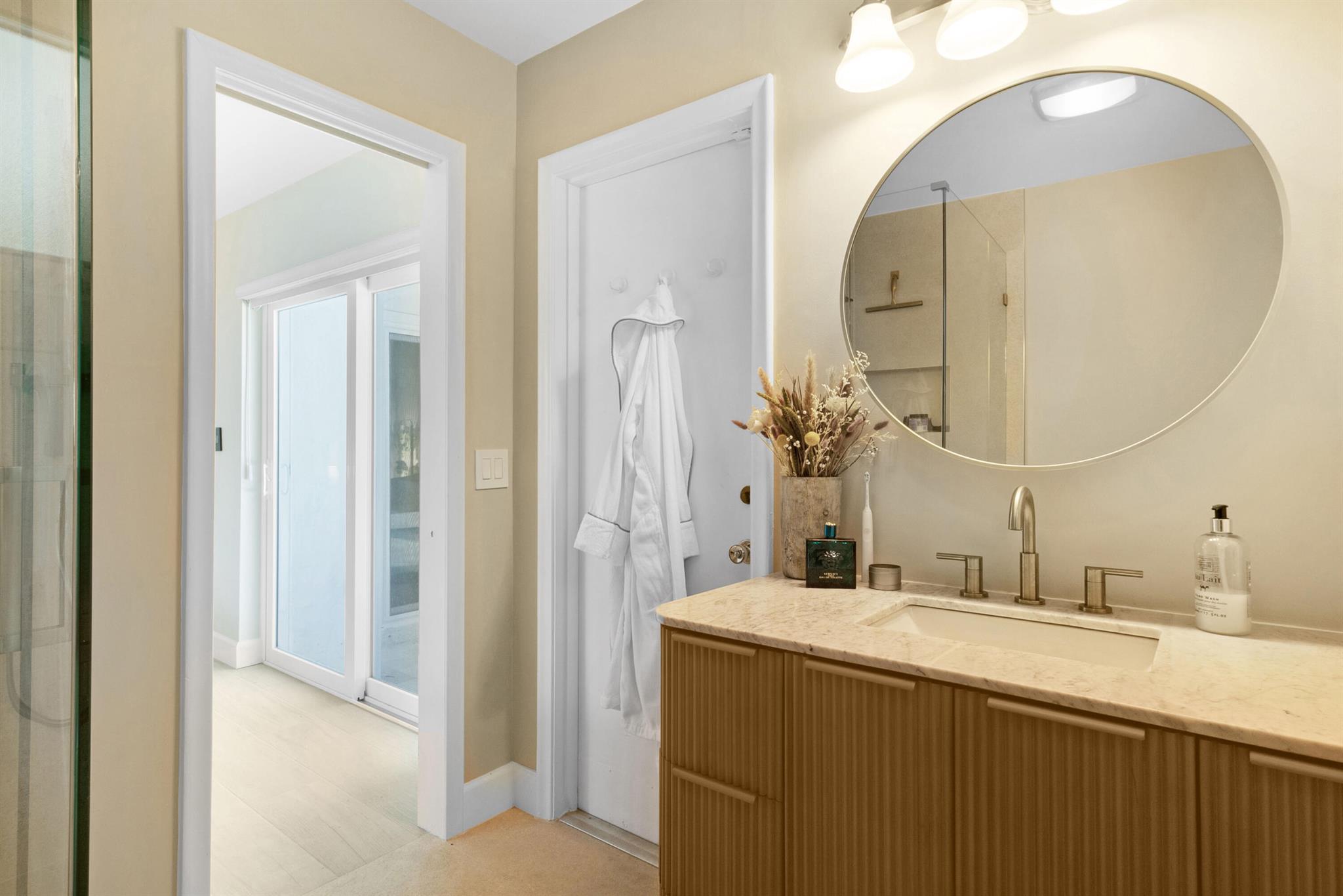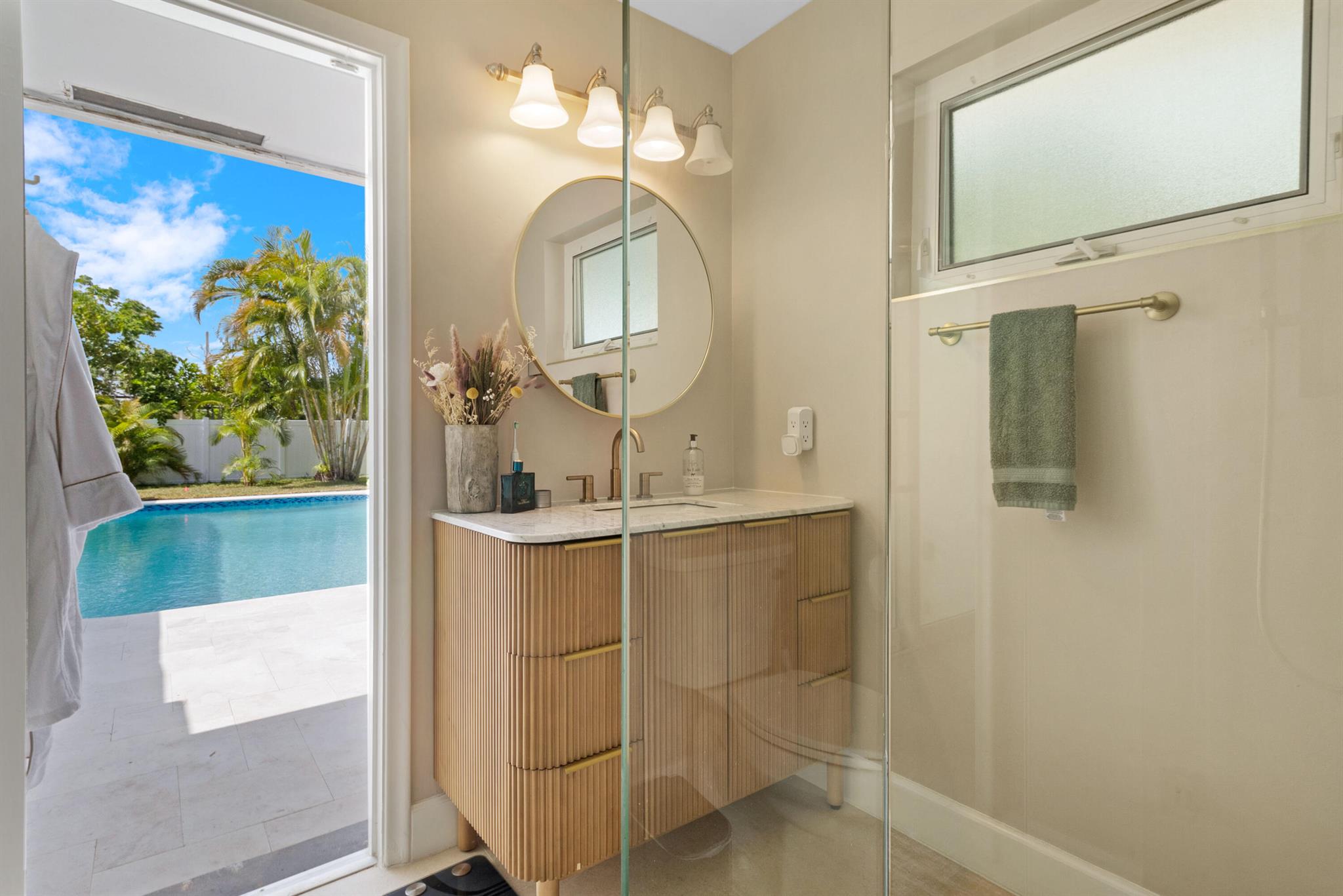 Welcome to this beautifully renovated 3/2, pool home in the highly sought-after Imperial Point neighborhood. Nestled on a lushly landscaped corner lot, this property boasts incredible curb appeal with a decorative circular driveway, courtyard entry, & full 2 car garage with epoxy flooring and air conditioning. Featuring Evie Haya premium porcelain tile flooring throughout and freshly painted interiors, this home blends modern comfort with designer finishes. The stunning primary bathroom showcases luxury porcelain tile, a frameless glass shower, a modern vanity, Delta TempAssure shower system, and bronze fixtures from Ferguson. Upgrades include complete impact glass and doors, a new RHEEM 80-gallon electric water heater, trenchless pipelined sewer system, smart thermostat,