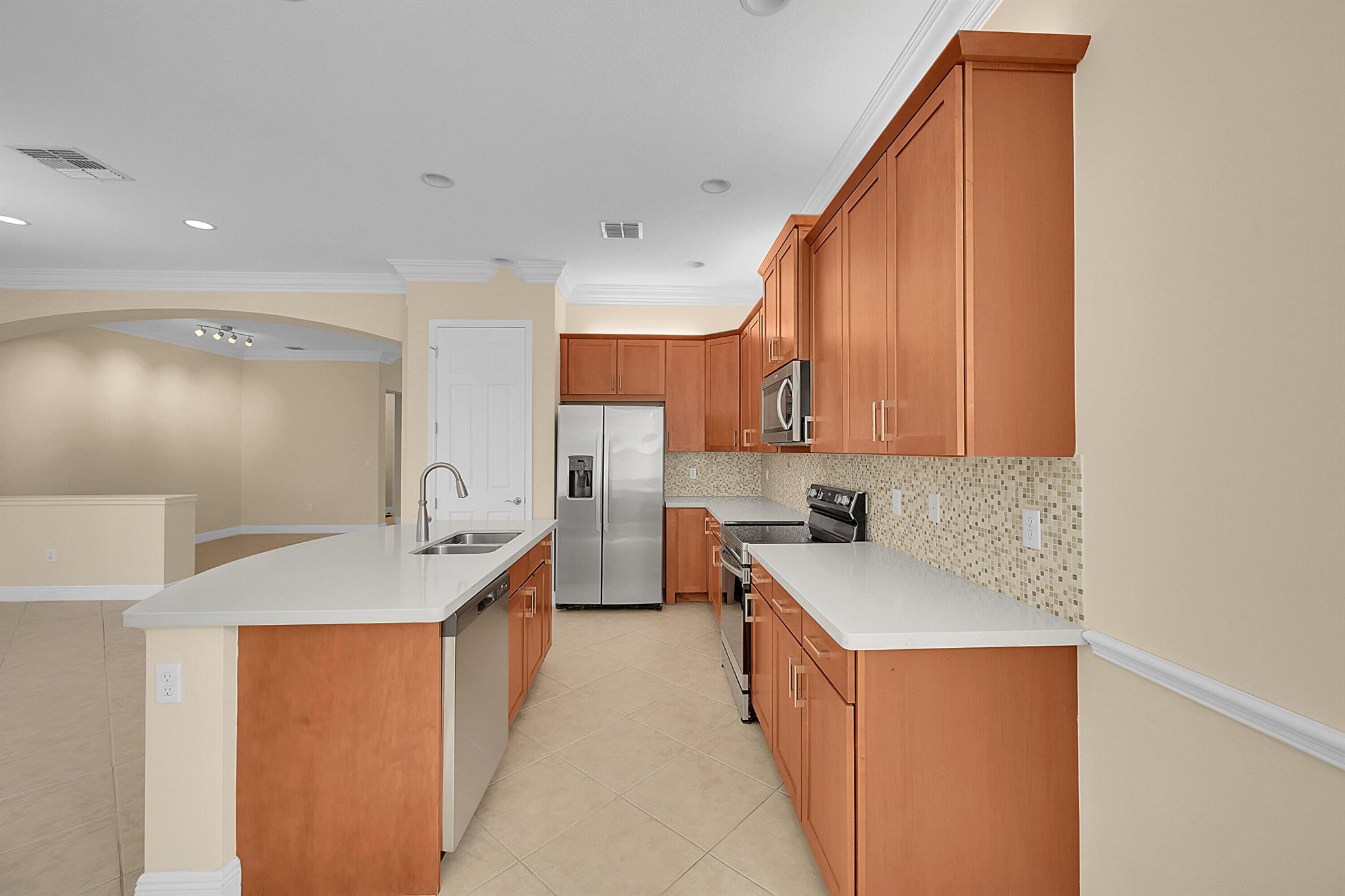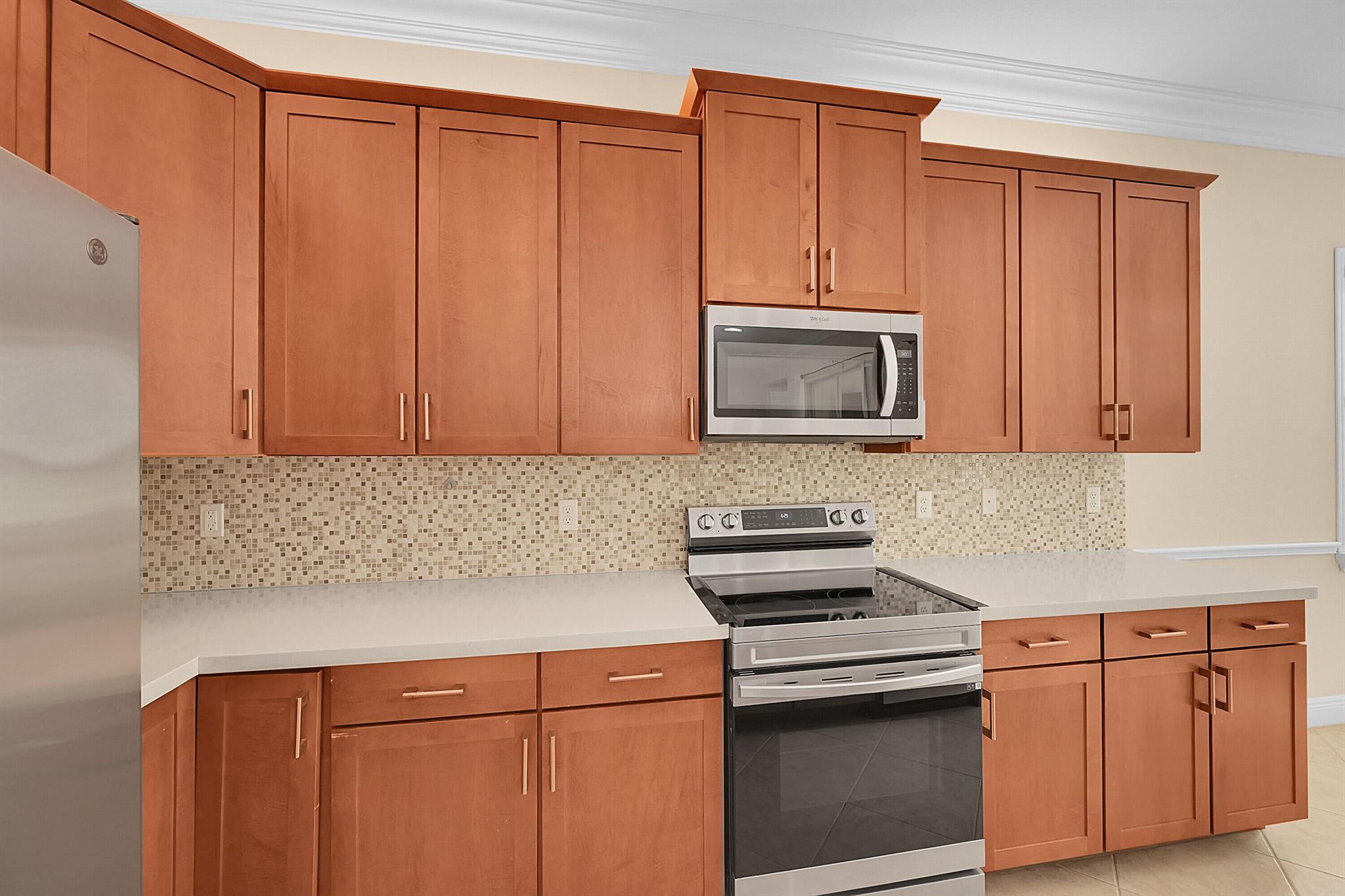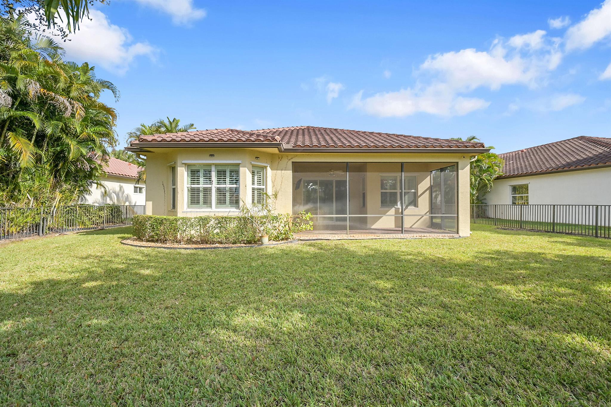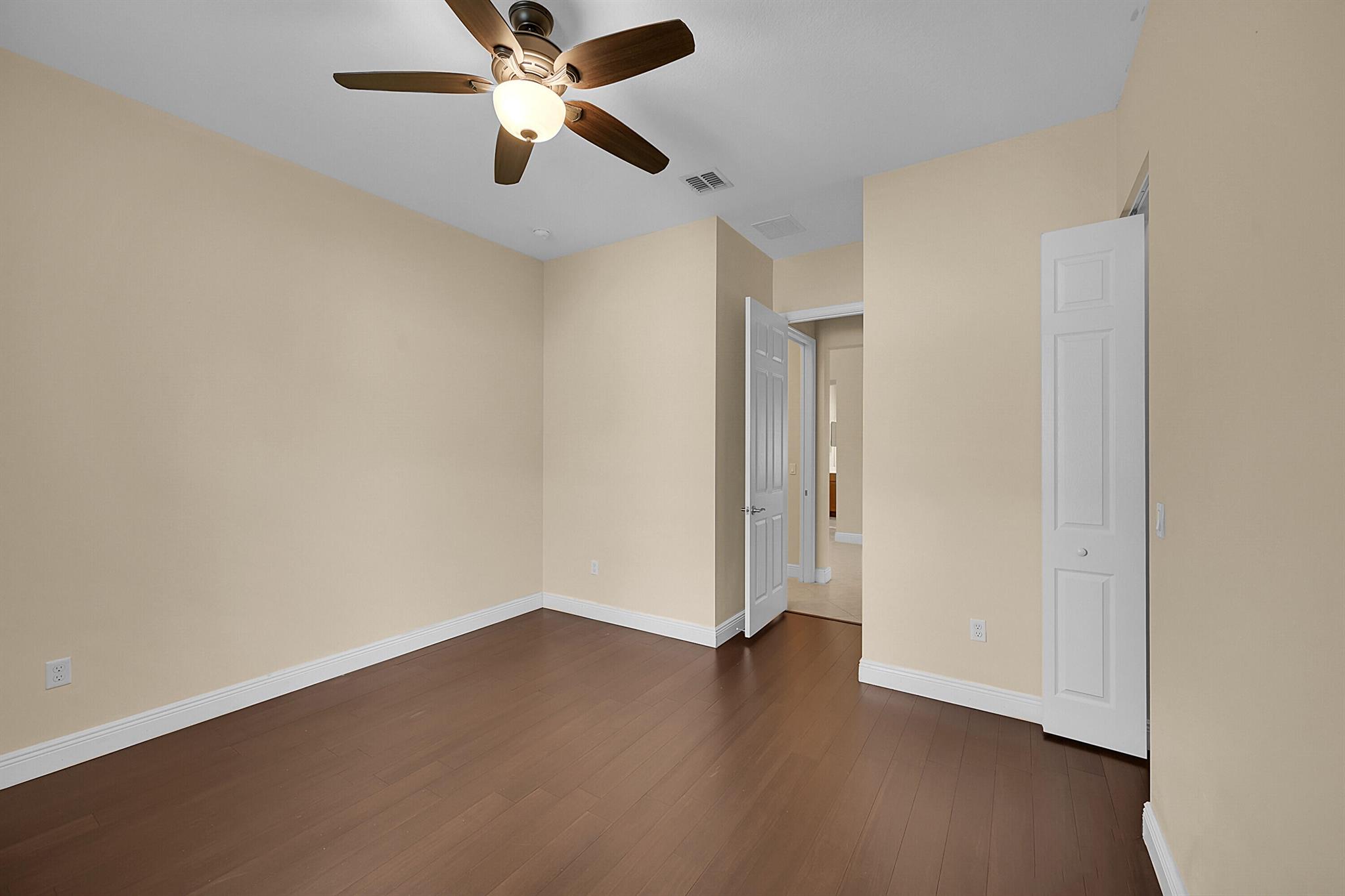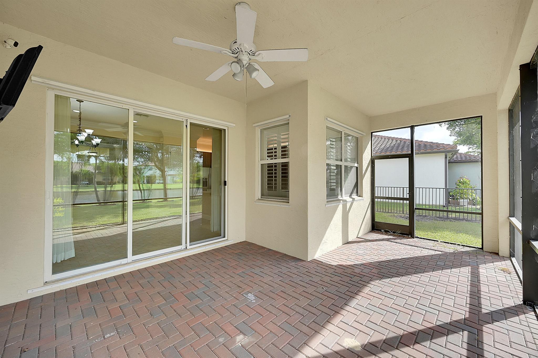 PROPERTY IS UNFURNISHED. Beautifully landscaped lake lot. Open spacious floor plan. Many upgrades including: custom closets in three bedrooms, plantations shutters in kitchen, master bedroom and bath, crown molding, accent lighting in living room, full back splash in kitchen counter area, screened lanai, fenced yard, master bedroom ceiling fan, driveway and lanai has pavers