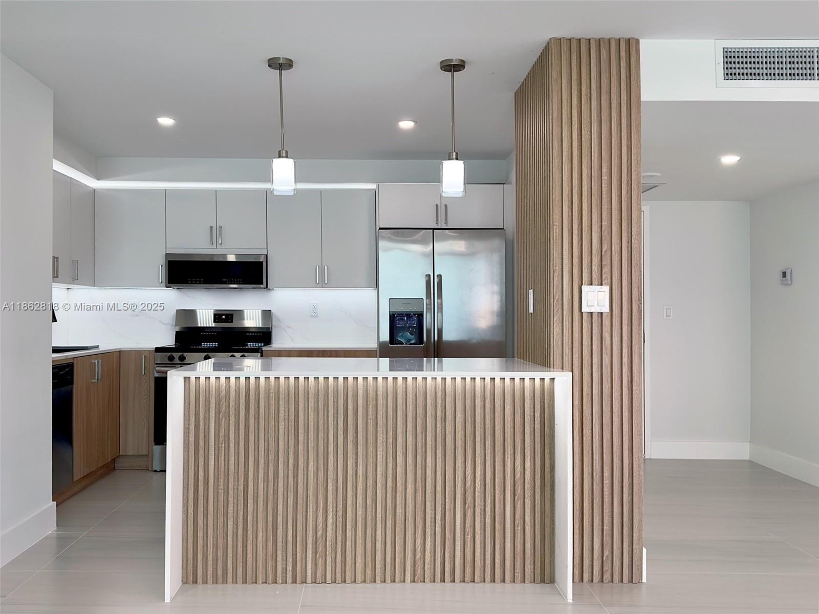 1210 Biscayne Cove unit, completely renovated and brand new! This unit has never been used since its remodel. It features two spacious bedrooms and two bathrooms, along with new porcelain floors and LED lighting throughout. The ultramodern kitchen and bathrooms are a highlight. The building is full of amenities and overlooks one of the Intracoastal lakes. Please note that the complex's exterior is currently being remodeled, with an expected completion soon. There may be some construction noise from Monday to Friday, between 9 a.m. and 4 p.m.