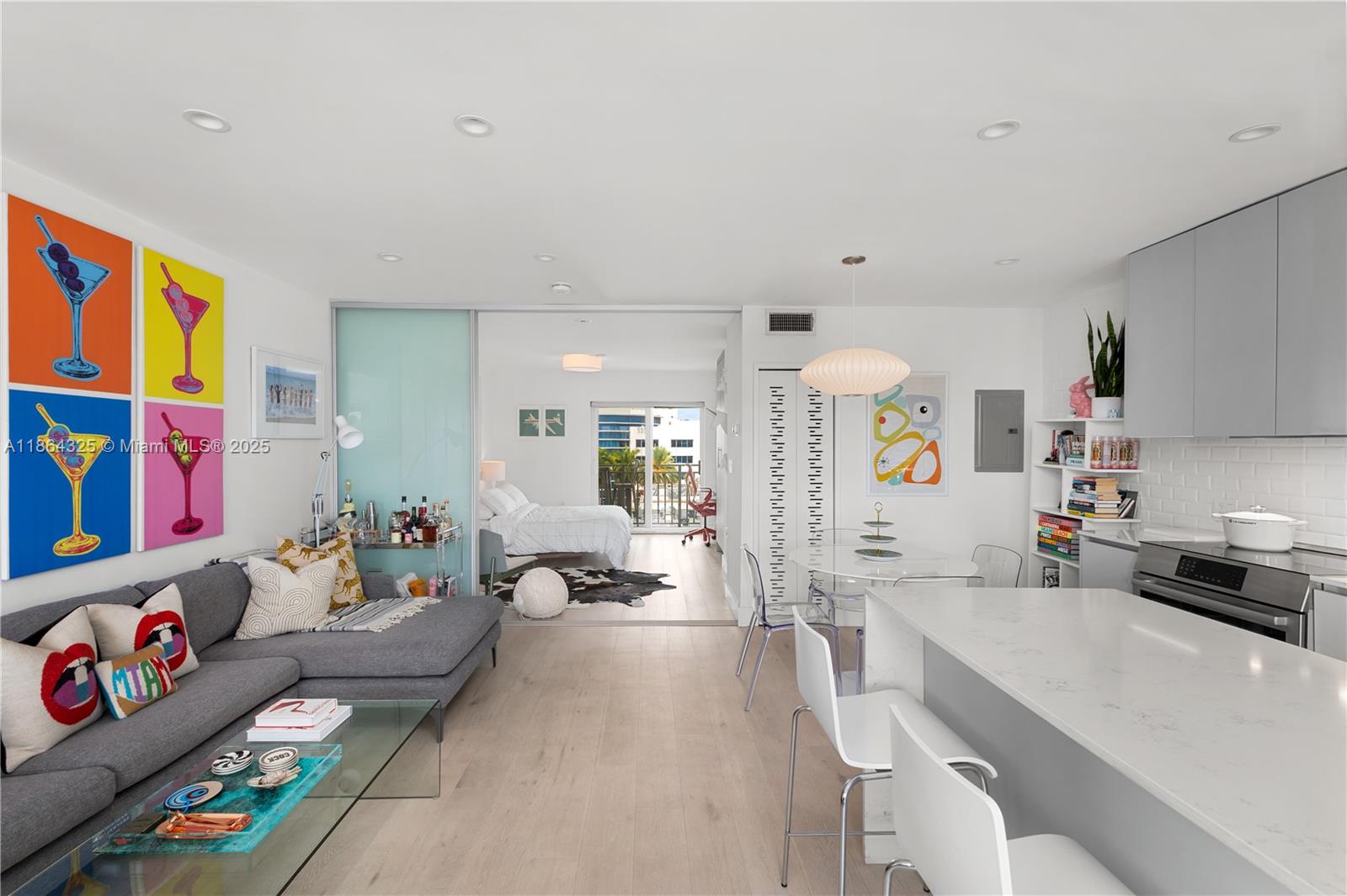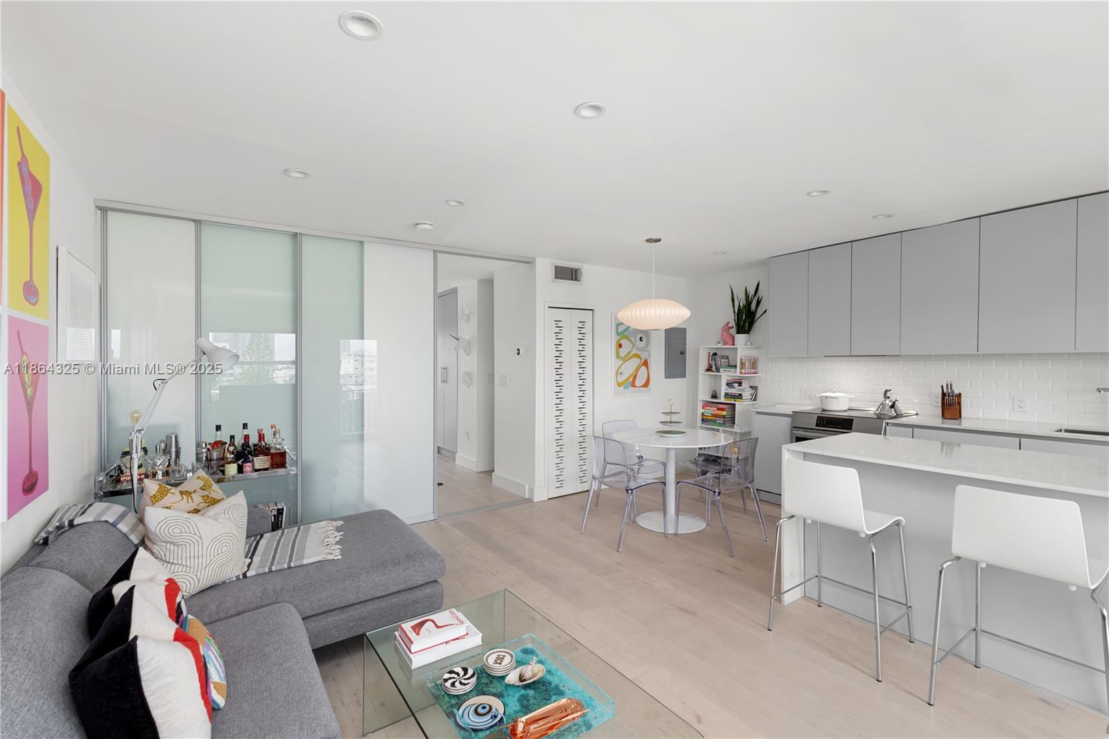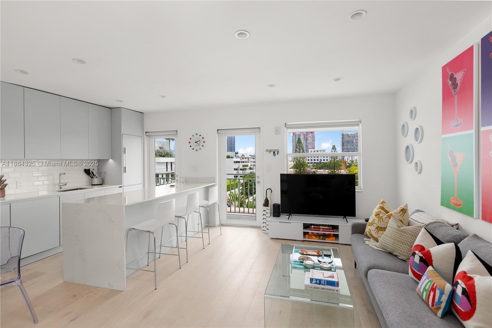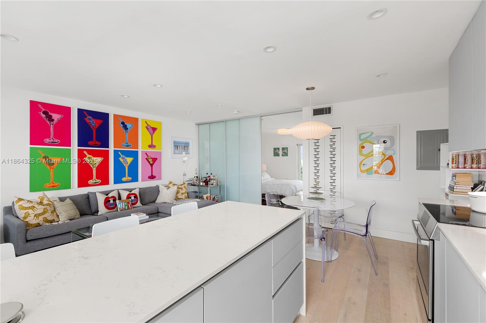 Available for high season 6 month rental with all utilities included! This incredbily redesigned residence is perched on the top floor of this sleek no-nonsense elevator building just a block from the ocean in the center of the coveted SOFI neighborhood of Miami Beach. Turnkey seasonal rental complete with all furniture and funishings (bring your own towels/bedding). One bedroom with south and north facing windows has been opened into one sunfilled space with a sliding door for those times when separation is needed. Complete with top of the line appliances, gleaming counters, in-residence washer and dryer and walk in shower with its own window! All this plus a spacious balcony with distant views of the ocean and the South Beach skyline! Flexible move in date but MUST BE AT LEAST 6 MONTHS