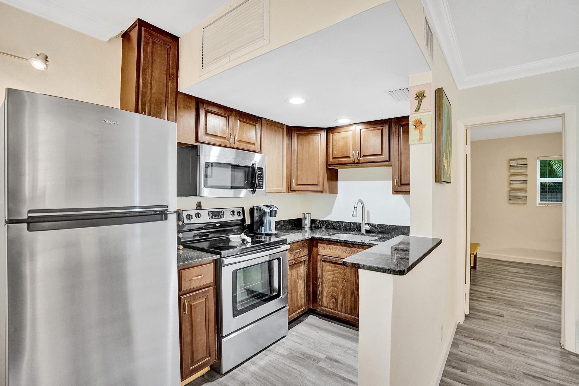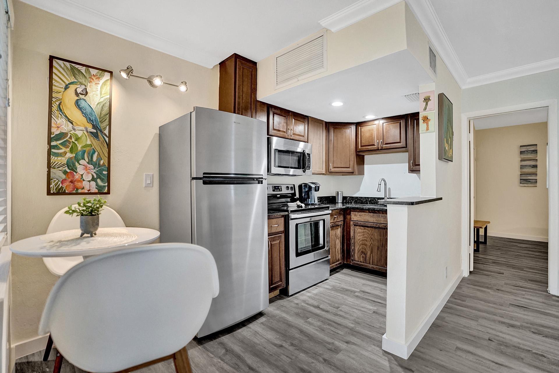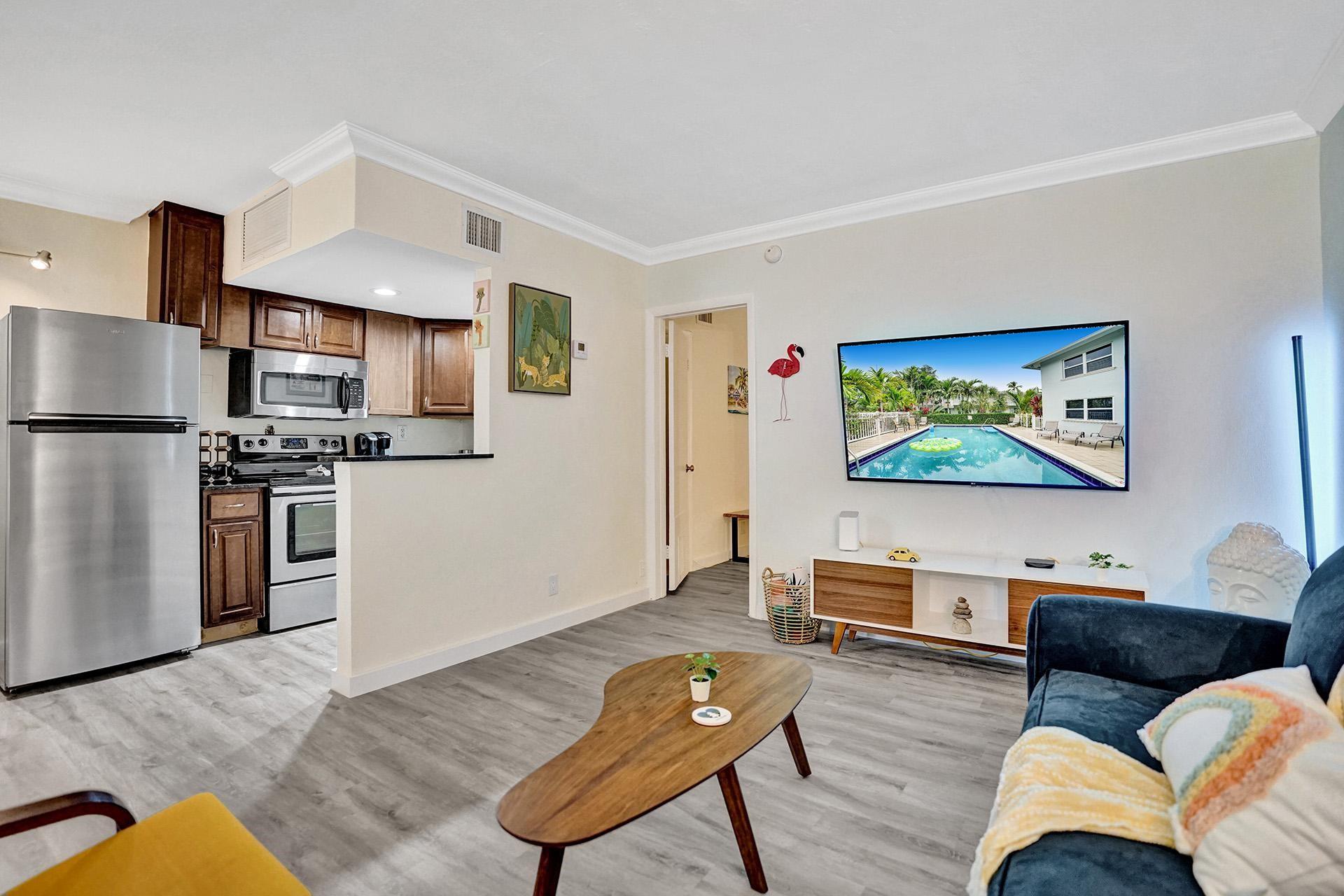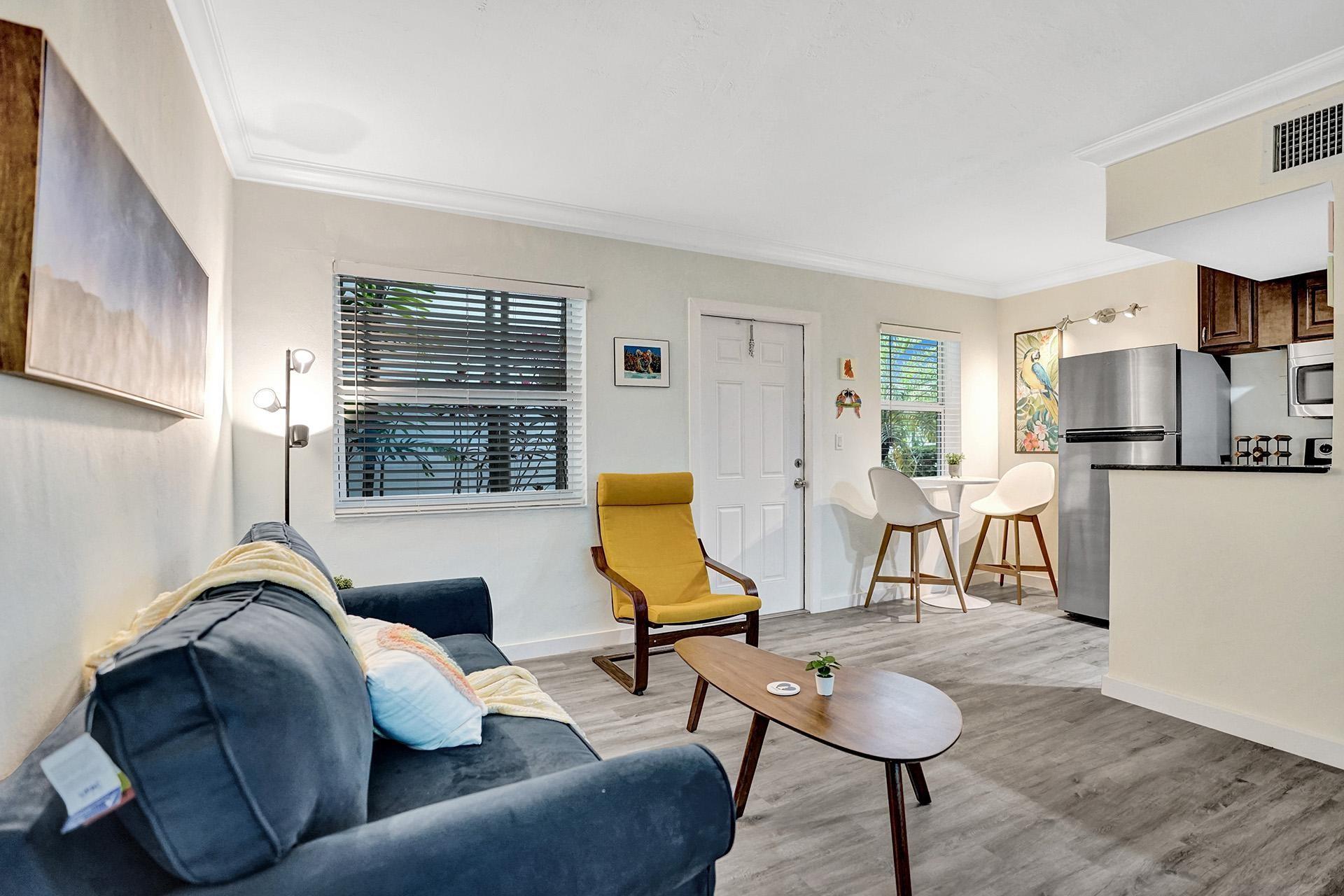 Fully-furnished apartment. Live in the heart of Victoria Park, just minutes from the beach, Las Olas, Downtown Fort Lauderdale, shops, and top restaurants. This updated ground-floor unit features a modern kitchen with granite countertops, wood cabinetry, and stainless steel appliances, as well as white ceramic tile floors, impact-resistant windows, and central air conditioning. Enjoy a freshly painted interior, an upgraded bathroom, and the convenience of parking right at your door. The well-maintained community offers tropical landscaping, a private pool, and on-site laundry facilities.