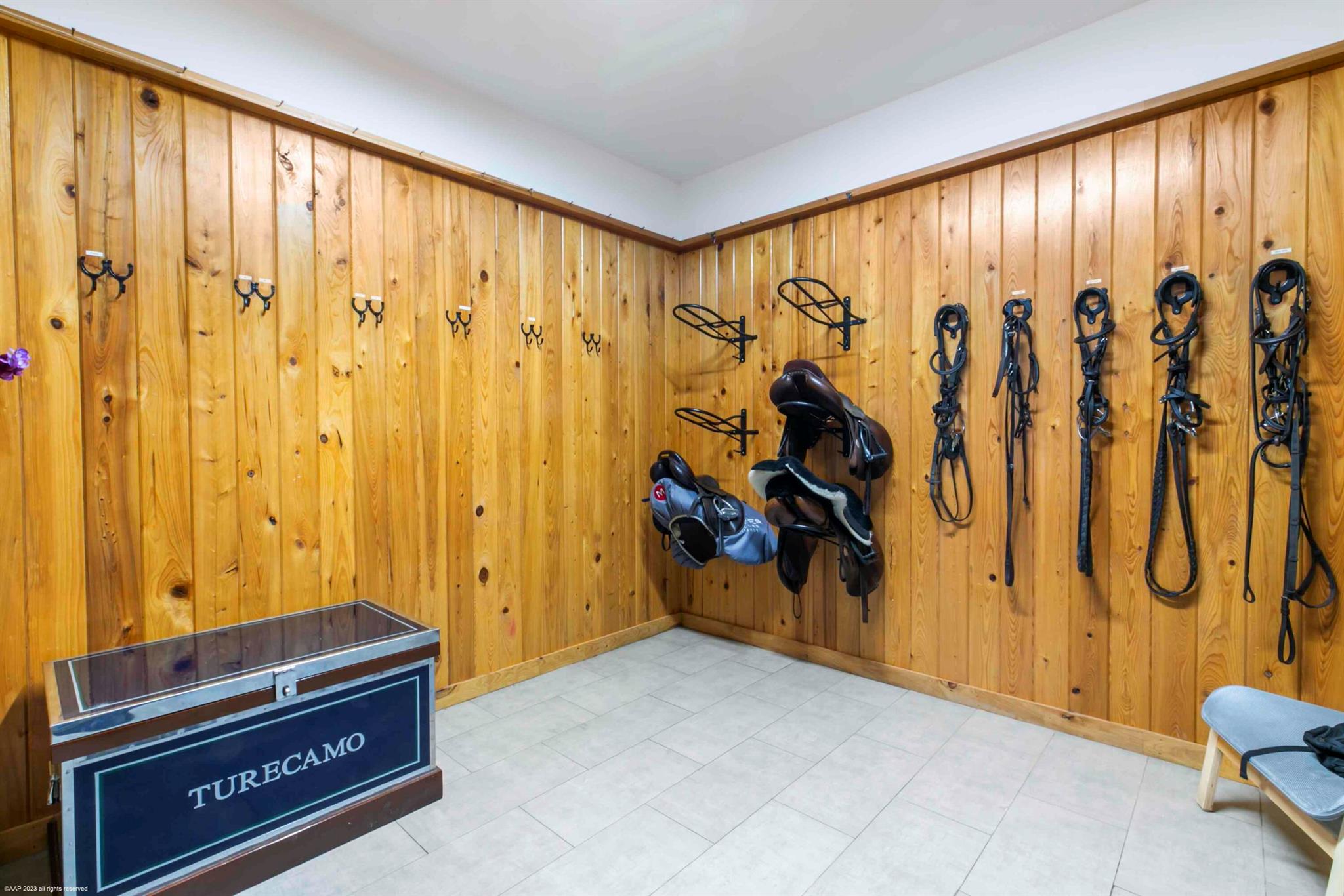 This premier gated equestrian estate in Saddle Trail is available for PRIVATE seasonal rental and offers an exceptional location just one mile from Wellington International, accessible via maintained bridle paths. PRICE REFLECTS THE SEASONAL RATE PER STALL AND INCLUDES UP TO A 4 MONTH TERM. Situated on over 4 acres, this turnkey property includes a thoughtfully designed 16-stall barn with full amenities, studio apartment, RV hookups, two all-weather arenas, a round pen, and eight grass paddocks. Four additional tent stalls can be added if required. *There is also a luxury 4 bedroom home on the property that can also be rented for a completely private retreat. Price for entire property is $100,000 per month with a four month minimum.