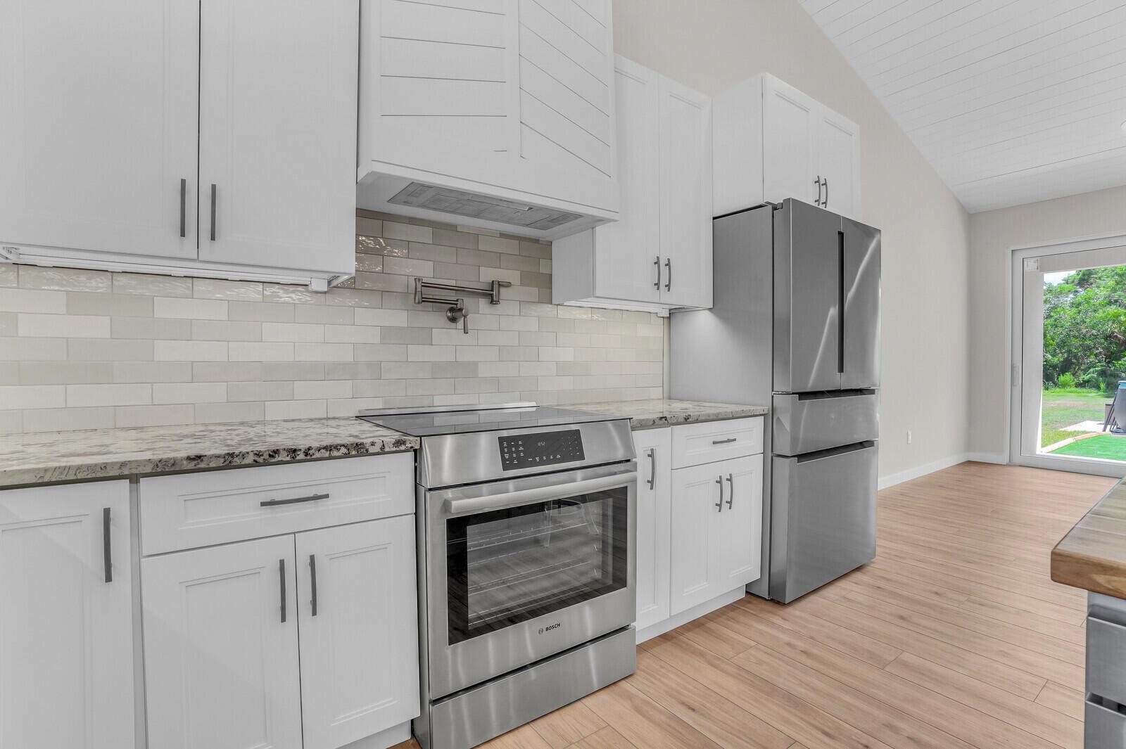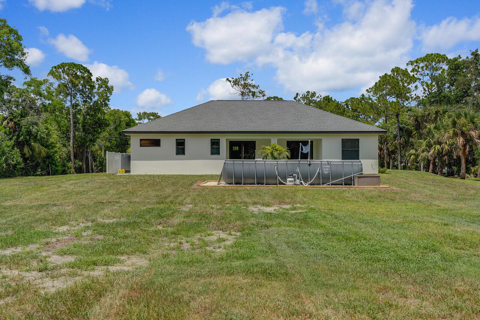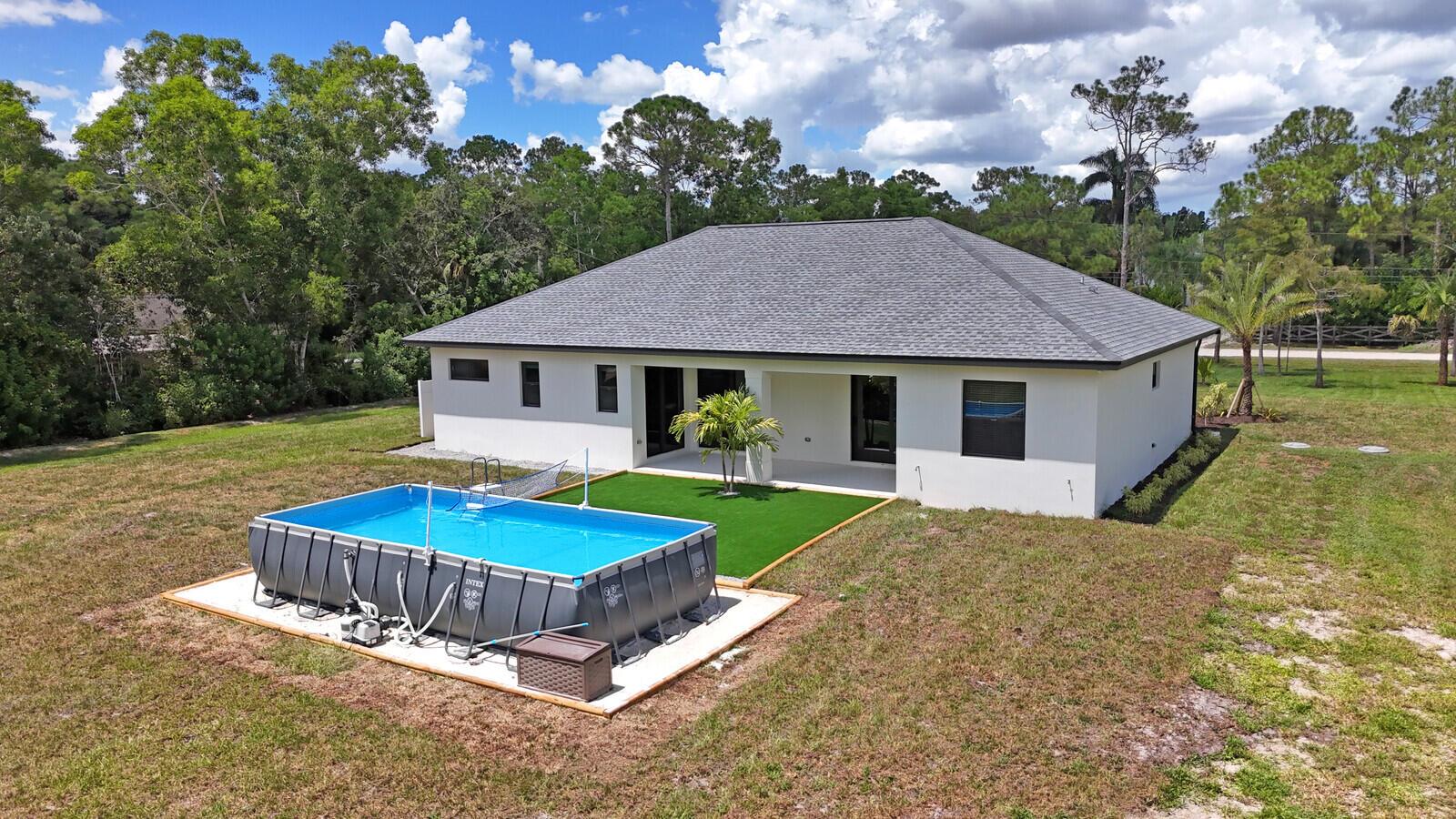 Step into modern living at its finest with this newly built ranch-style home, completed in 2025, located at 9420 165th Place North, Jupiter, FL. This single-family beauty offers 3 spacious bedrooms and 2 luxurious bathrooms, making it ideal for comfortable living.The open-concept design seamlessly integrates with top-of-the-line Bosch stainless steel appliances in the kitchen, including an induction range with a vented hood system. Enjoy the convenience of soft-close cabinets and a Lazy Susan corner, making kitchen storage a breeze. The RO drinking water system ensures fresh water at your fingertips.Slide open the tinted, hurricane impact glass doors and step into your outdoor oasis. Dive into the above-ground saltwater pool or entertain guests with ease.