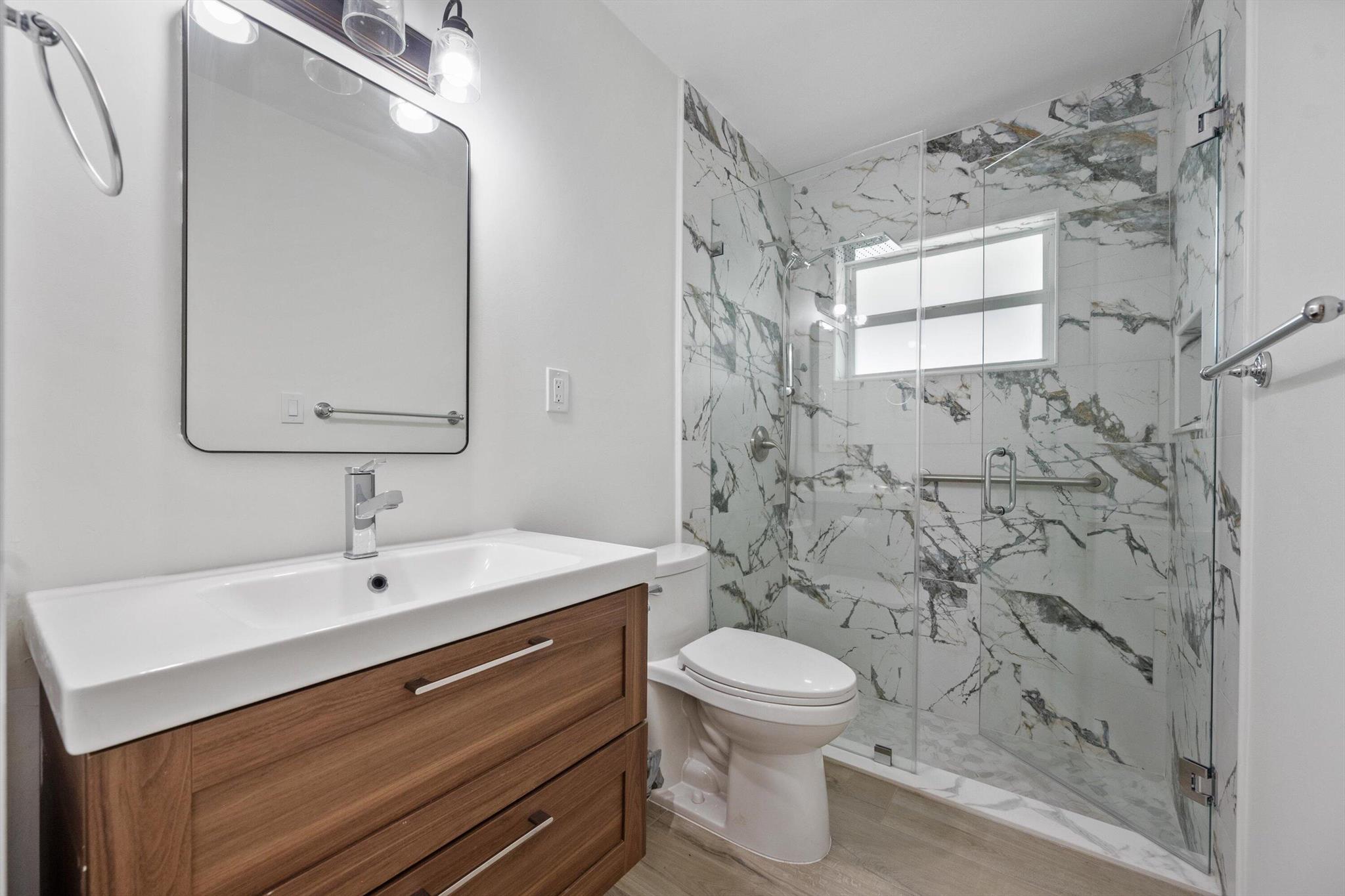 Beautifully remodeled 2/2 condo in Cresthaven 55+ community. Updates include impact windows, new AC & ductwork, modern kitchen with new appliances & countertops, built-in closets, and outdoor security camera. Assigned parking plus guest parking at your door. Community offers clubhouse, pool, game room & social clubs. Prime location--10 min to PBI Airport & highways, 15 min to downtown, 20 min to beaches. NO PETS